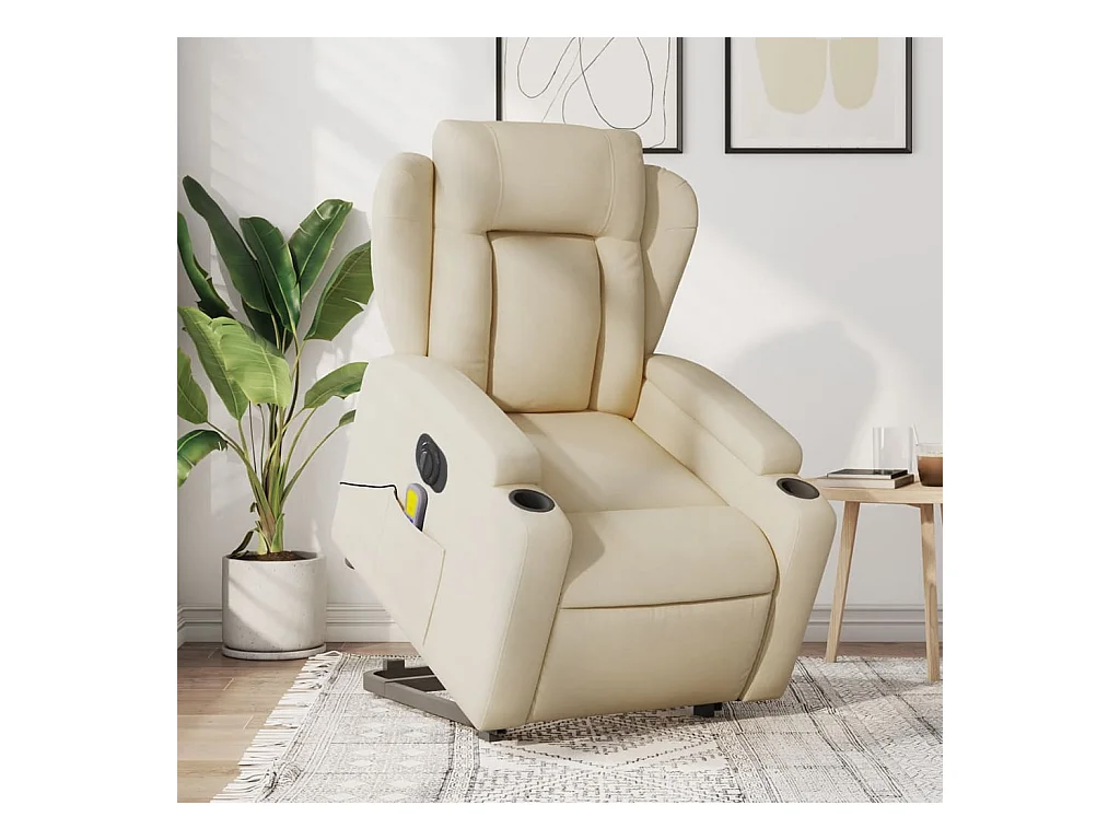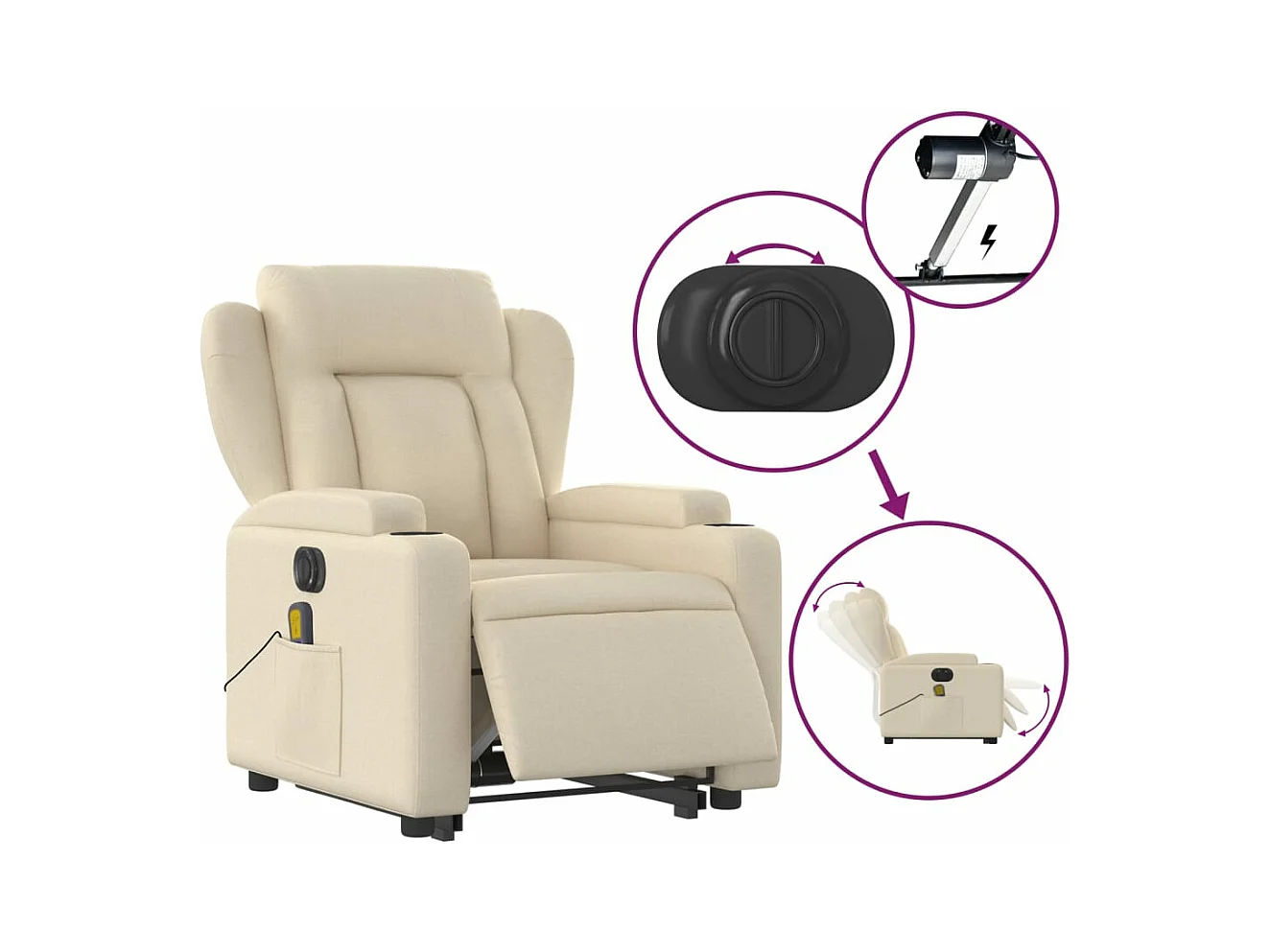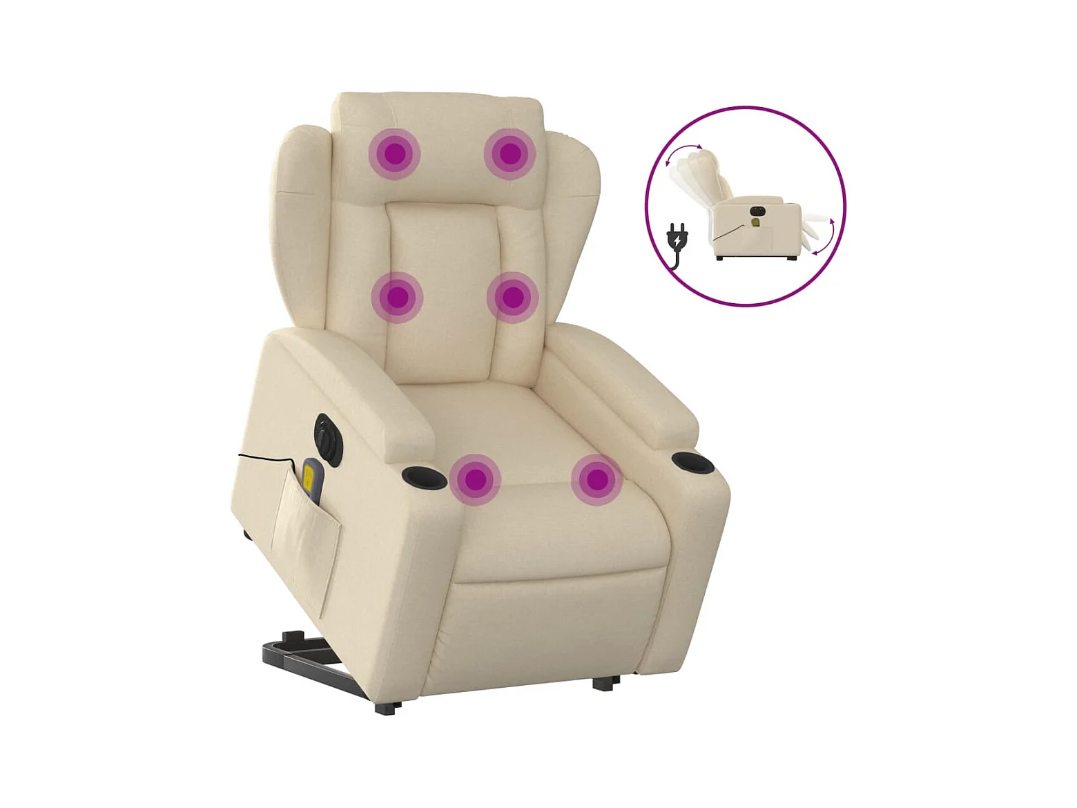 Poltrona Alzapersona Massaggiante Elettrica Crema in Tessuto