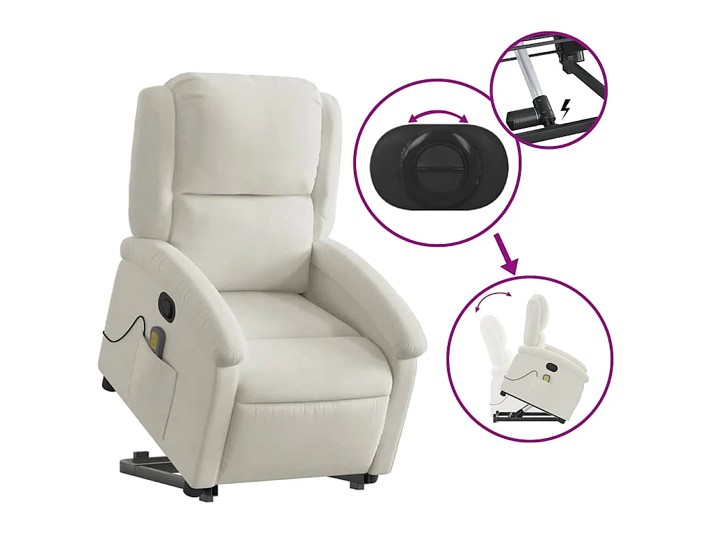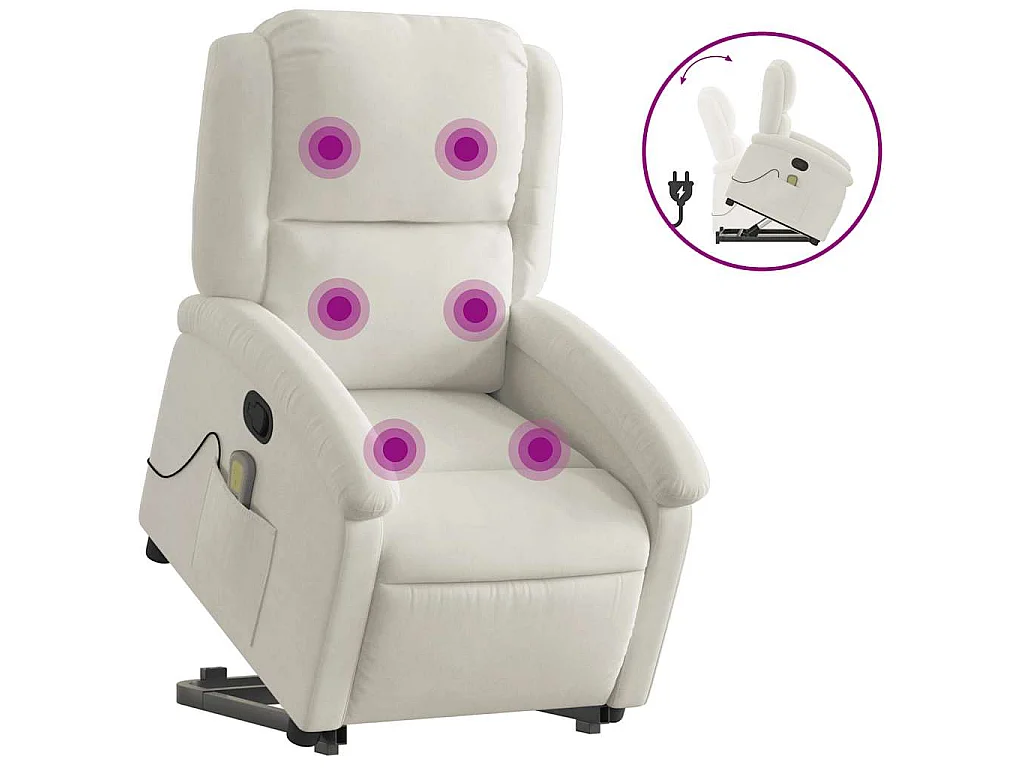 Poltrona Alzapersona Massaggiante Reclinabile Crema in Velluto