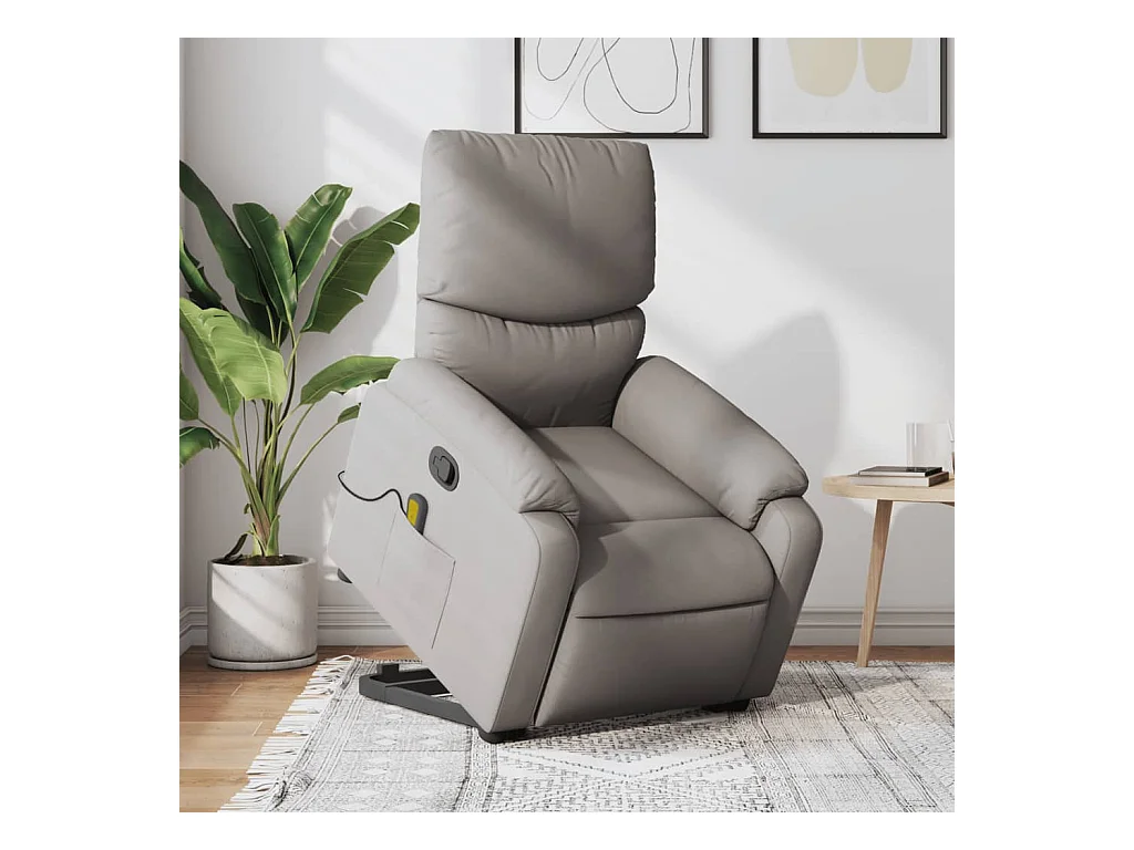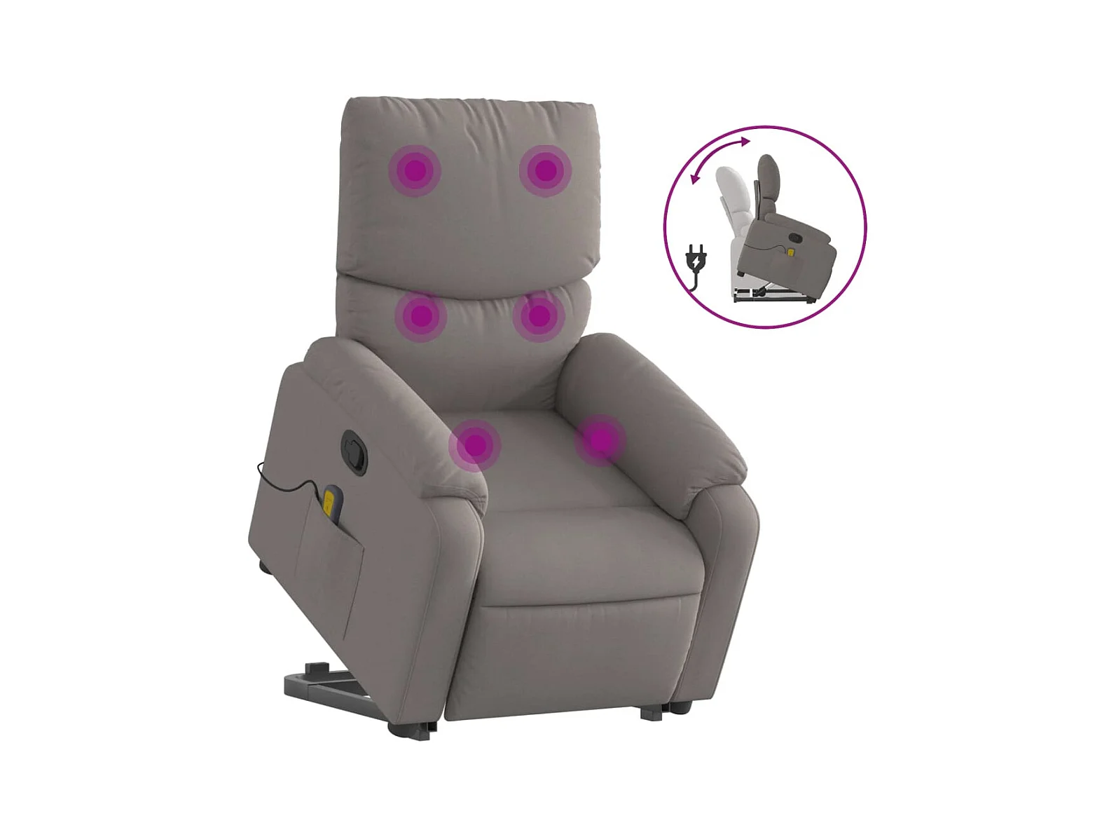 Poltrona Alzapersona Massaggiante Reclinabile Tortora Tessuto
