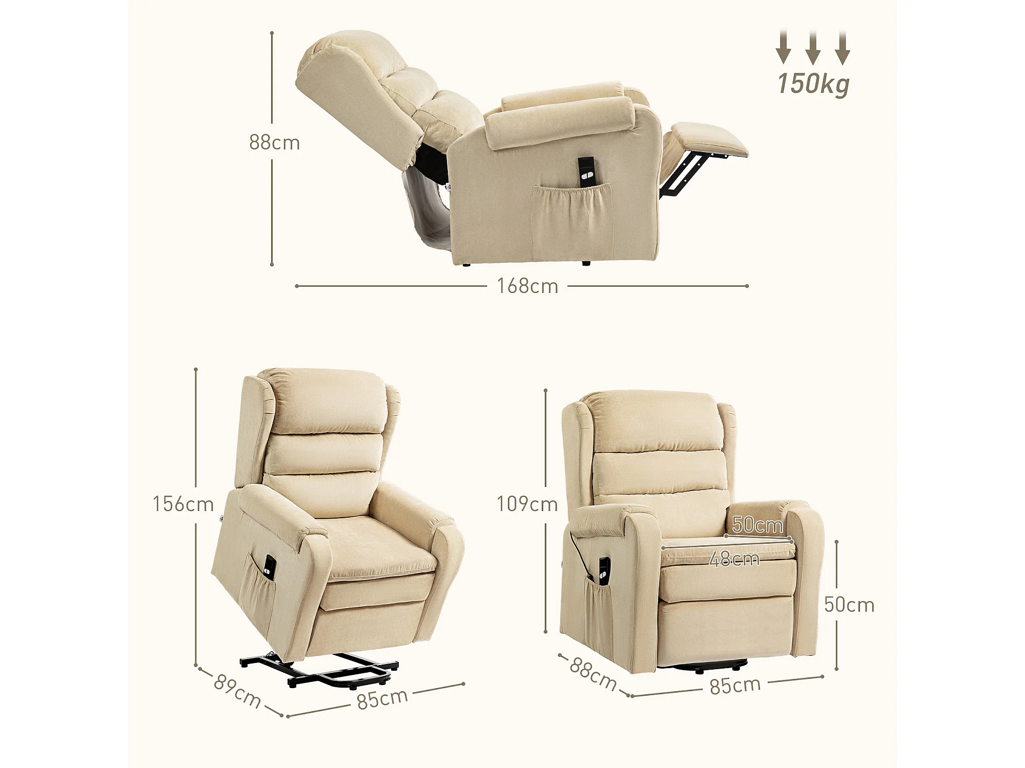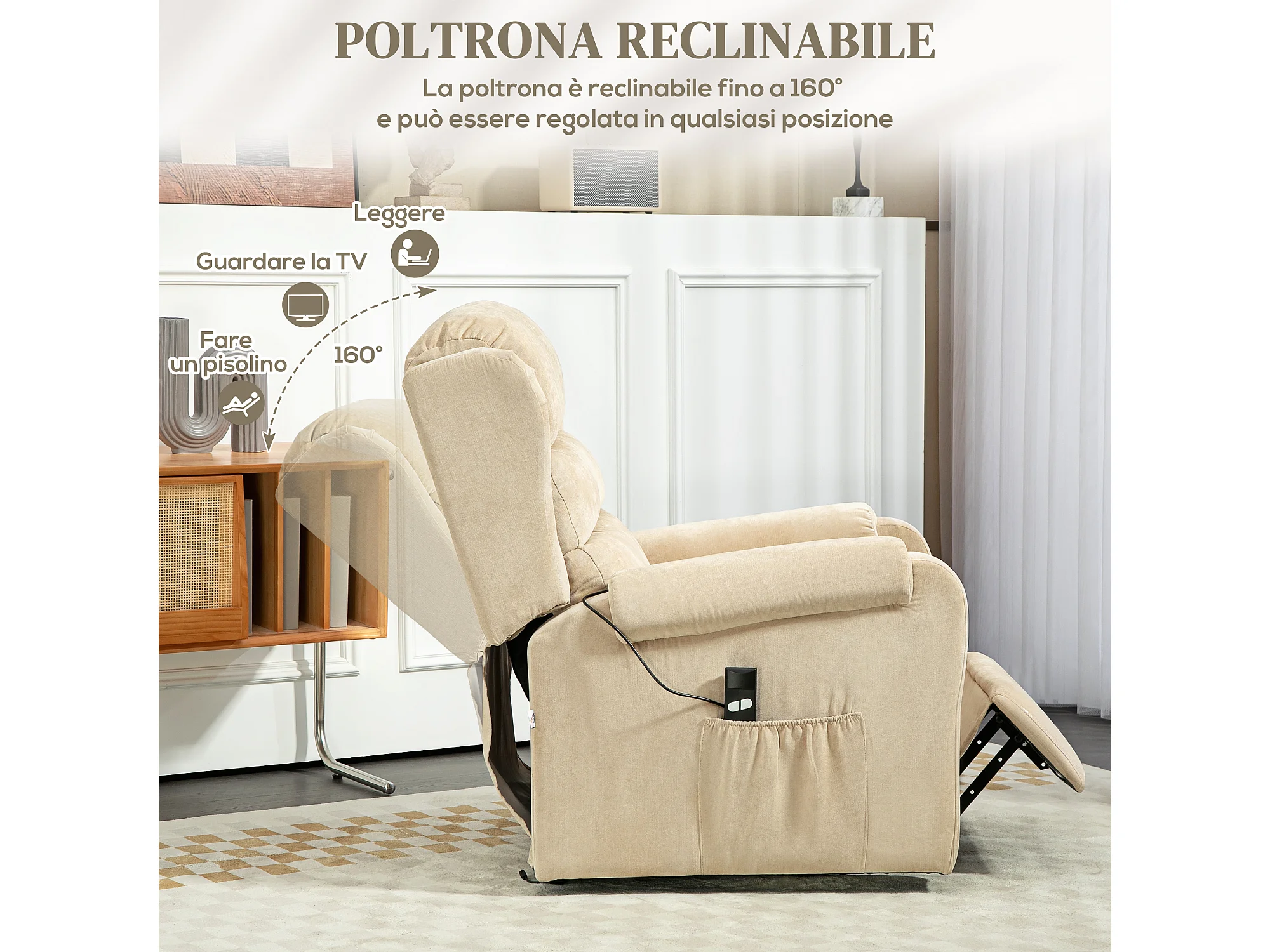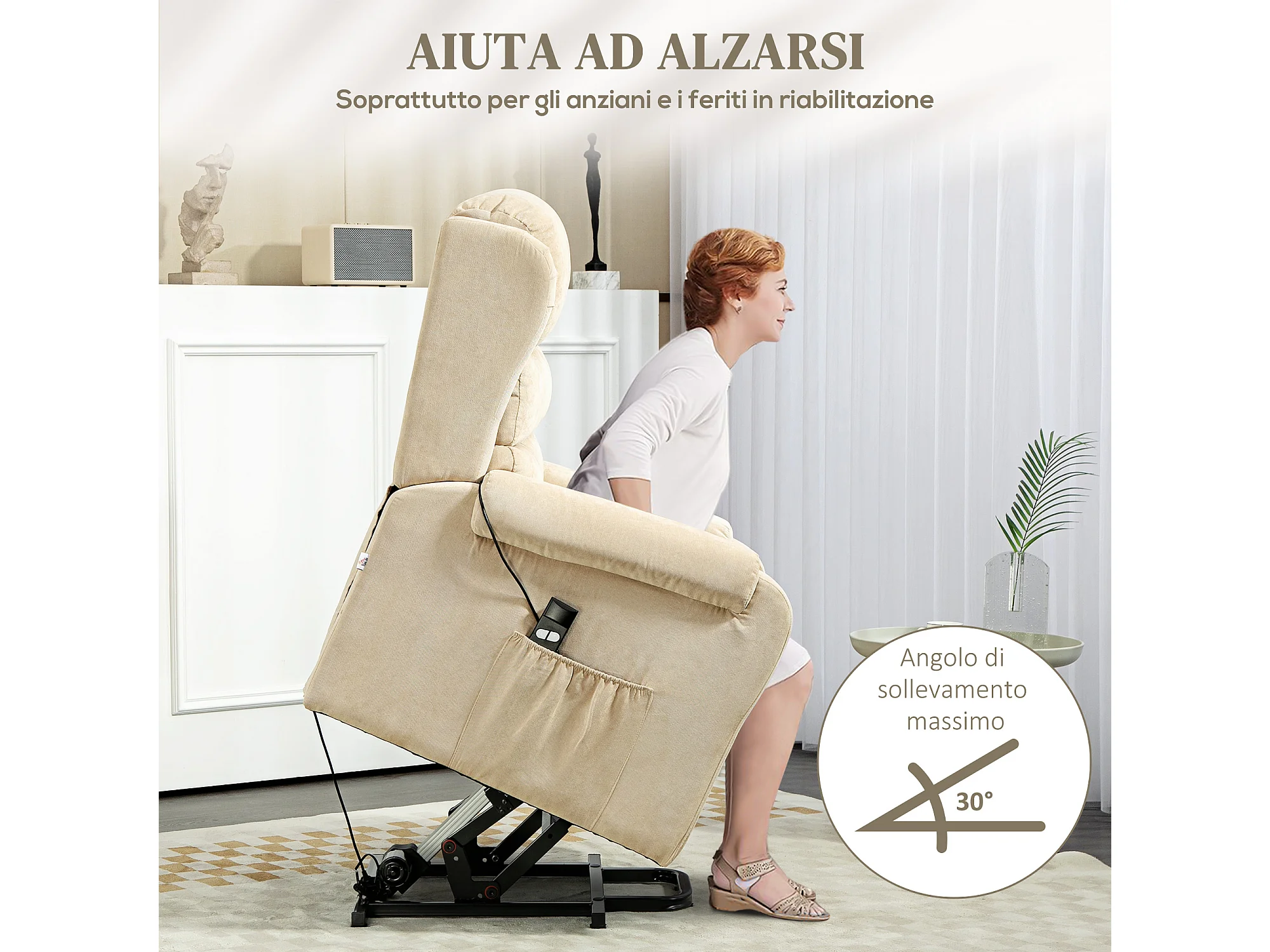 Poltrona alzapersona reclinabile a 160° con poggiapiedi bianco crema