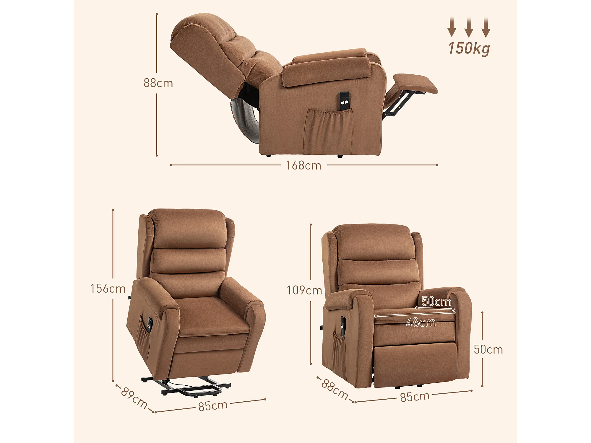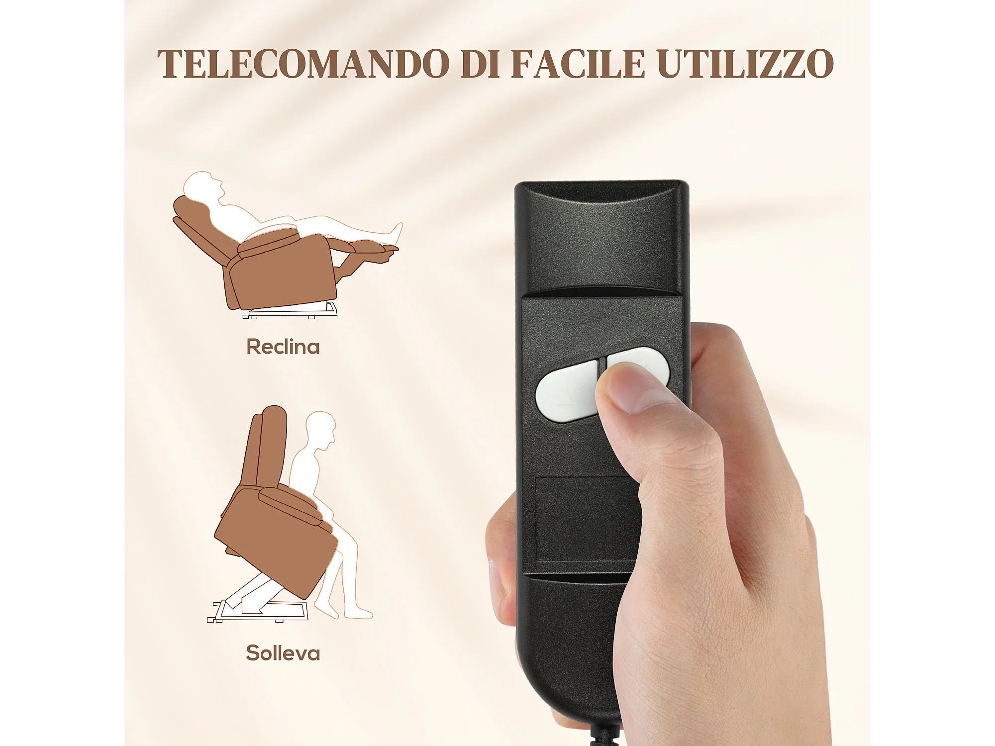 Poltrona alzapersona elettrica e reclinabile con telecomando marrone