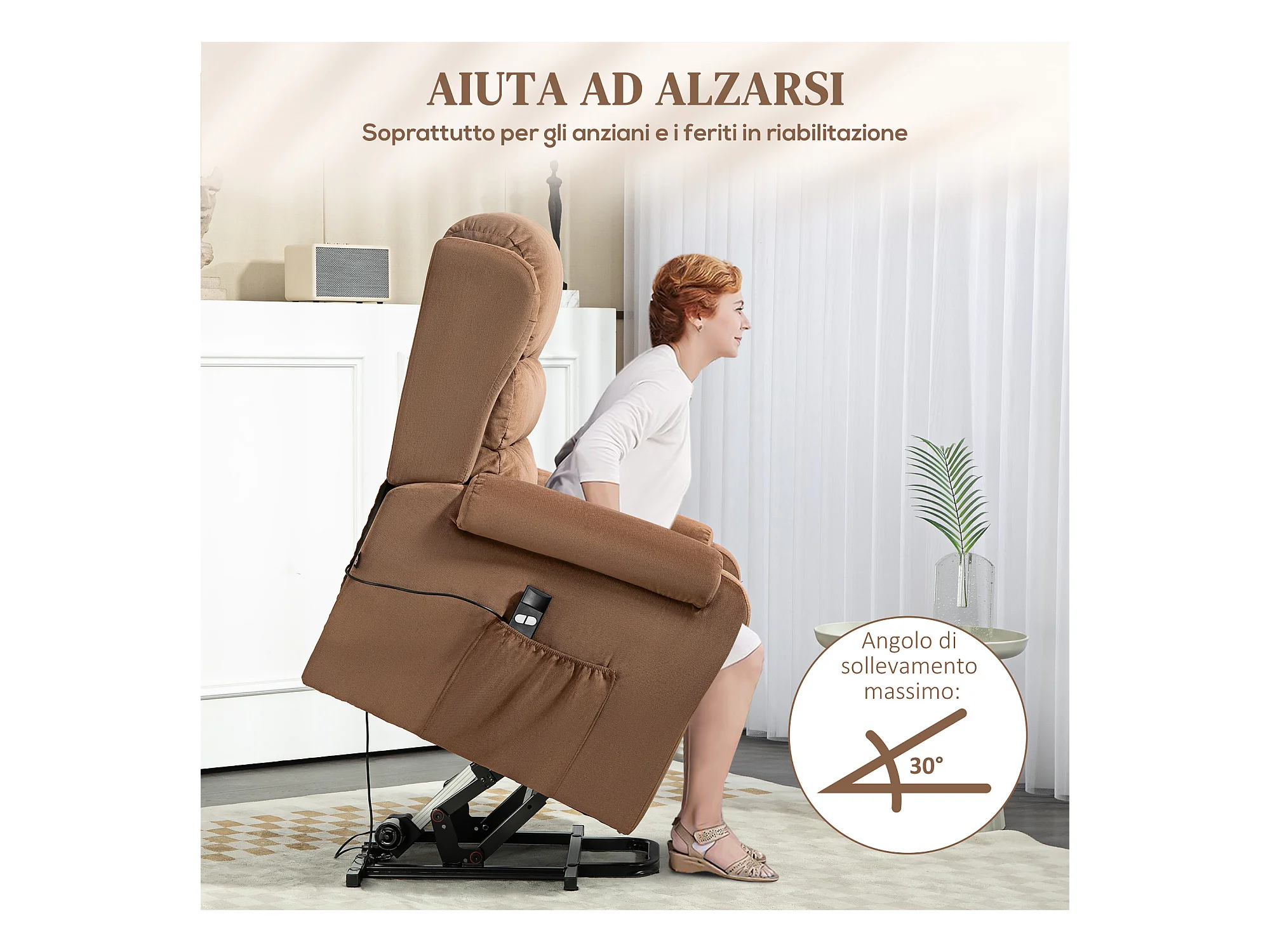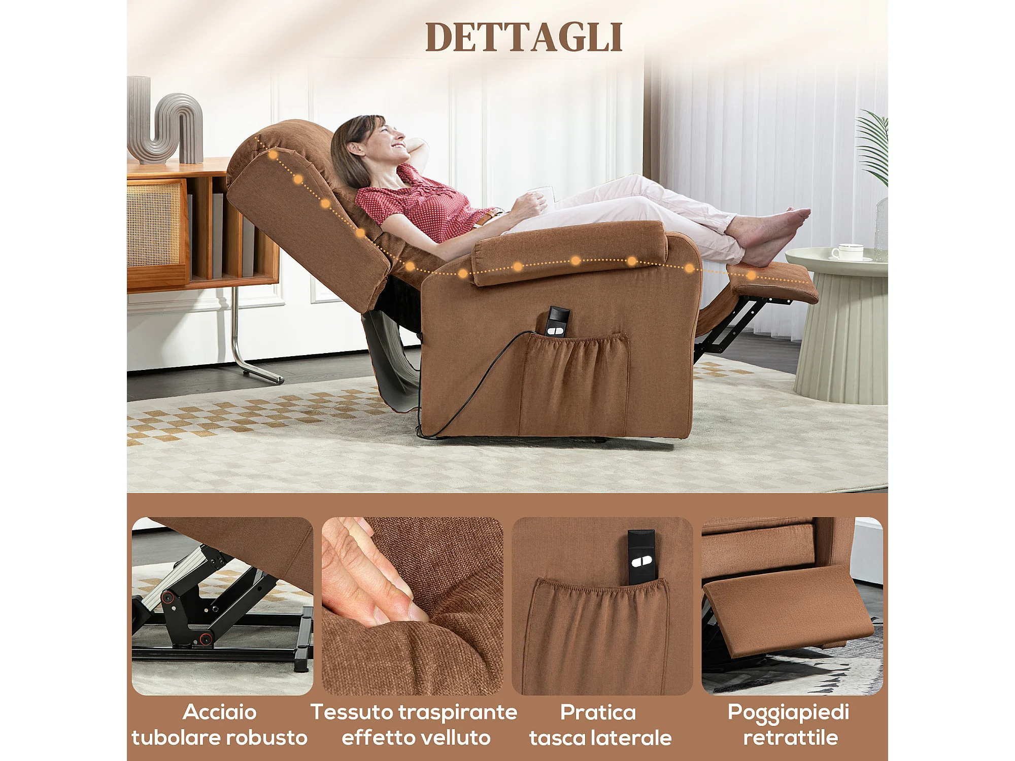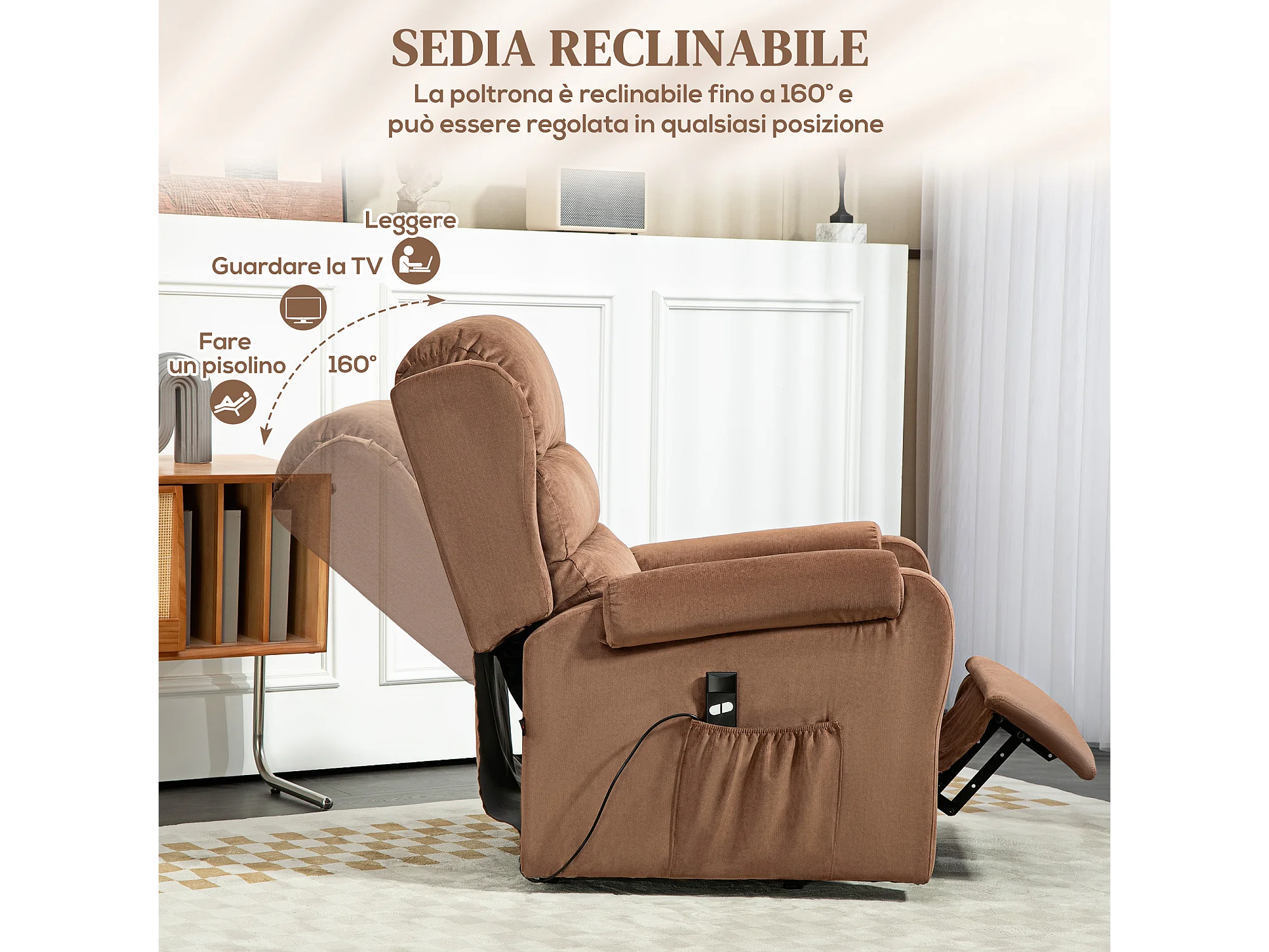 Poltrona relax alzapersona reclinabile con 8 punti massaggio marrone