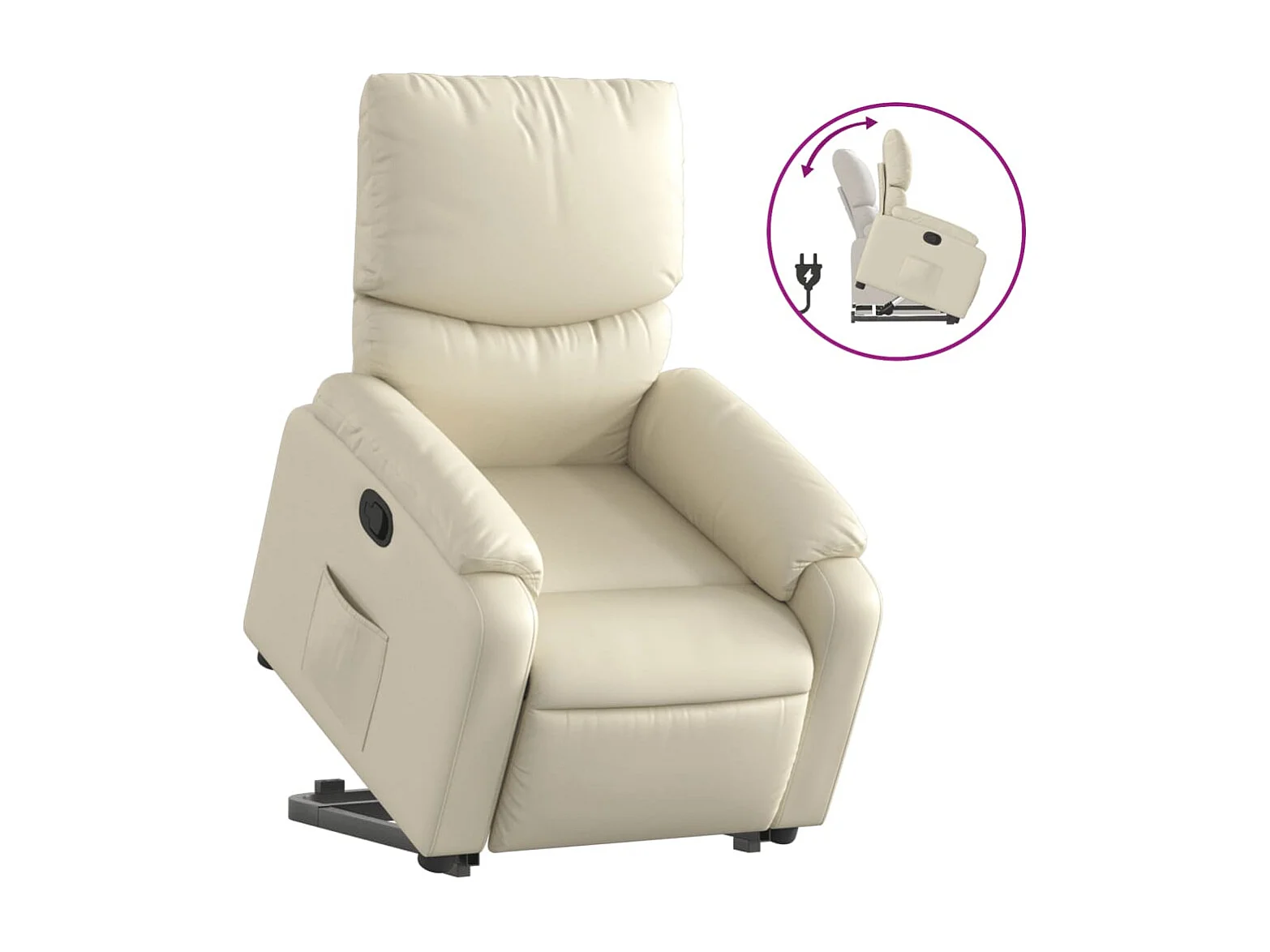 Poltrona Alzapersona Reclinabile Crema in Similpelle