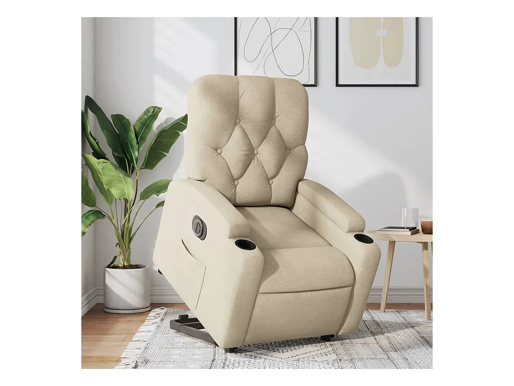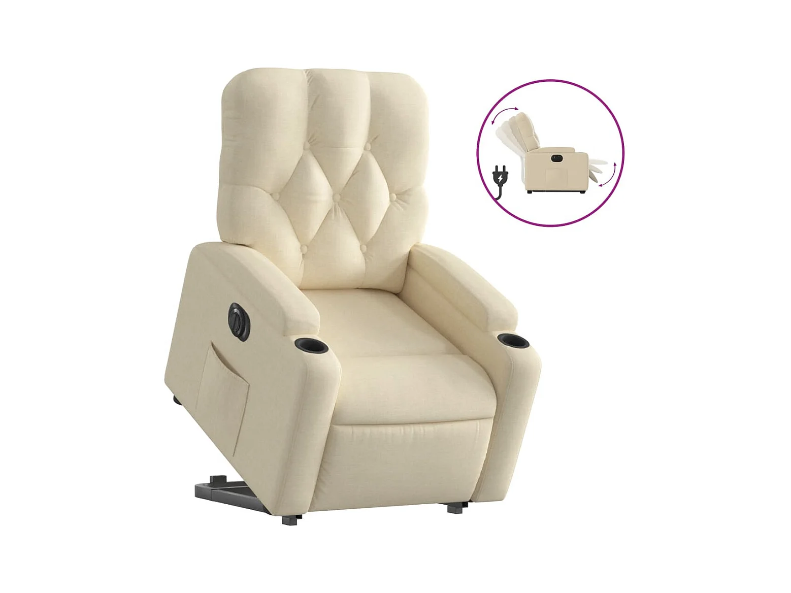 Poltrona Alzapersona Reclinabile Elettrica Crema in Tessuto