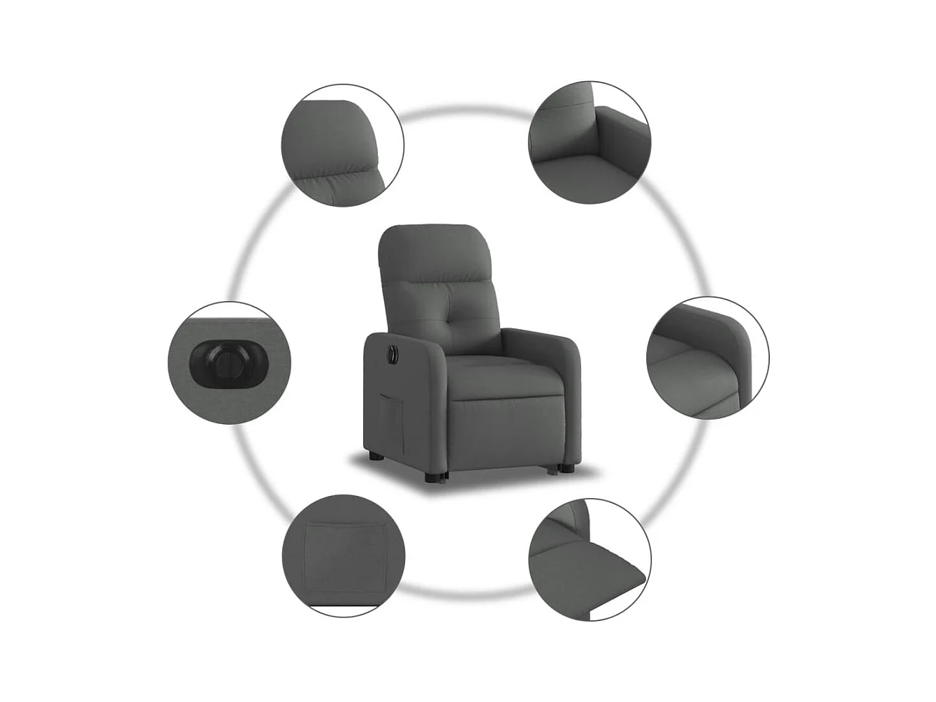 Poltrona Alzapersona Reclinabile Grigio Scuro in Tessuto