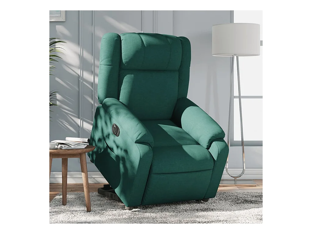 Poltrona Alzapersona Reclinabile Elettrica Verde Scuro Tessuto