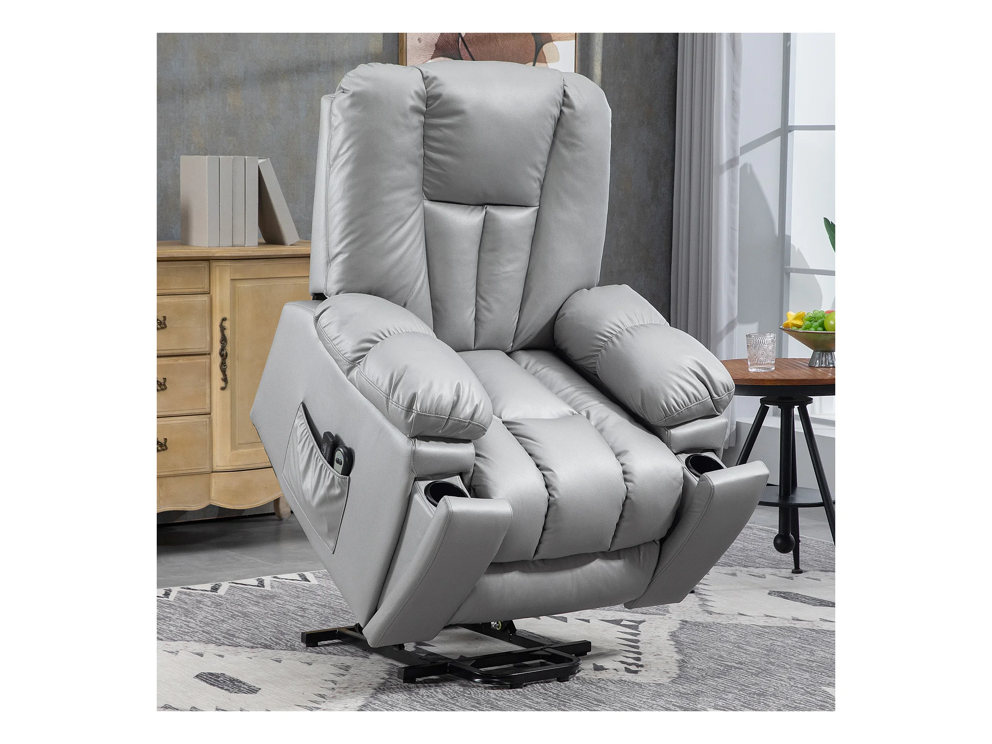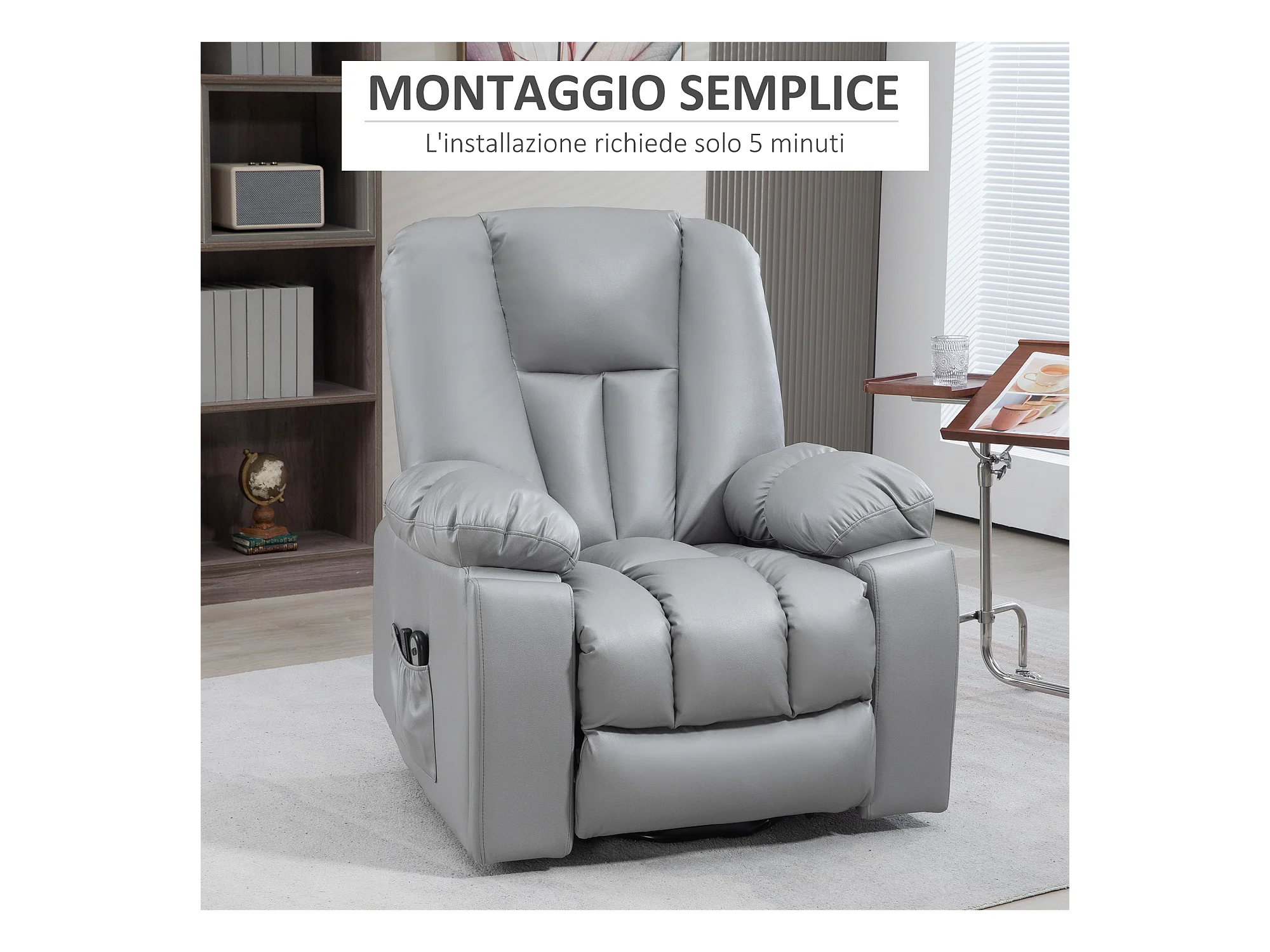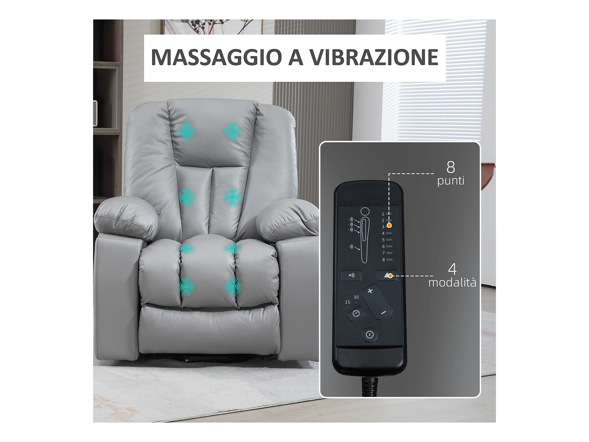 Poltrona alzapersona in finta pelle con 8 punti massaggianti grigia