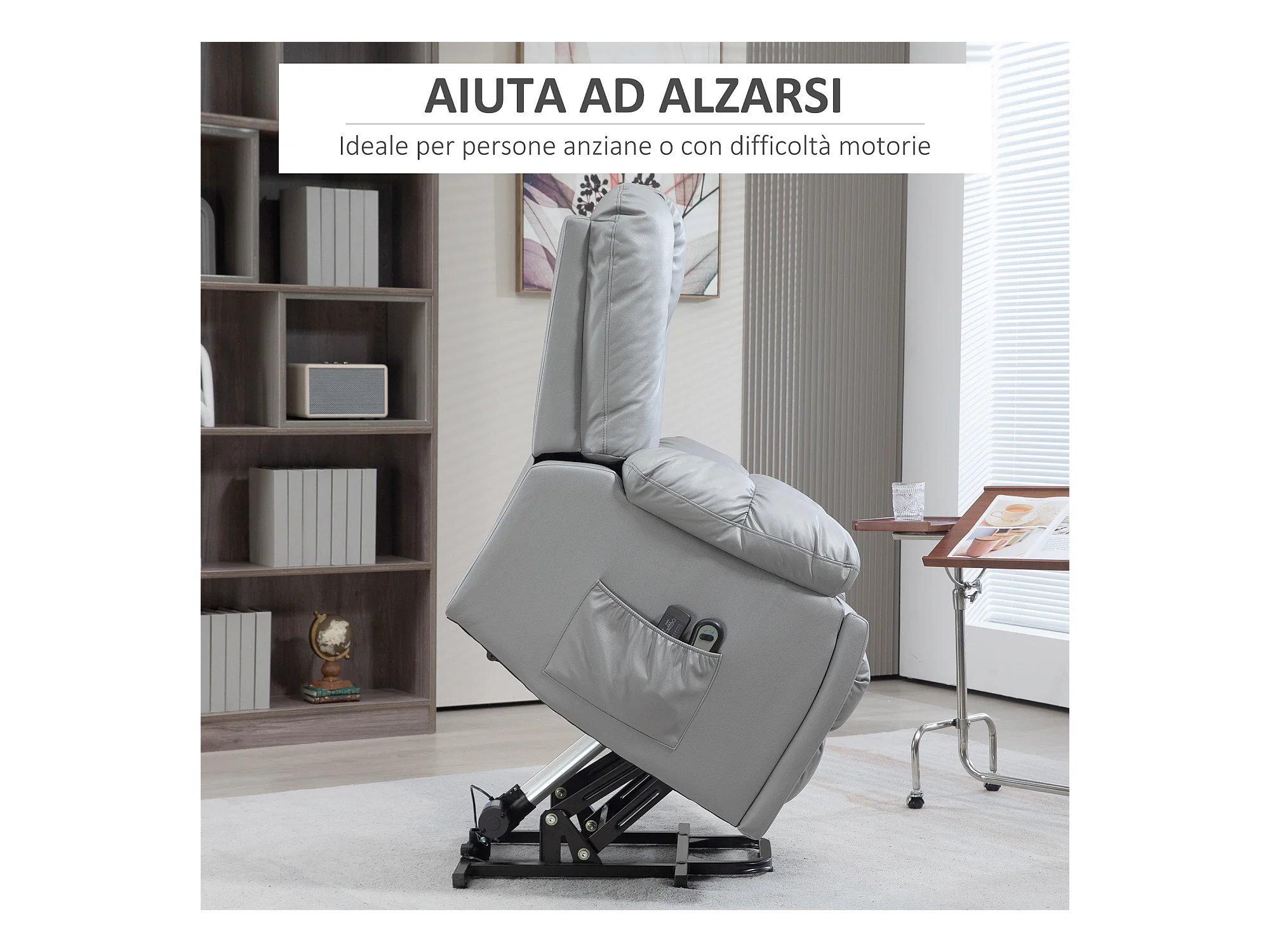 Poltrona alzapersona elettrica e reclinabile con telecomando grigio