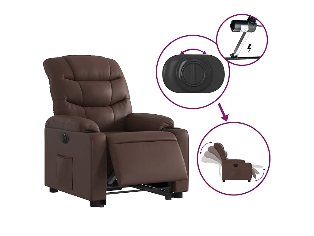 Poltrona Alzapersona Reclinabile Marrone in Similpelle