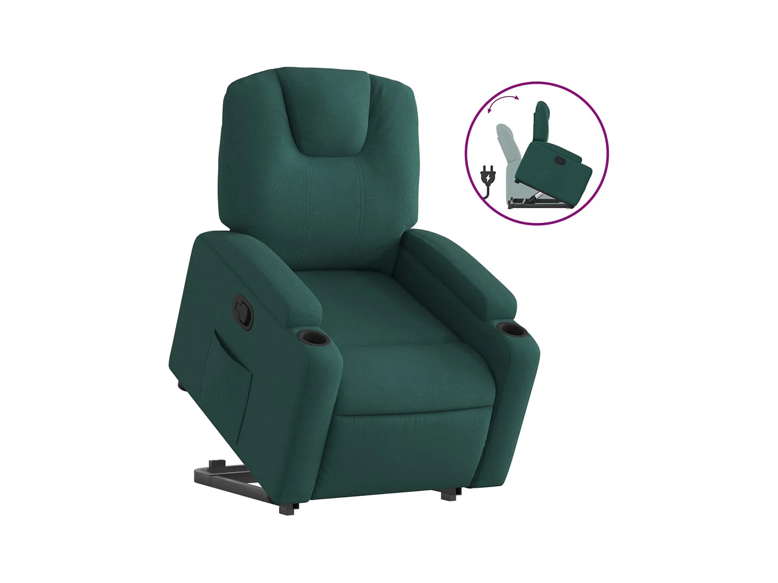 Poltrona Alzapersona Reclinabile Elettrica Verde Scuro Tessuto