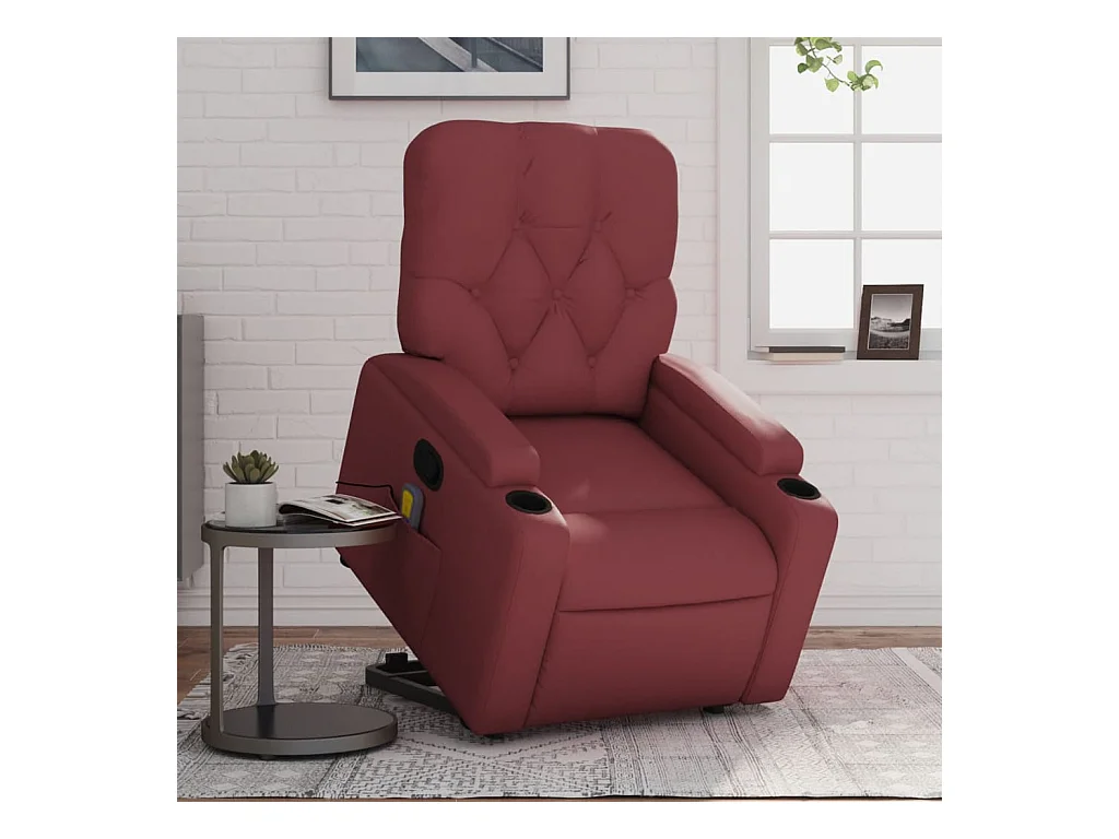 Poltrona Alzapersone Massaggi Reclinabile Rosso Vino Similpelle