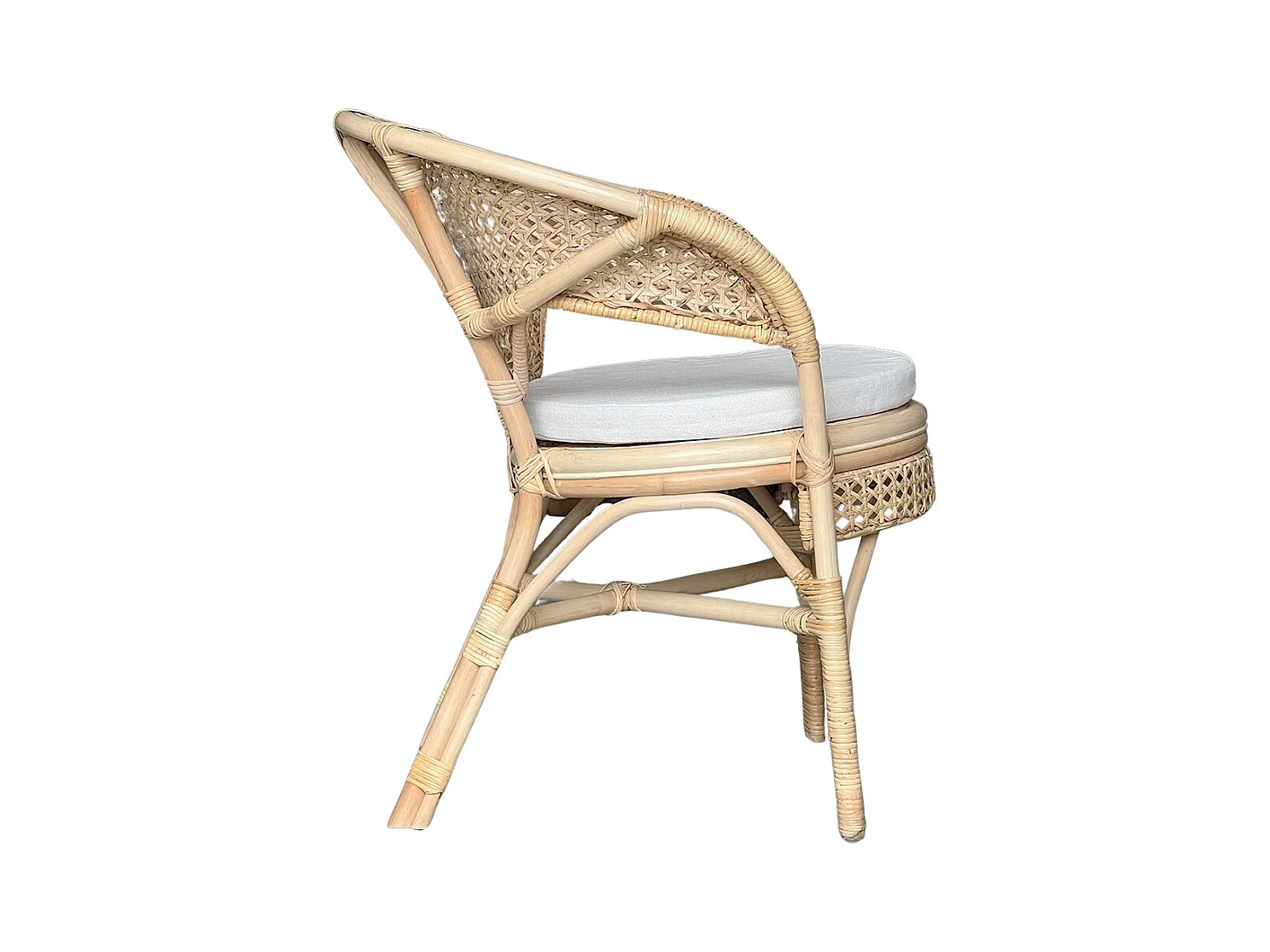Poltrona Amanda in vimini naturale con paglia di vienna e cuscino in omaggio