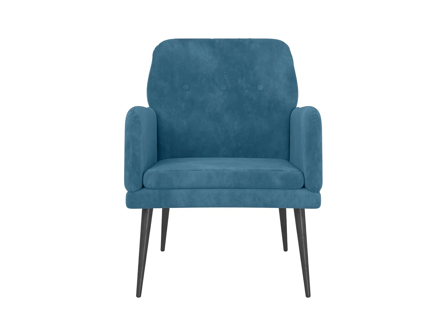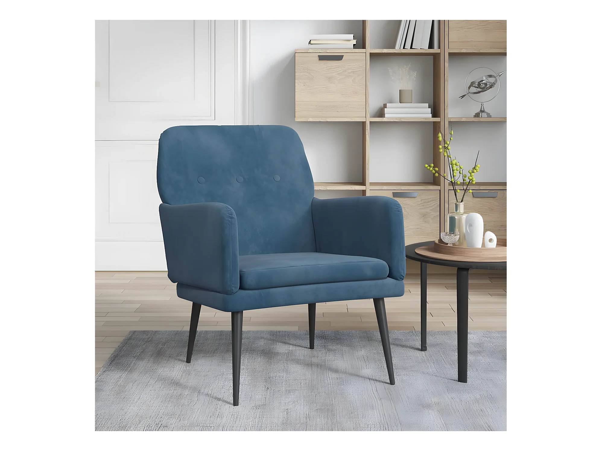 Poltrona da salotto in tessuto blu denim con piedi in legno collezione ENJOY. Stile scandinavo.