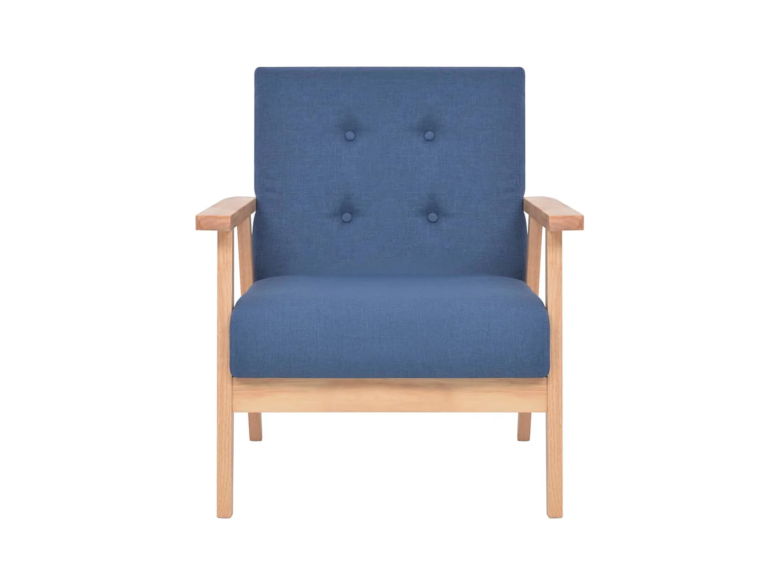 Poltrona blu CYRUS con schienale alto e gambe in legno massiccio nero
