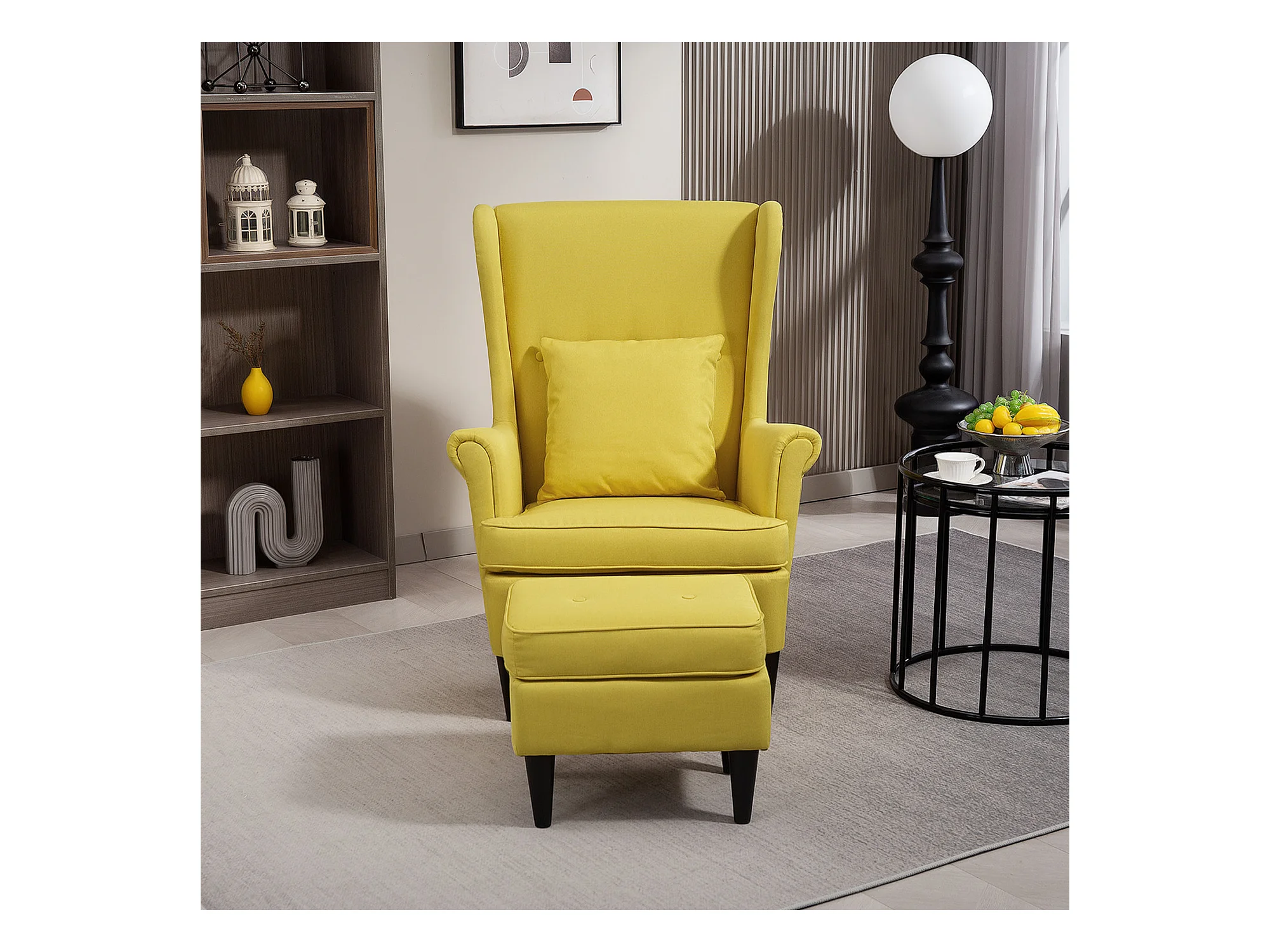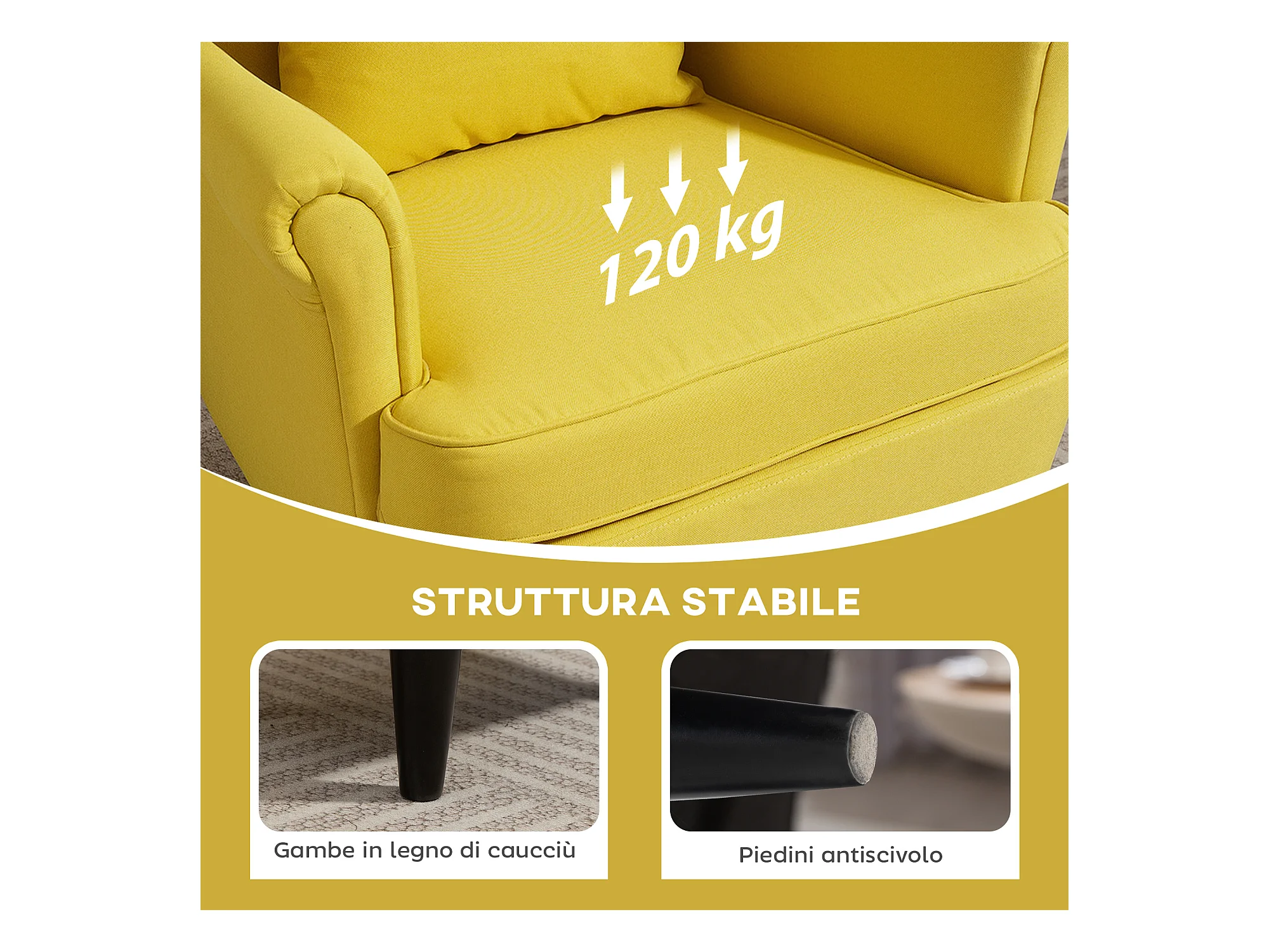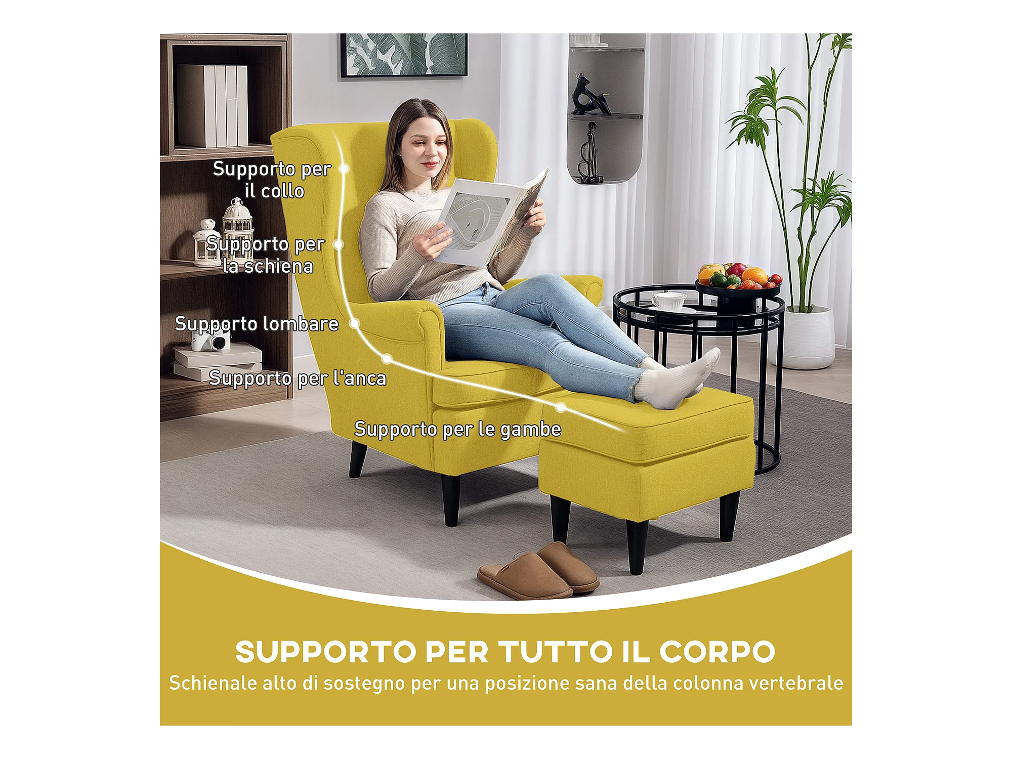 Poltrona con poggiapiedi abbinato in stile contemporaneo giallo