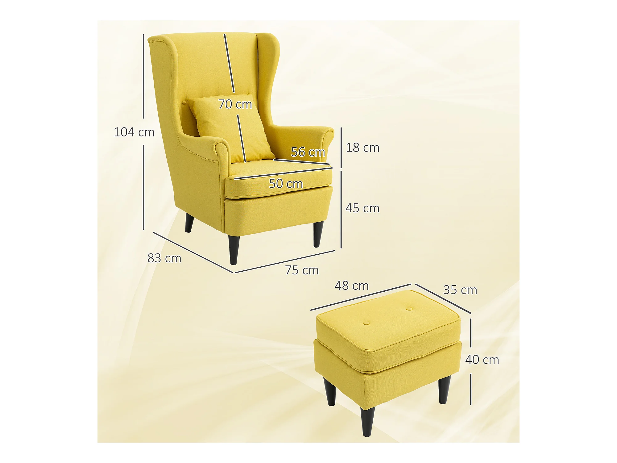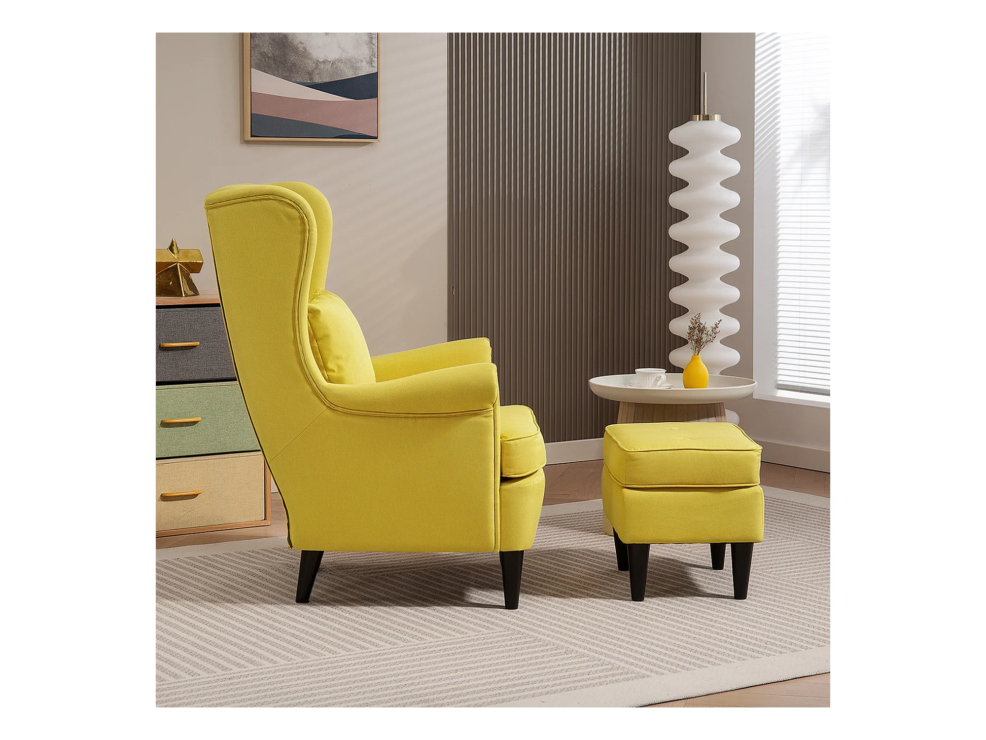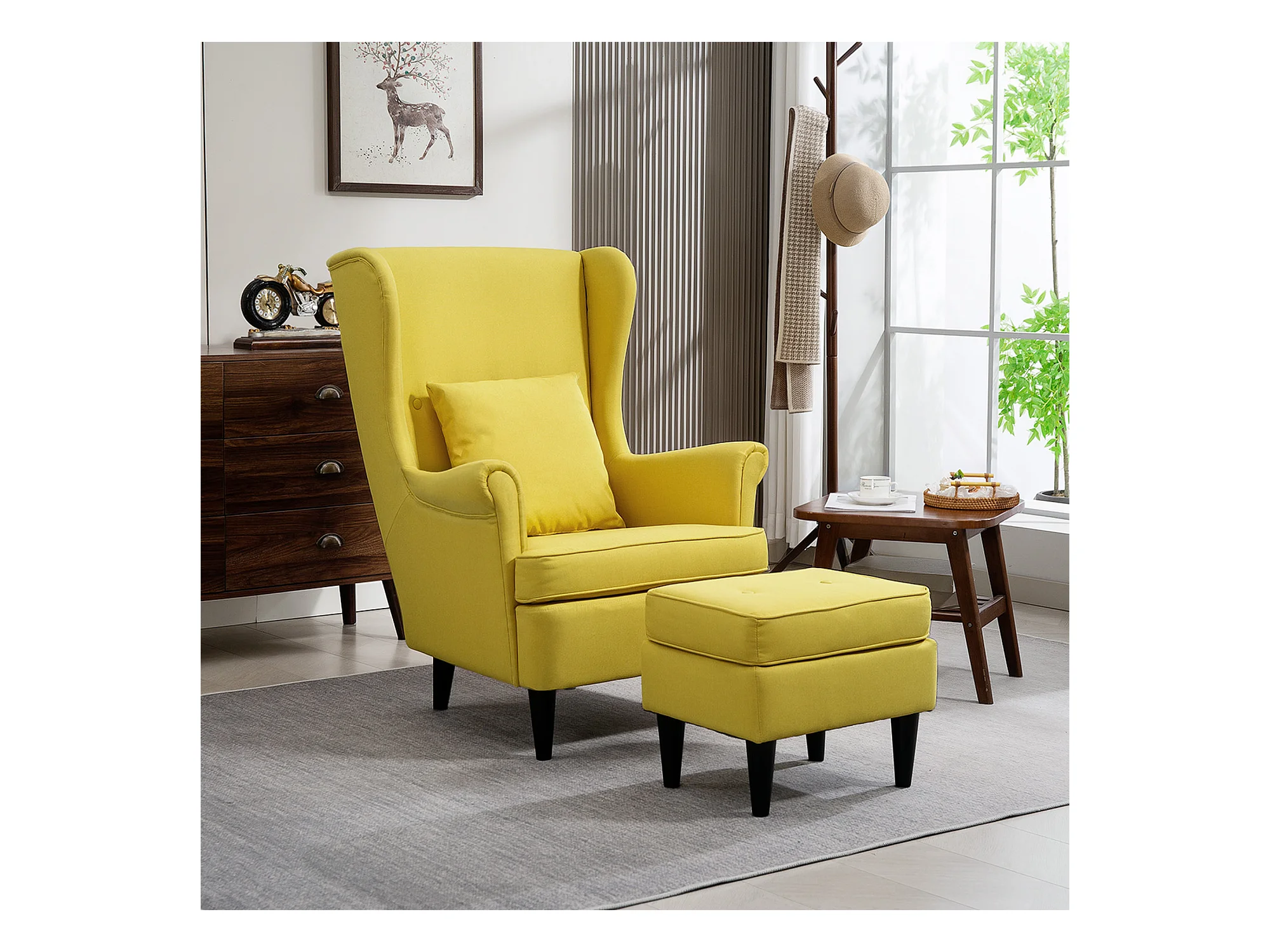 Poltrona con poggiapiedi abbinato in stile contemporaneo giallo