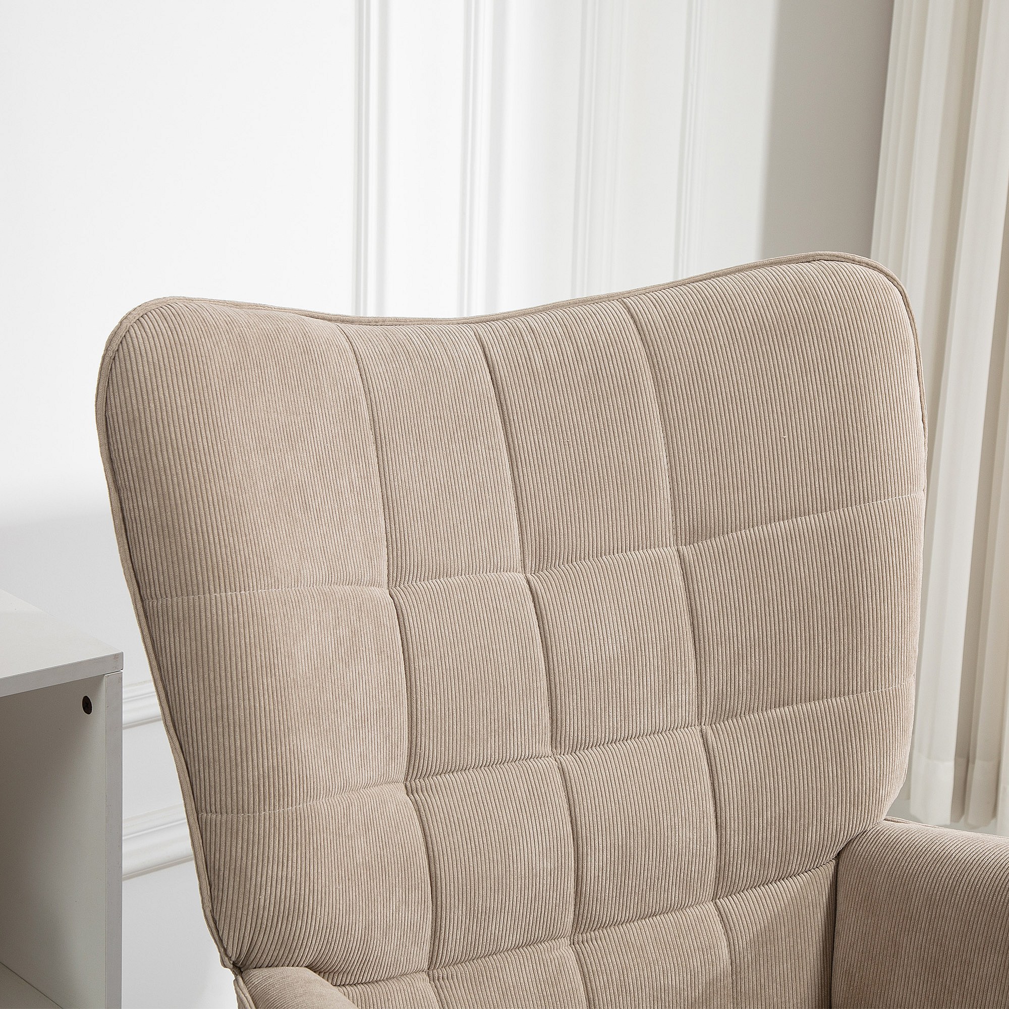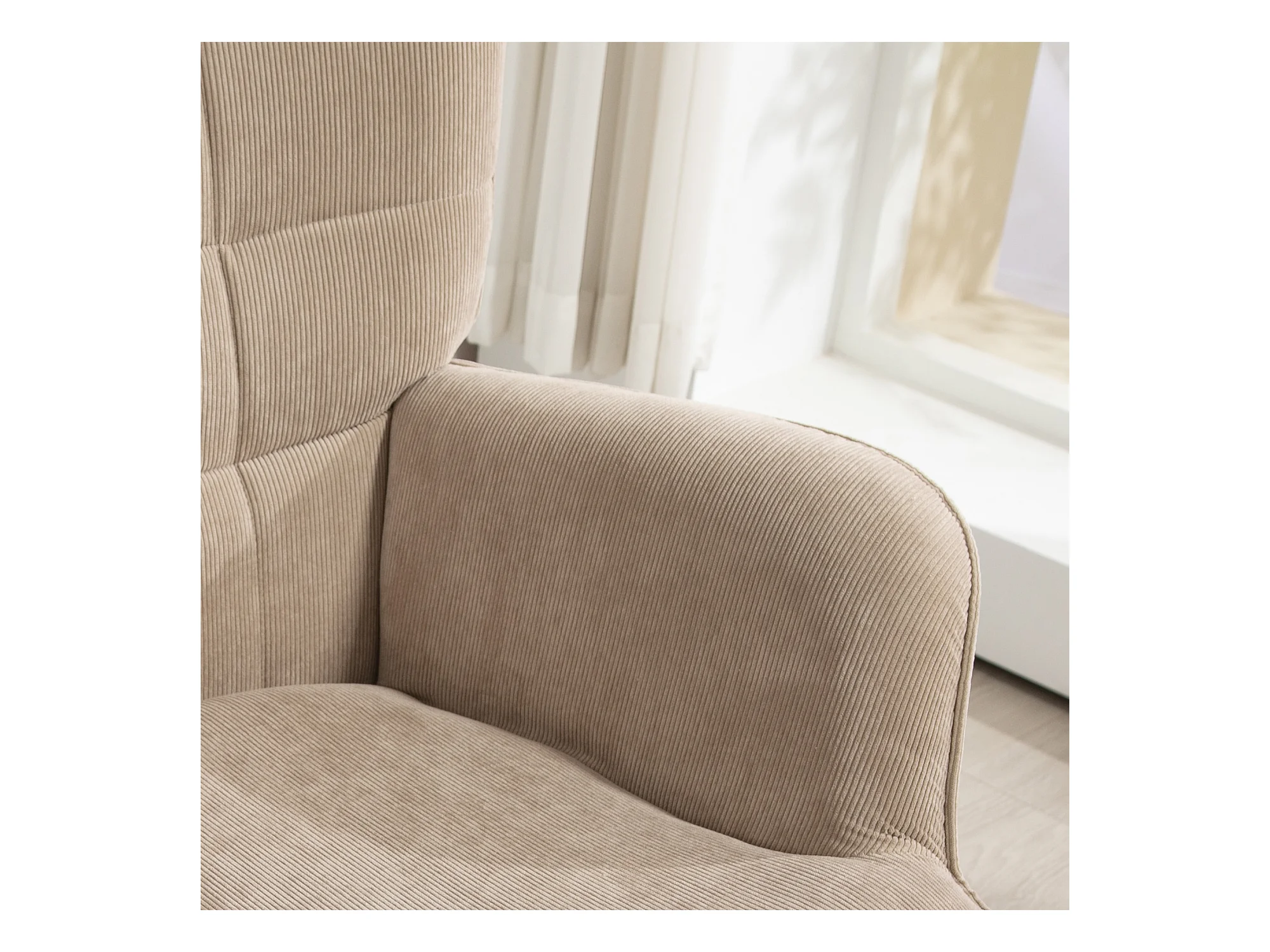 Poltrona con poggiapiedi in tessuto effetto velluto marrone chiaro