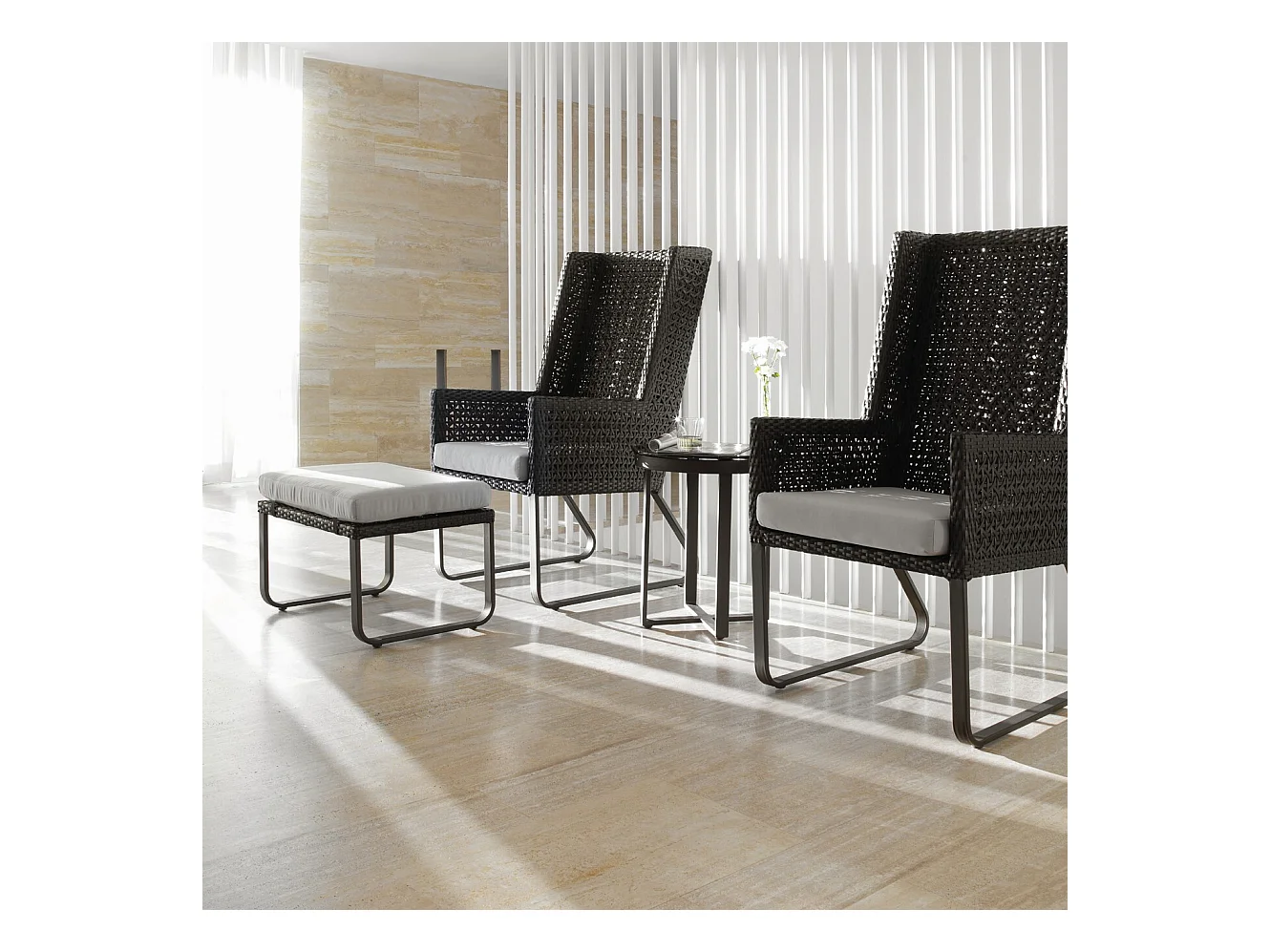 Poltrona in alluminio marrone e fibra sintetica con cuscini grigi