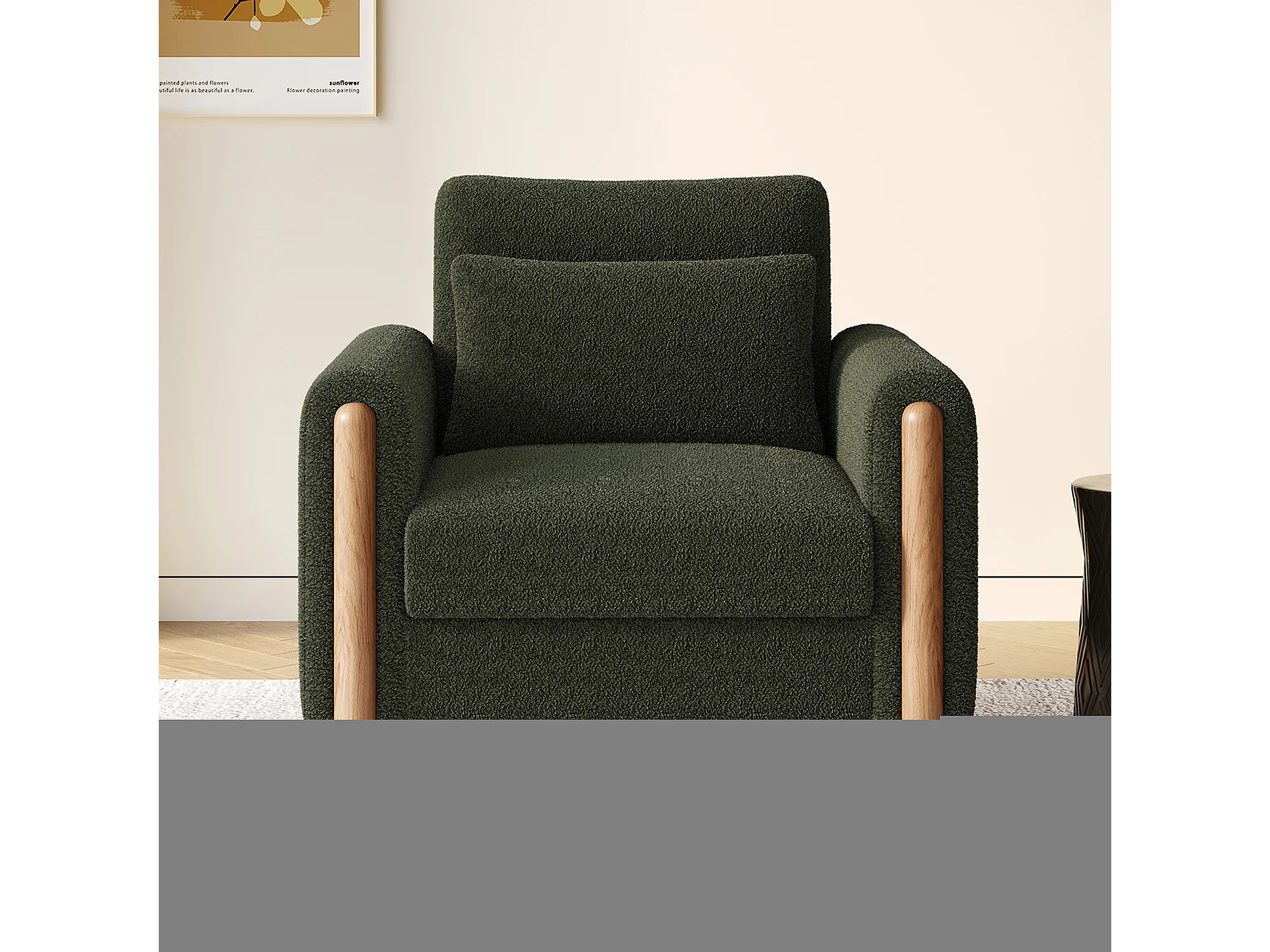 Poltrona con supporto lombare, struttura in legno, tessuto Teddy, verde