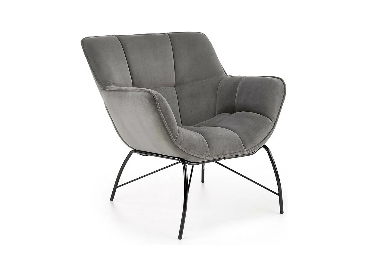 Poltrona contemporanea in velluto grigio con gambe di design in metallo nero BRIAC