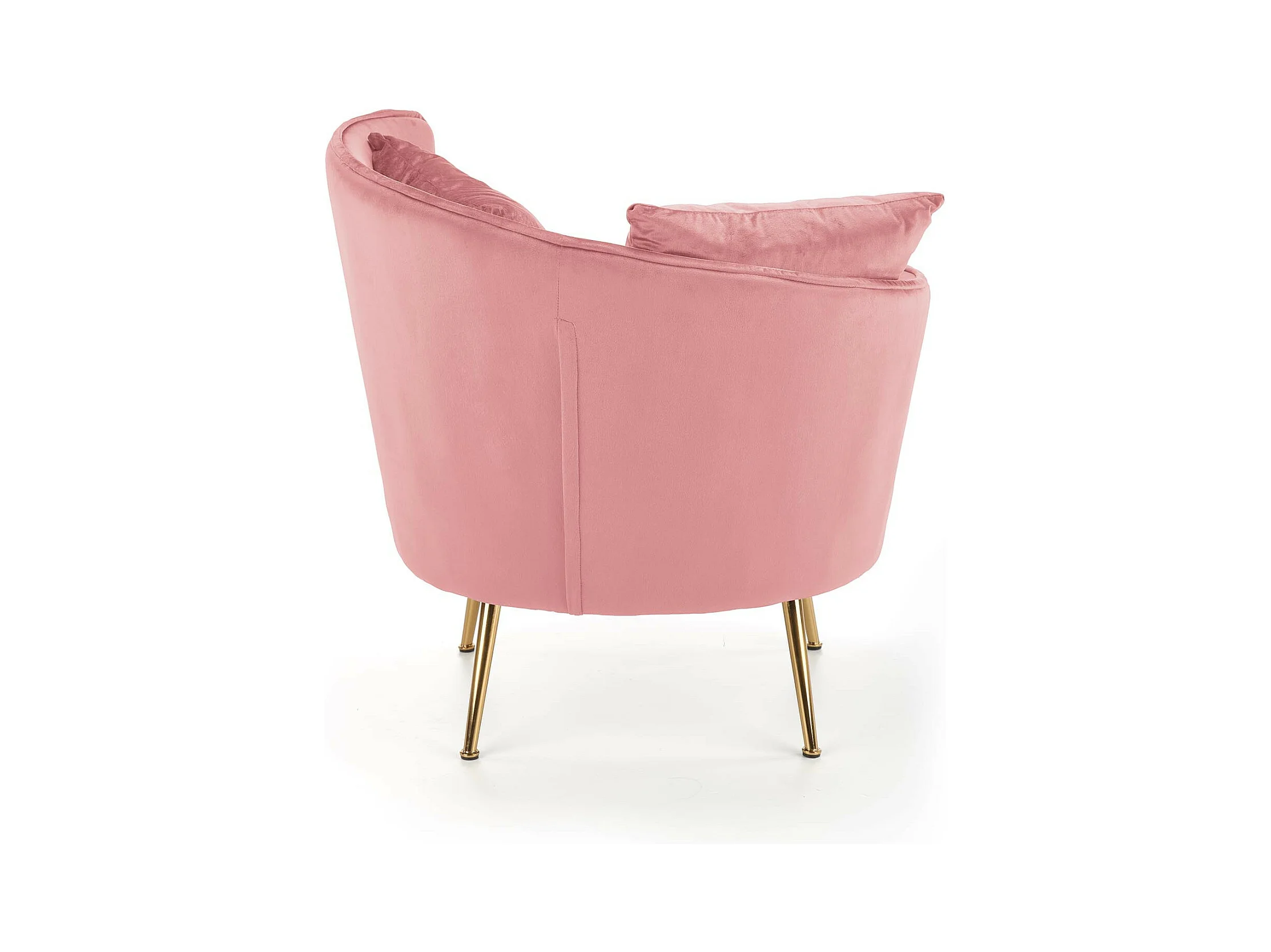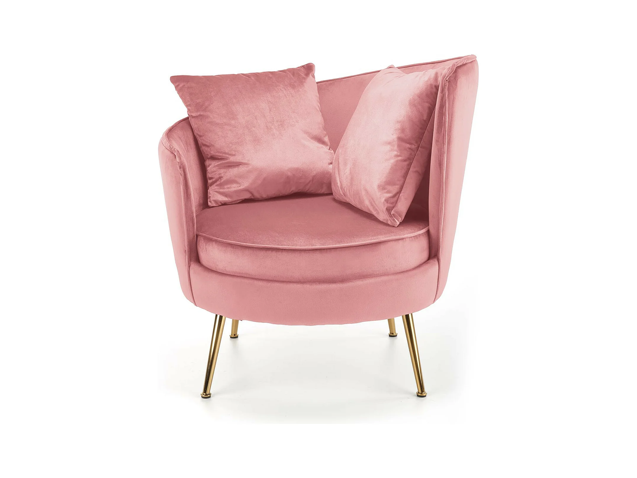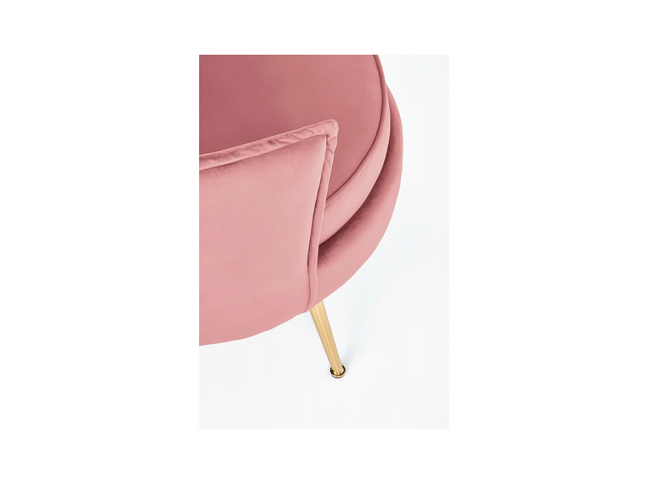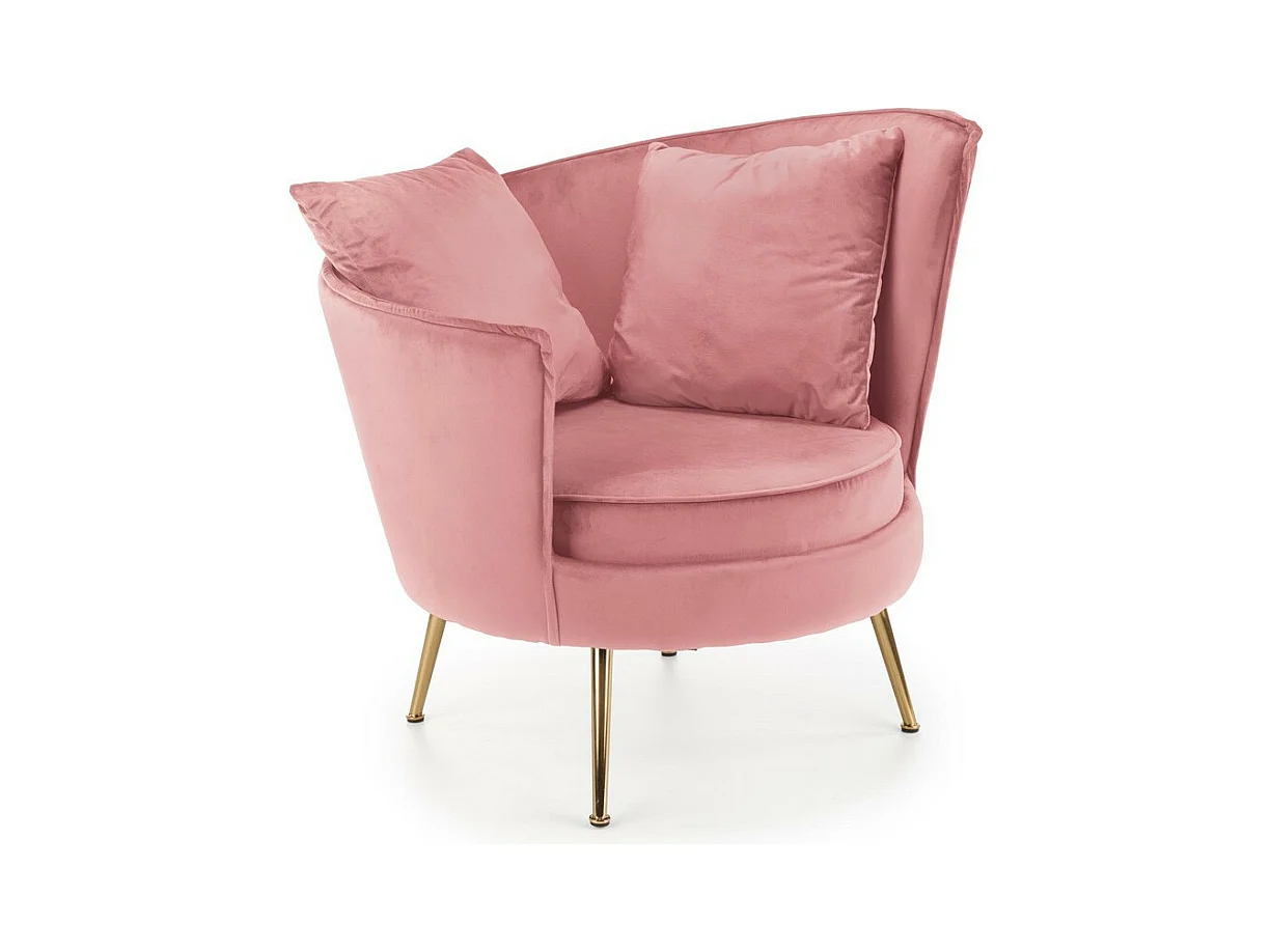 Poltrona contemporanea in velluto rosa con gambe in metallo dorato AEDAN