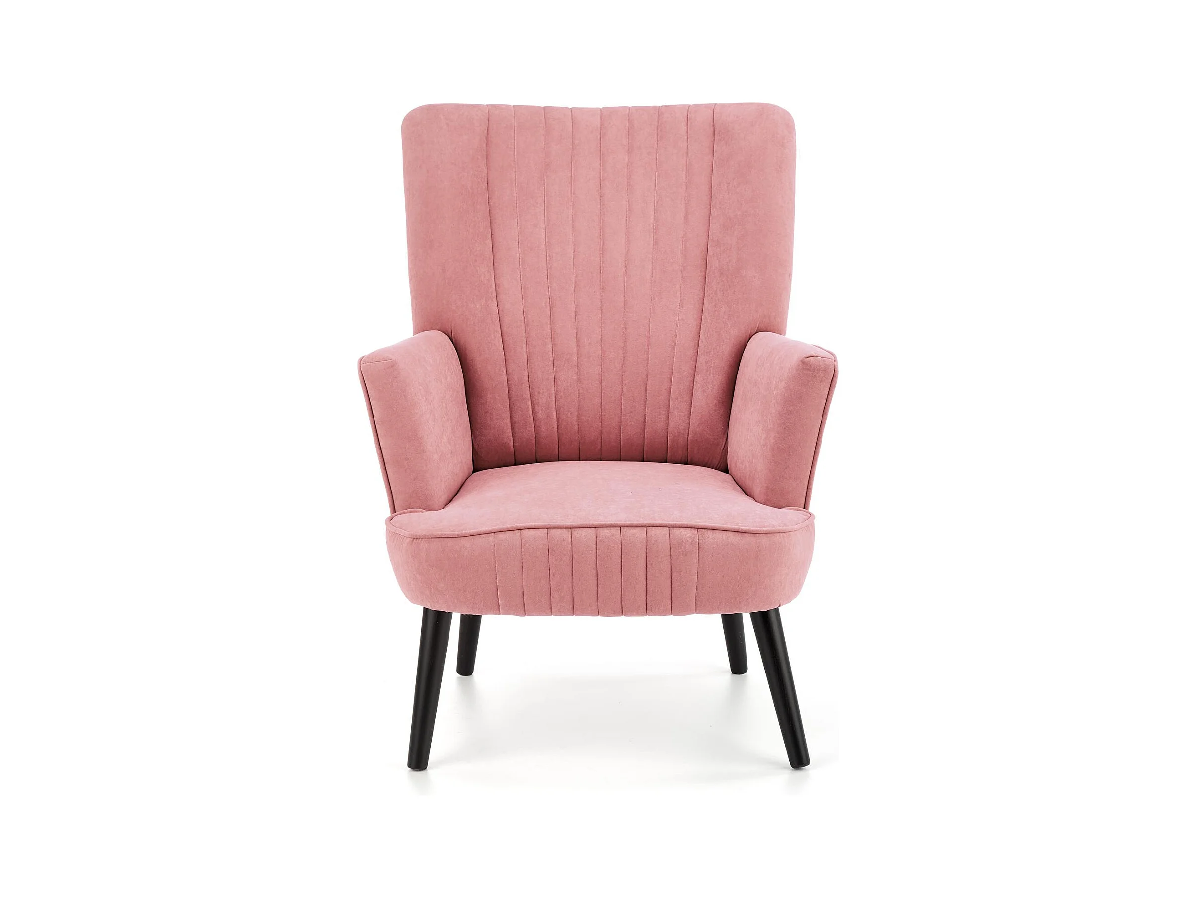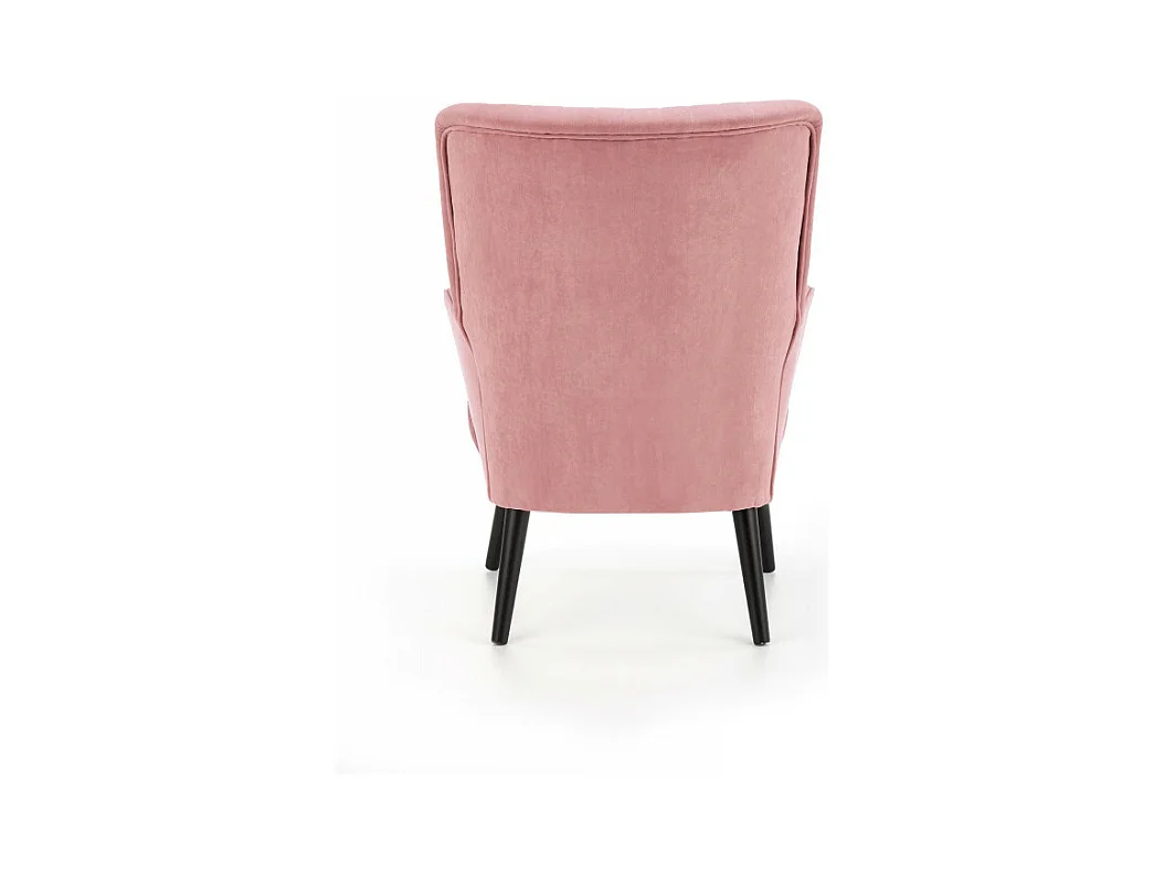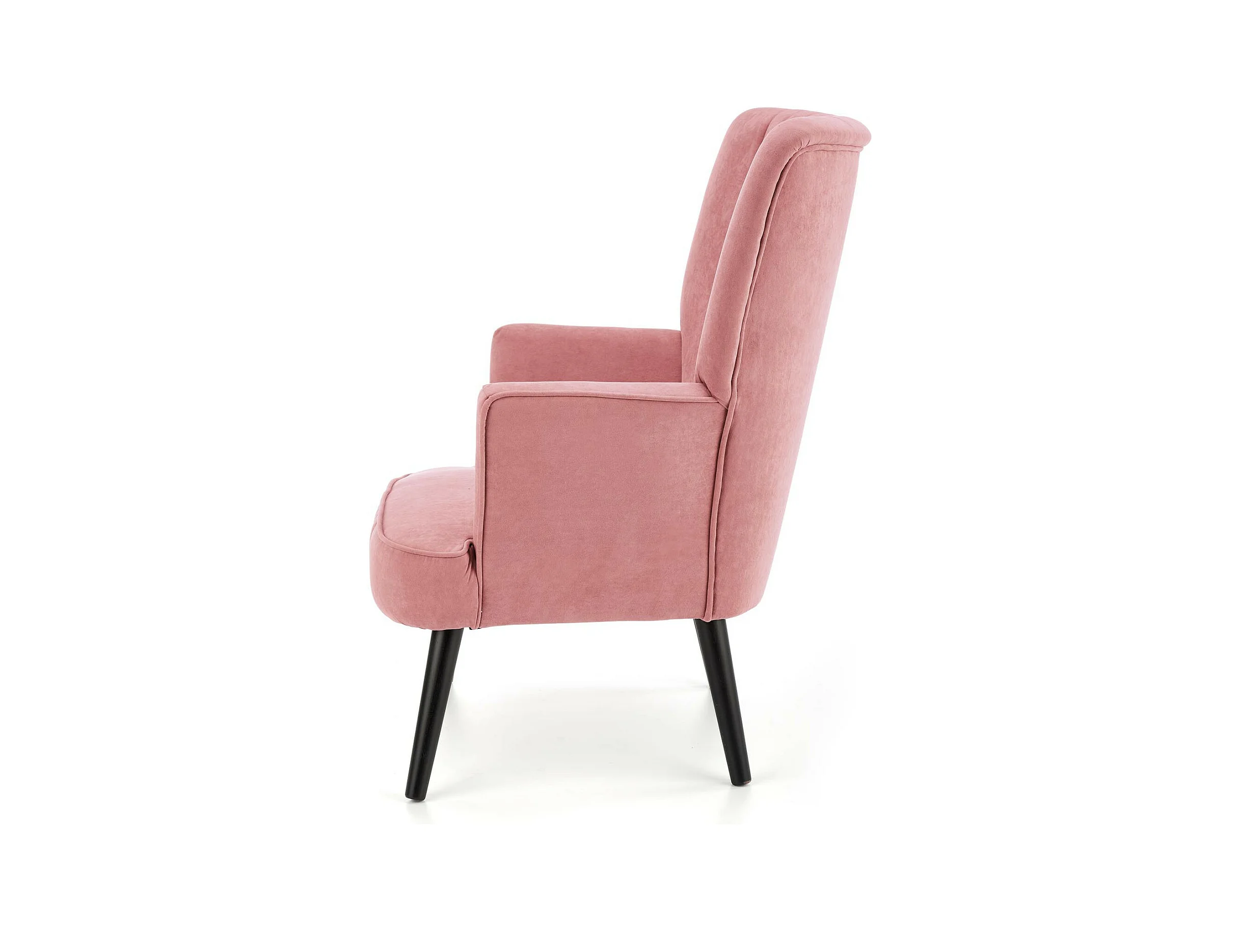 Poltrona contemporanea in velluto rosa con schienale alto e gambe in legno massiccio nero CYRUS