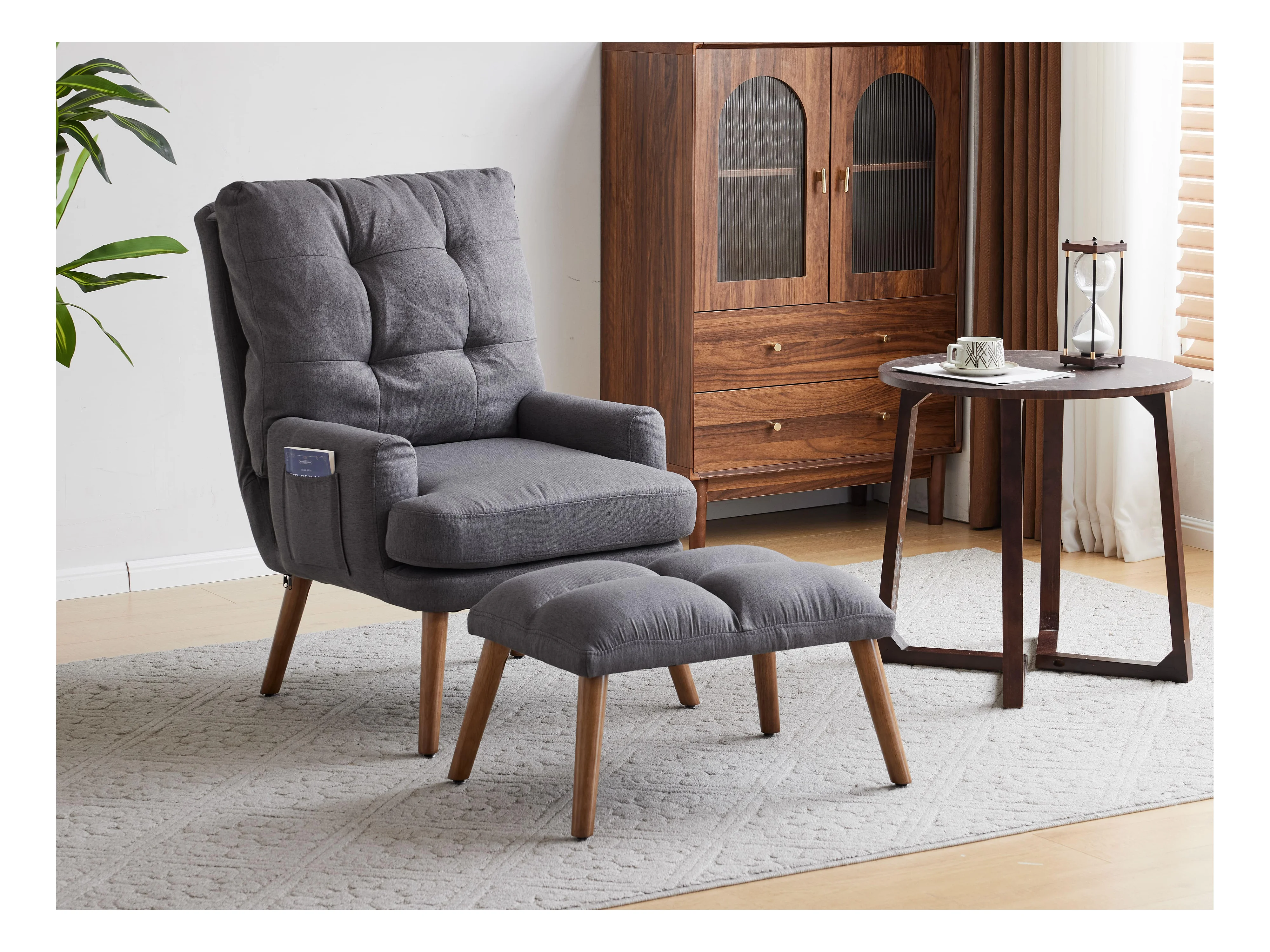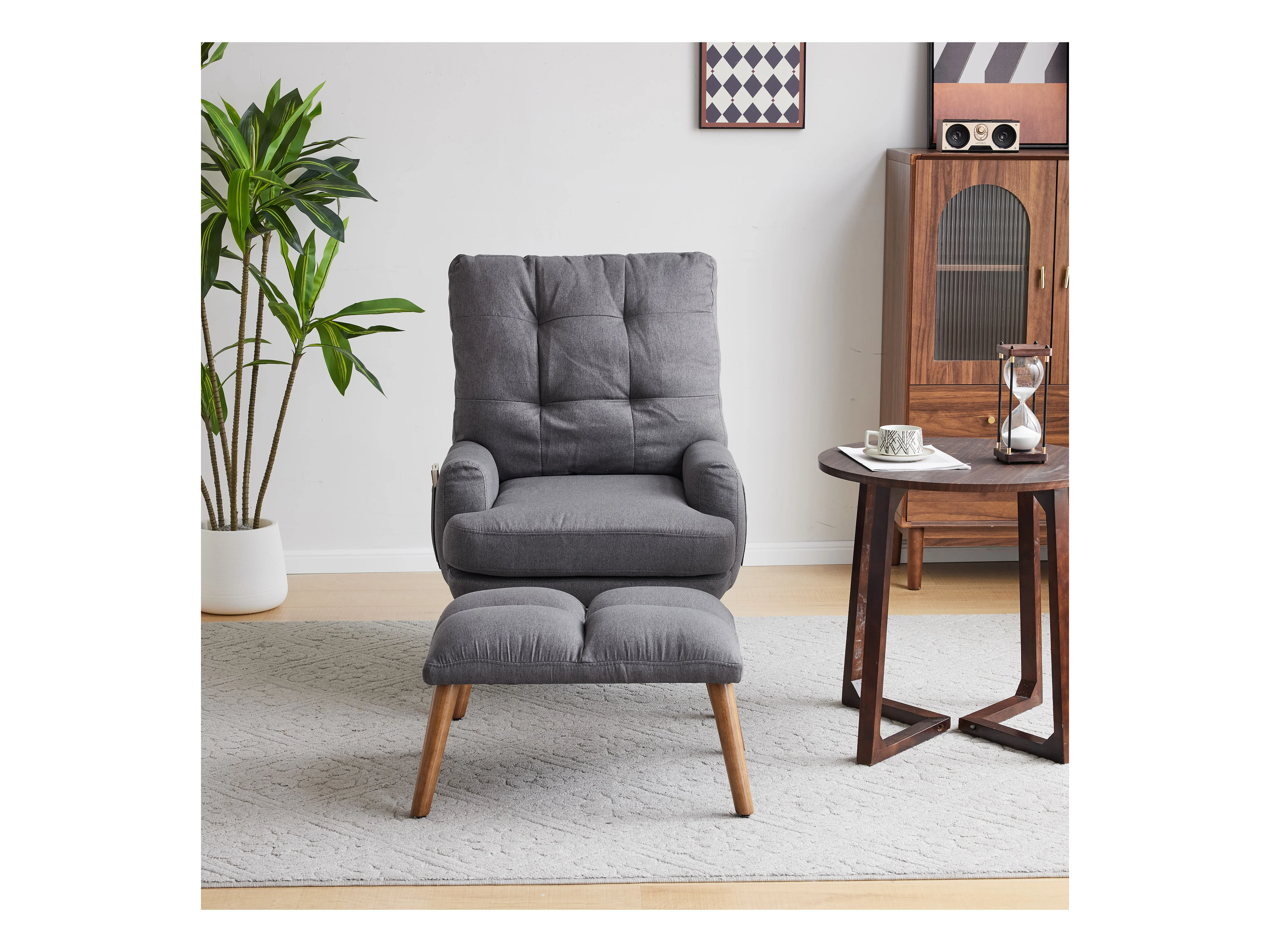 Poltrona con Gambe a Dondolo e Sgabello Grigio Scuro in Tessuto