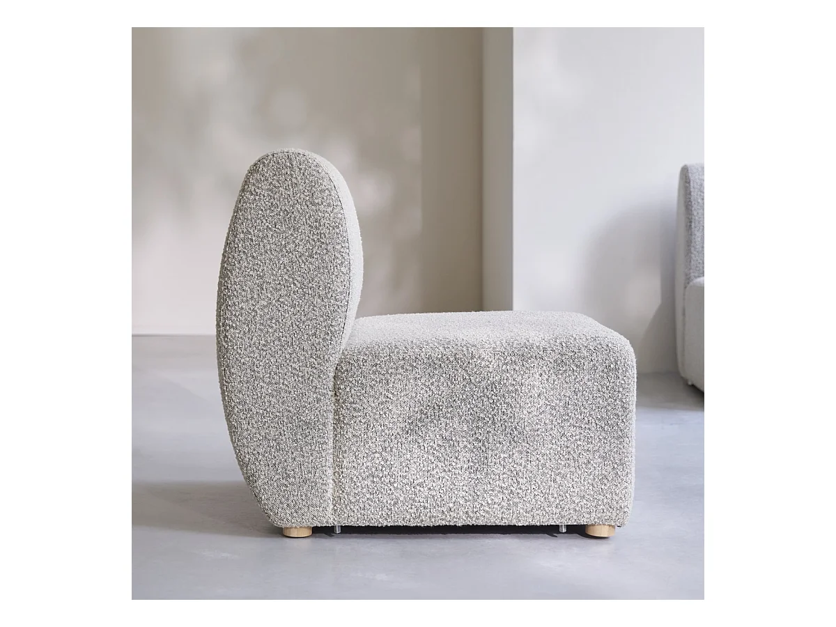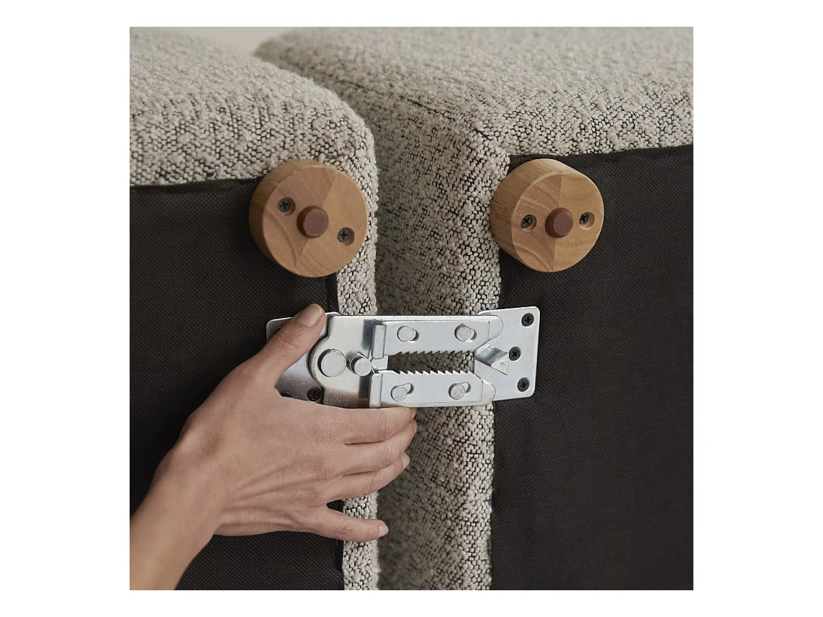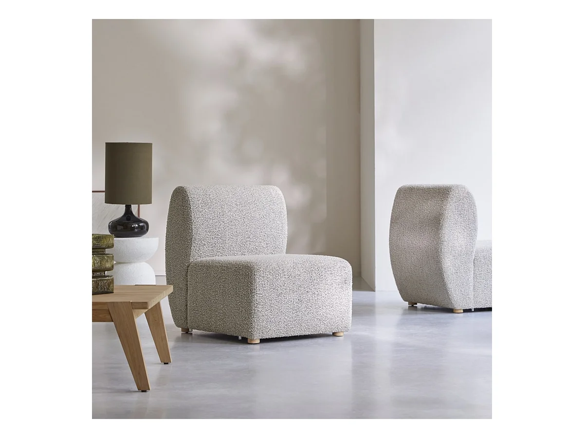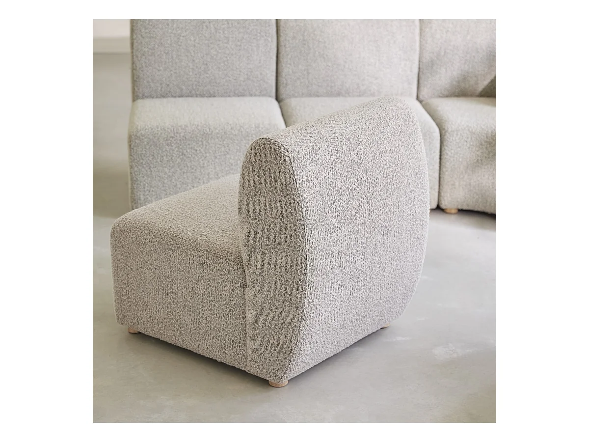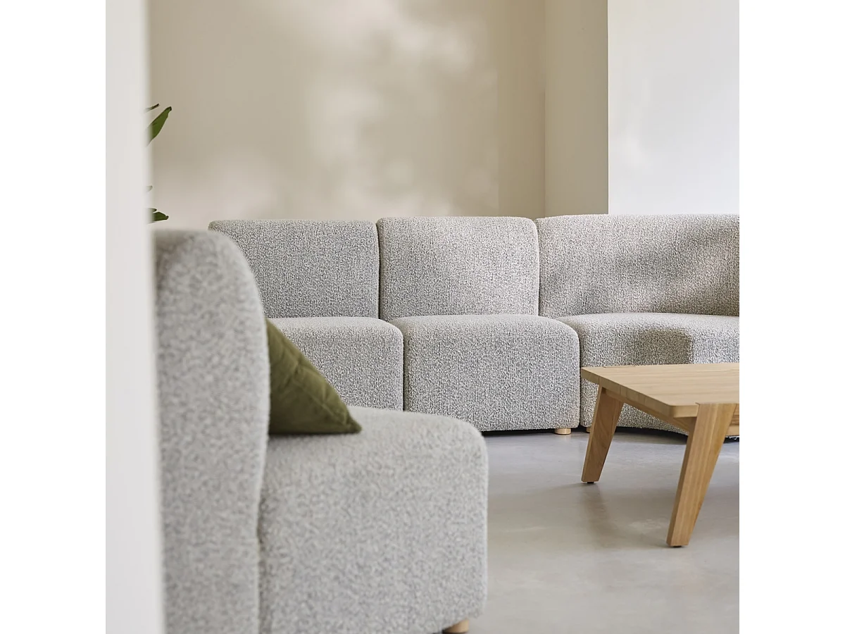 Poltrona da caminetto modulare Swann in acacia massello e tessuto grigio