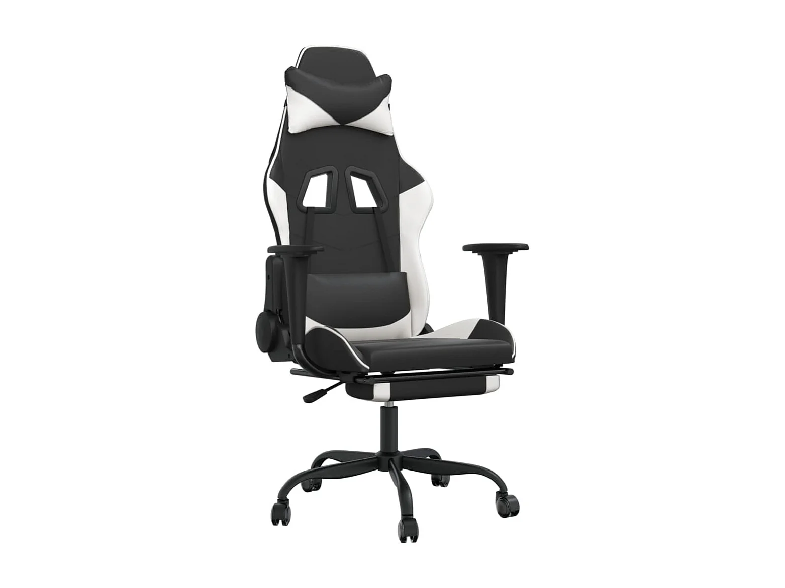 Poltrona da gaming massaggiante con poggiapiedi in similpelle bianca e nera