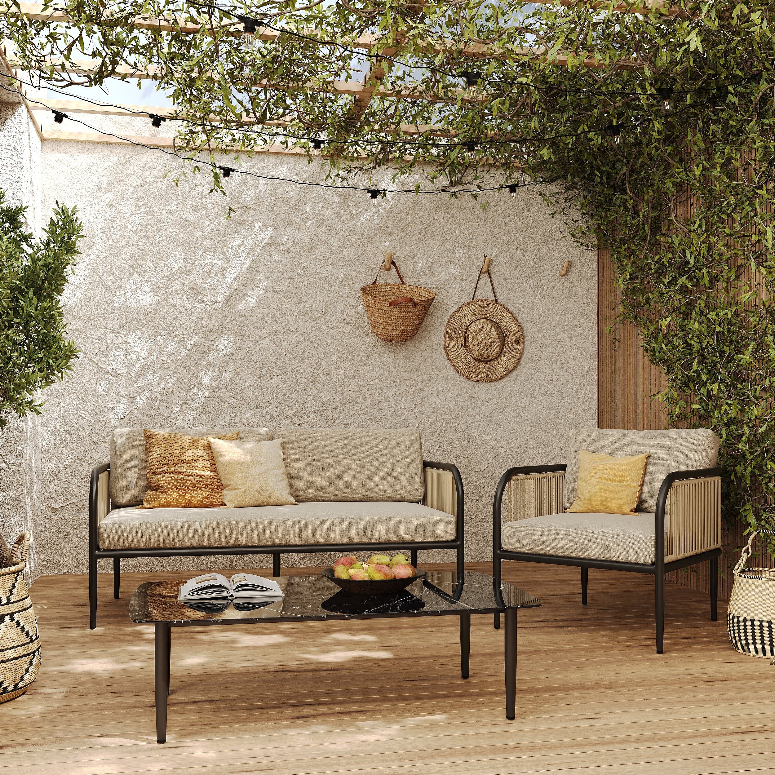 Poltrona da giardino in acciaio e tessuto beige - Wilo