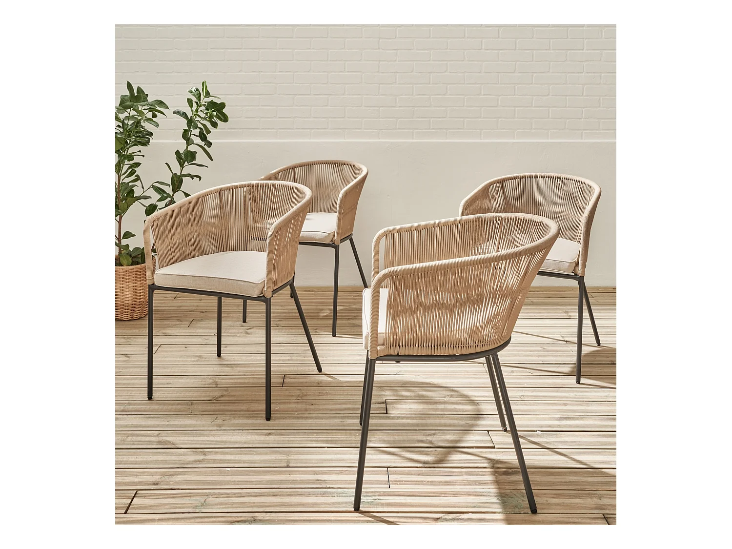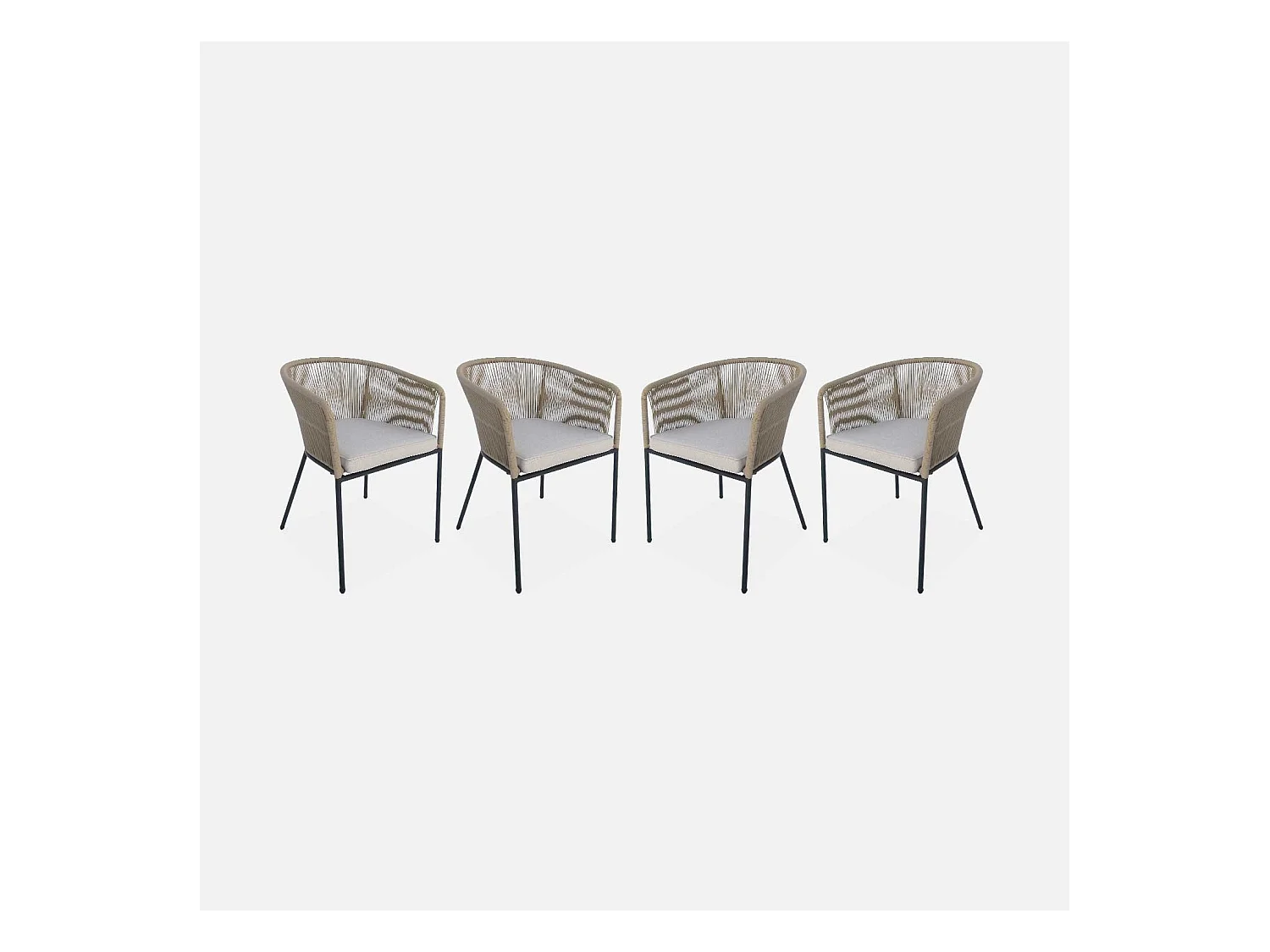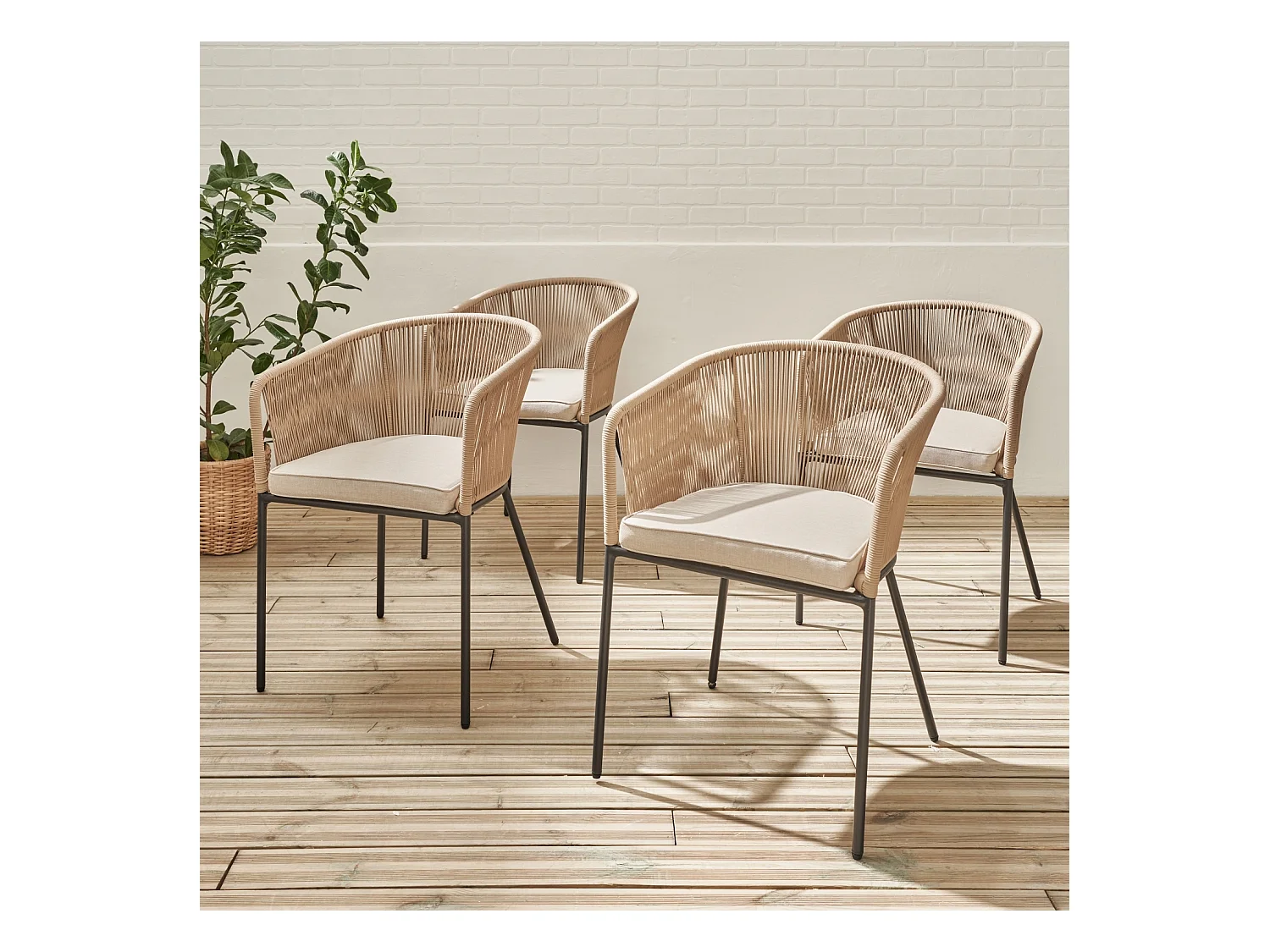 Set di 4 poltrona da giardino in corda e acciaio zincato, beige