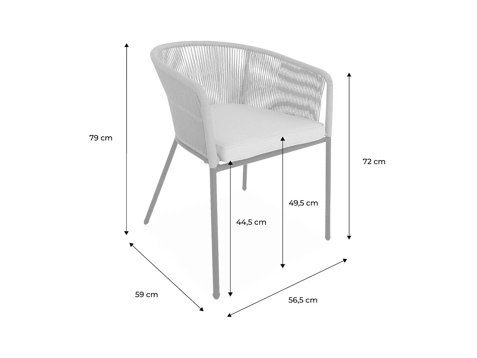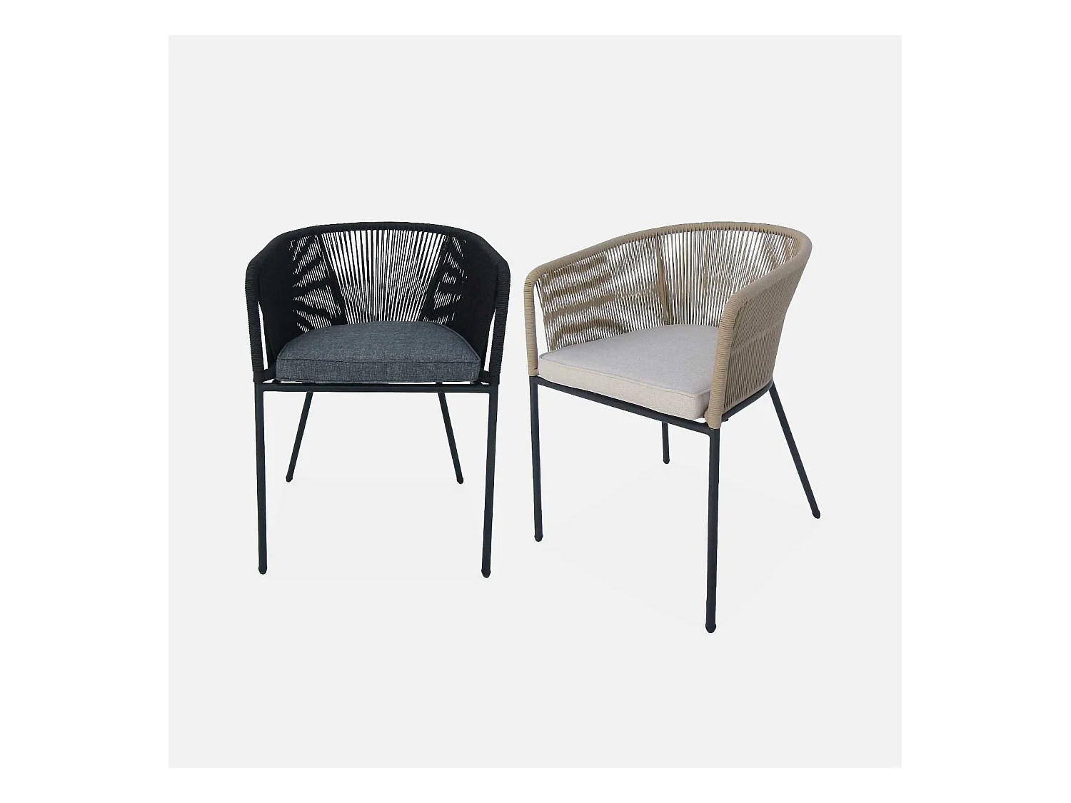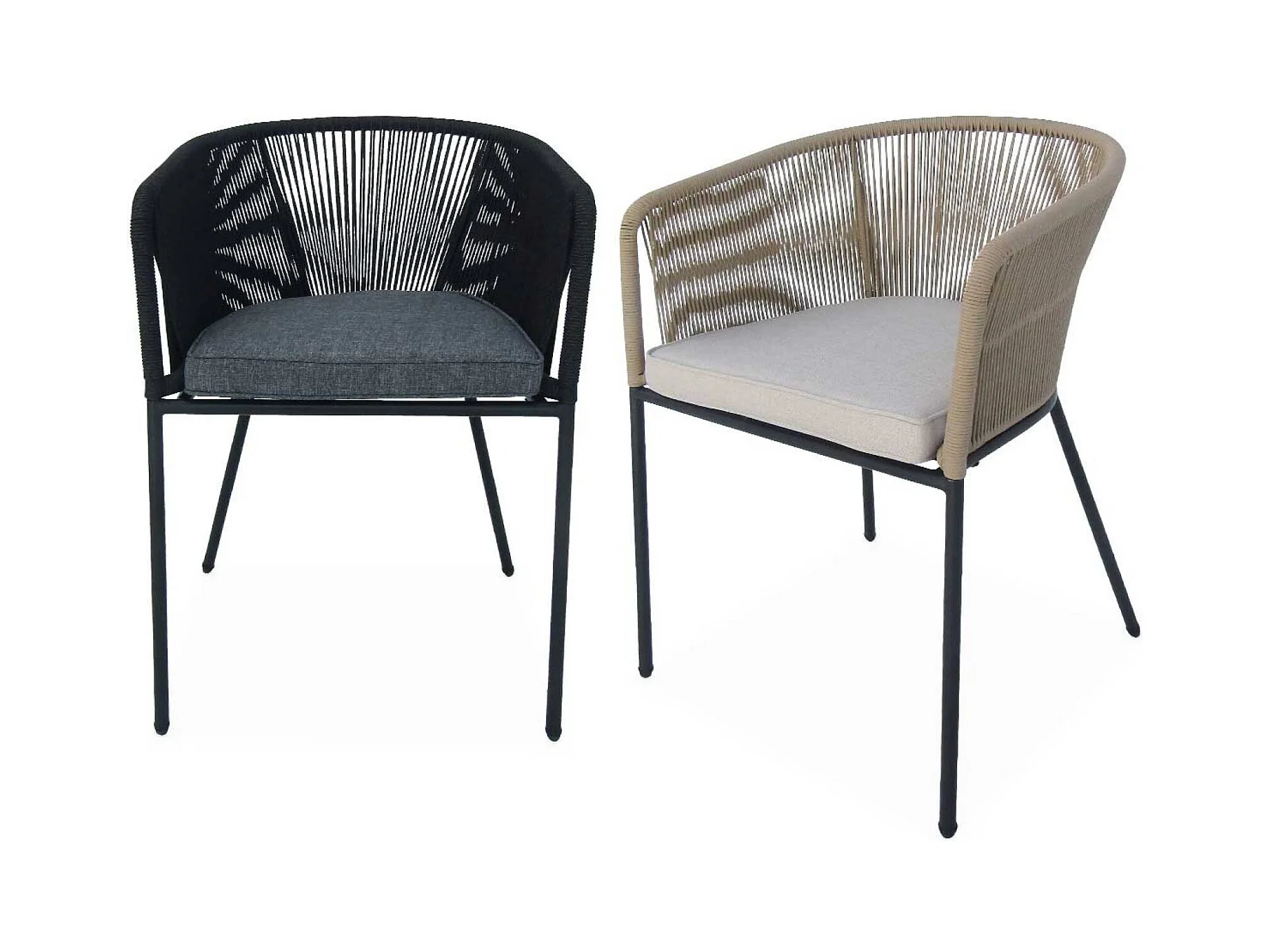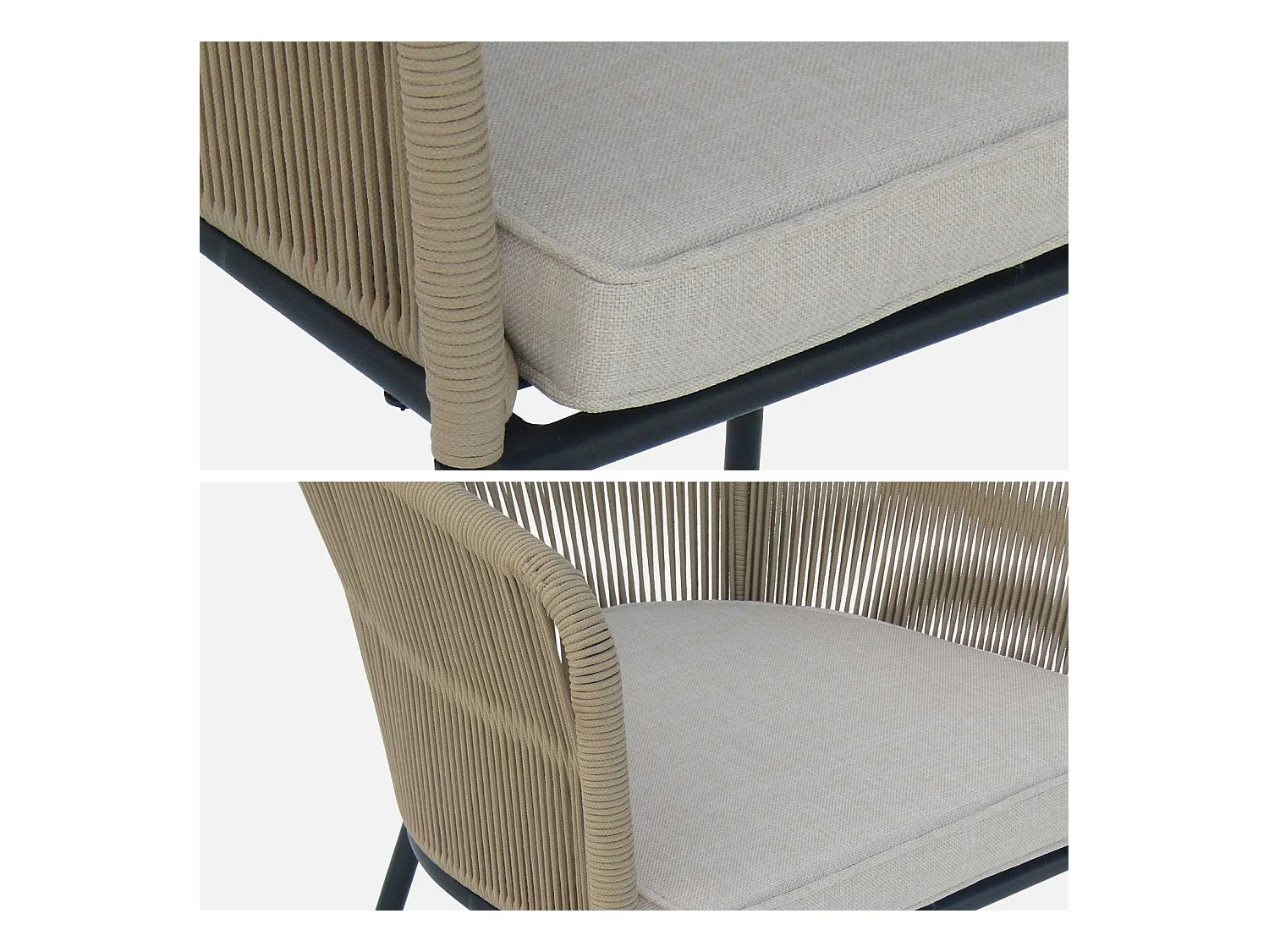 Set di 4 poltrona da giardino in corda e acciaio zincato, beige
