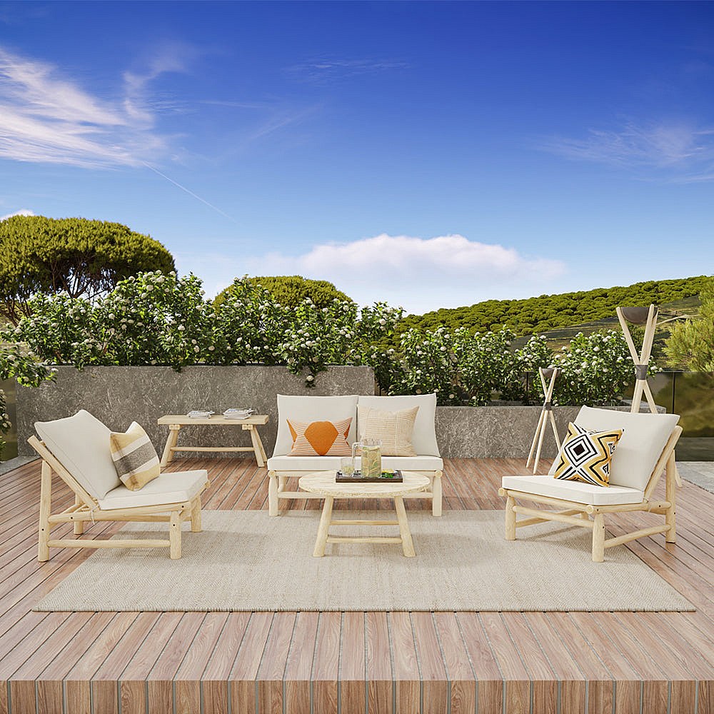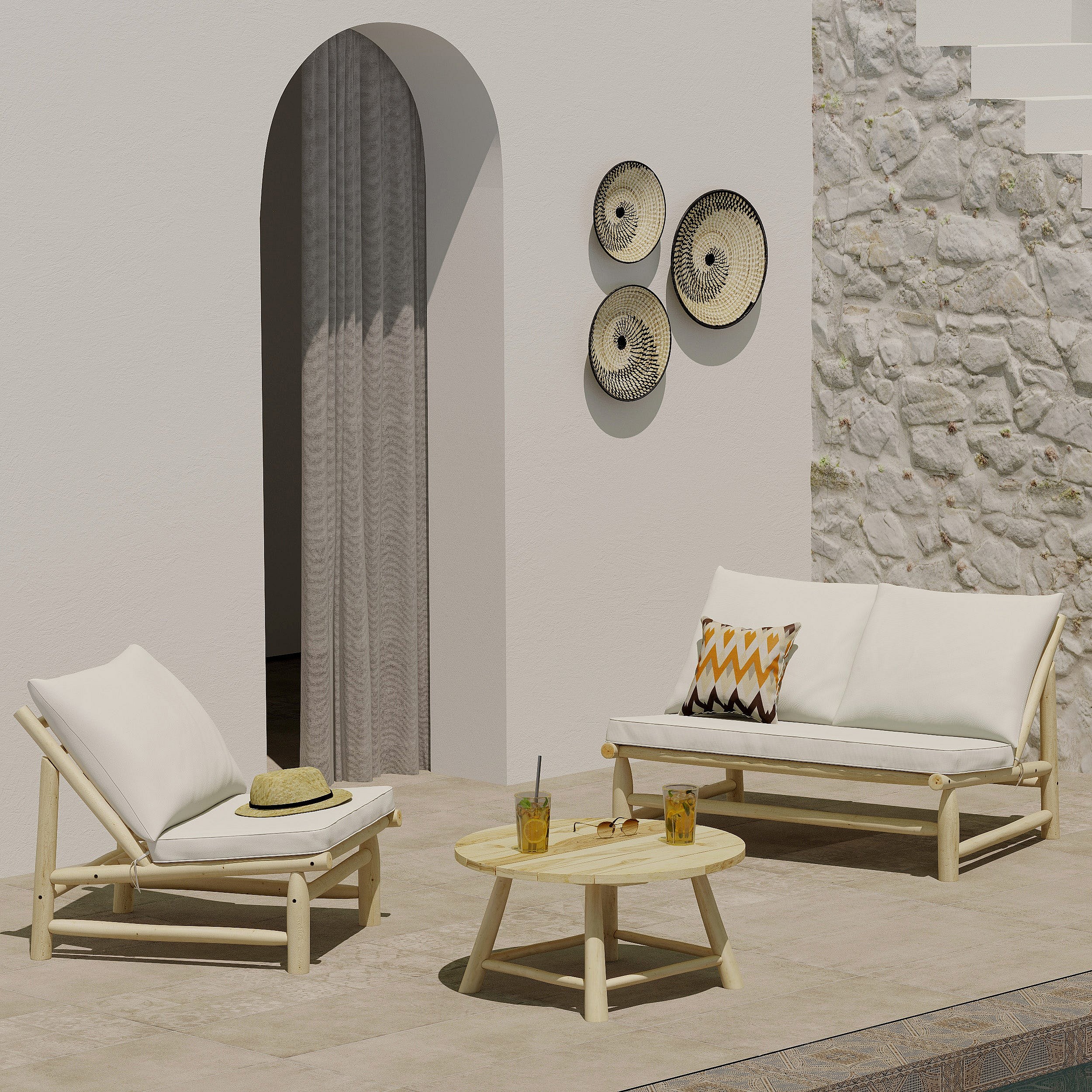 Poltrona da giardino in teak con cuscini bianchi - Makam