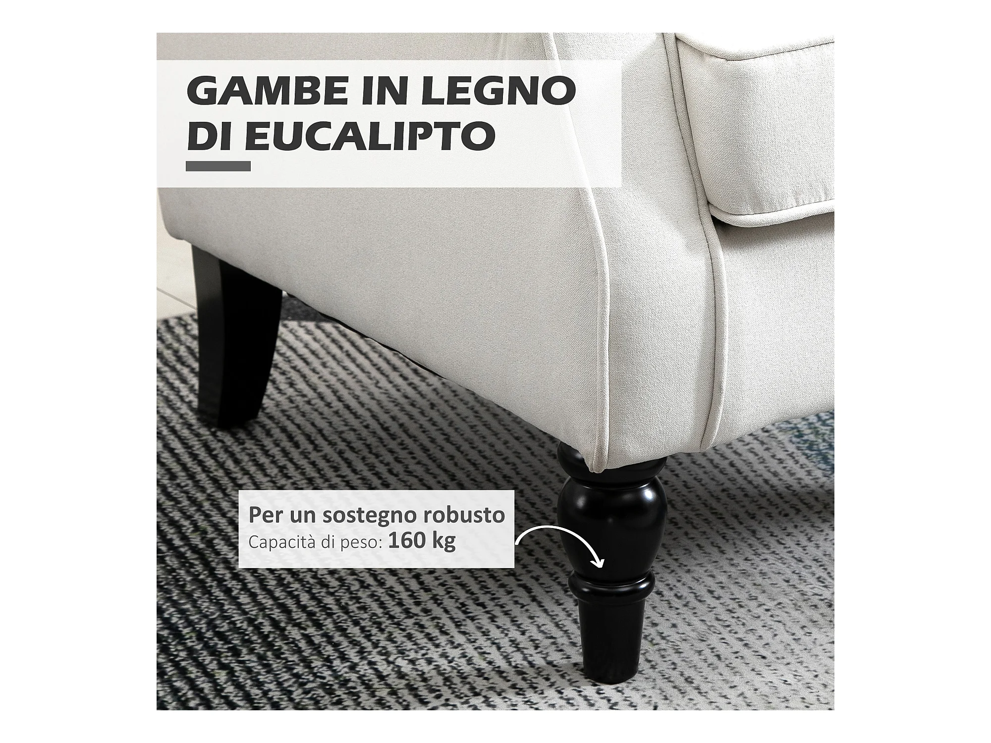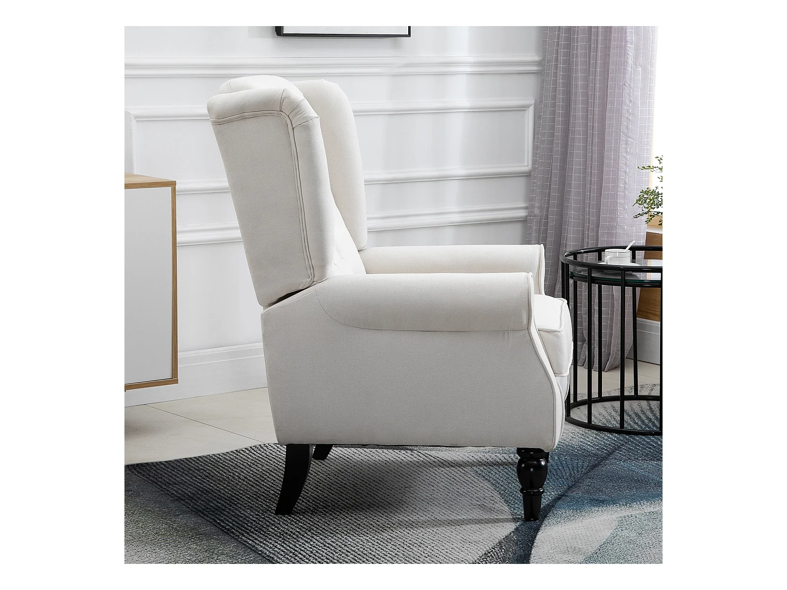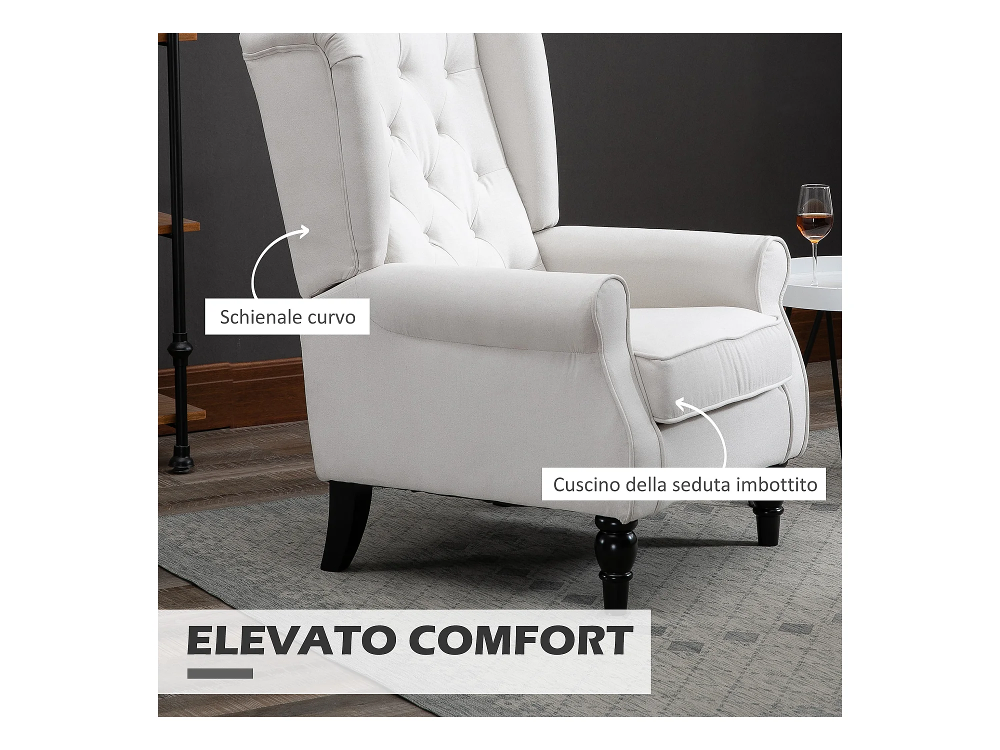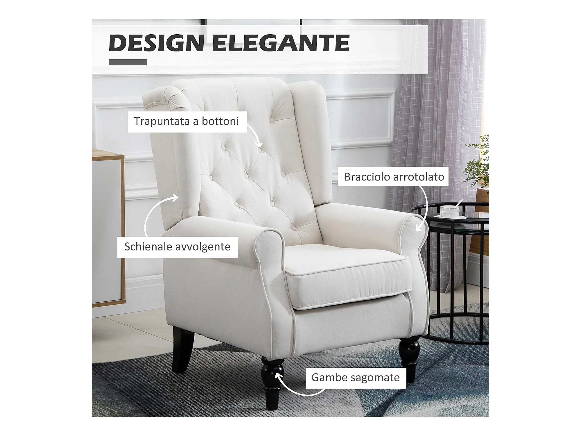 Poltrona da salotto imbottita con braccioli in tessuto bianco crema