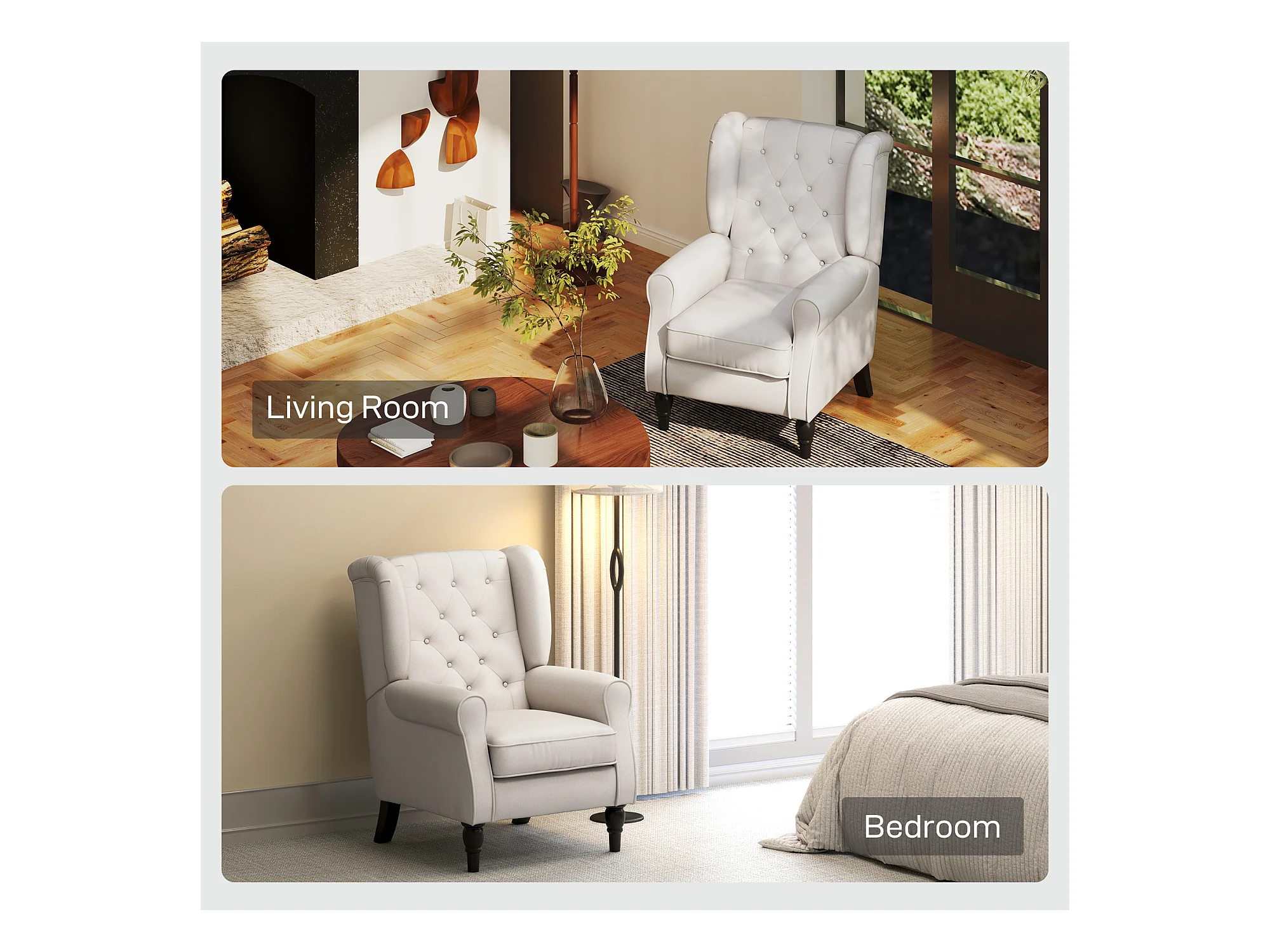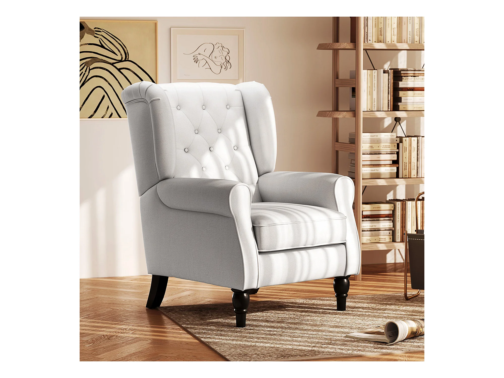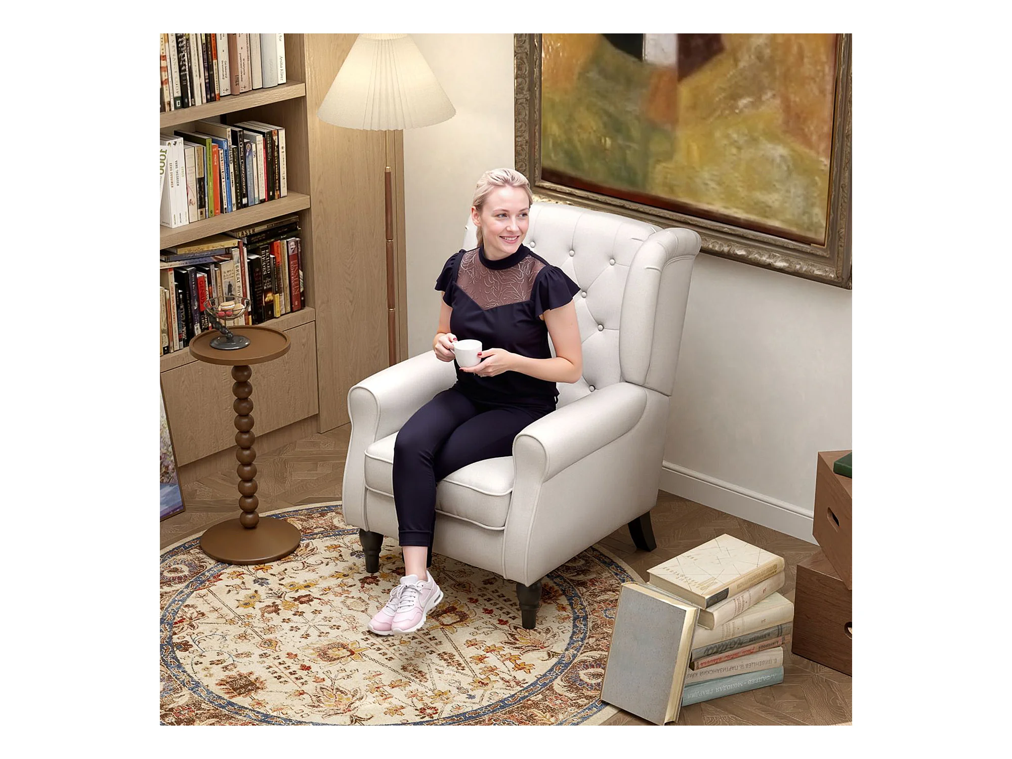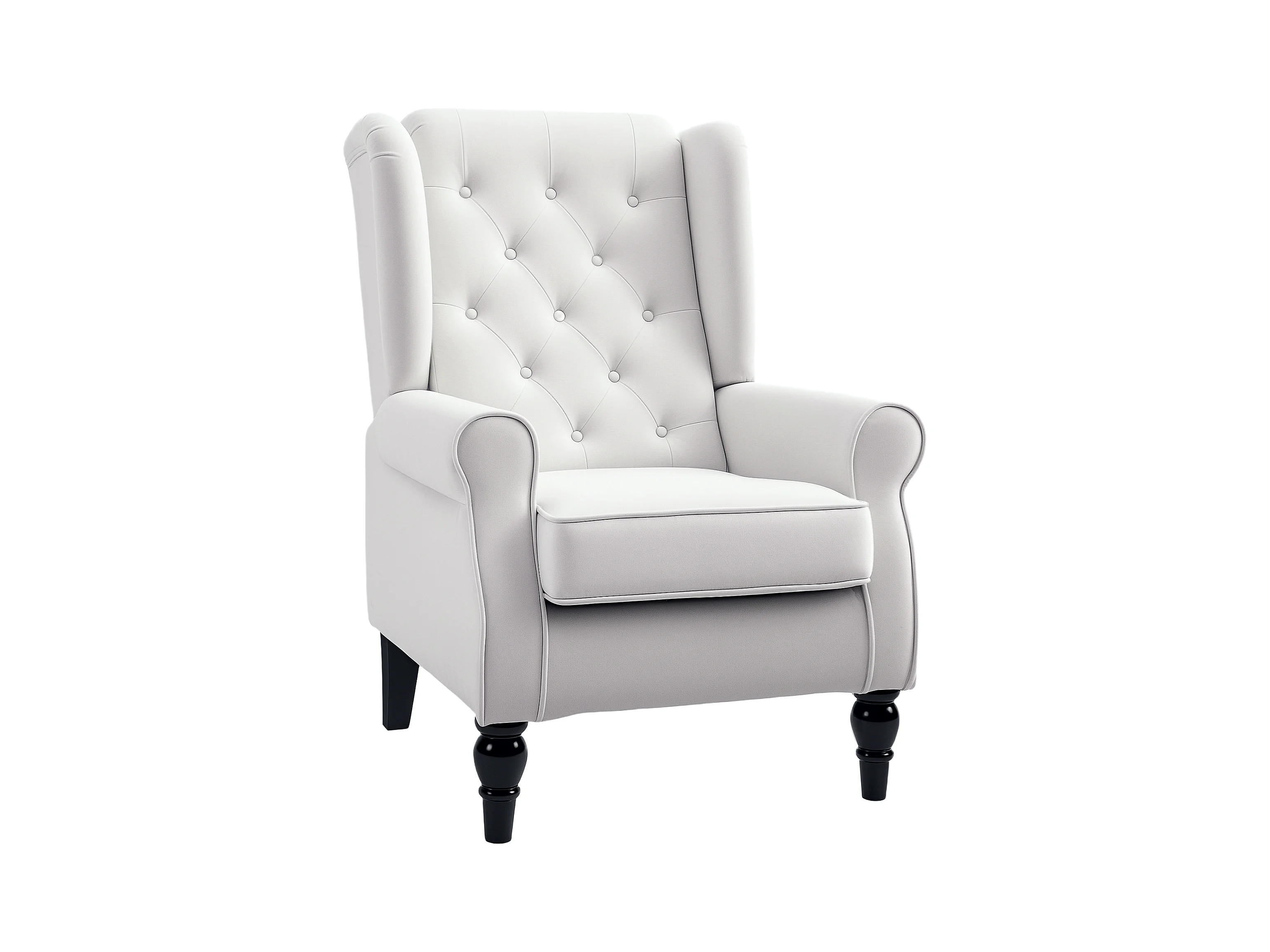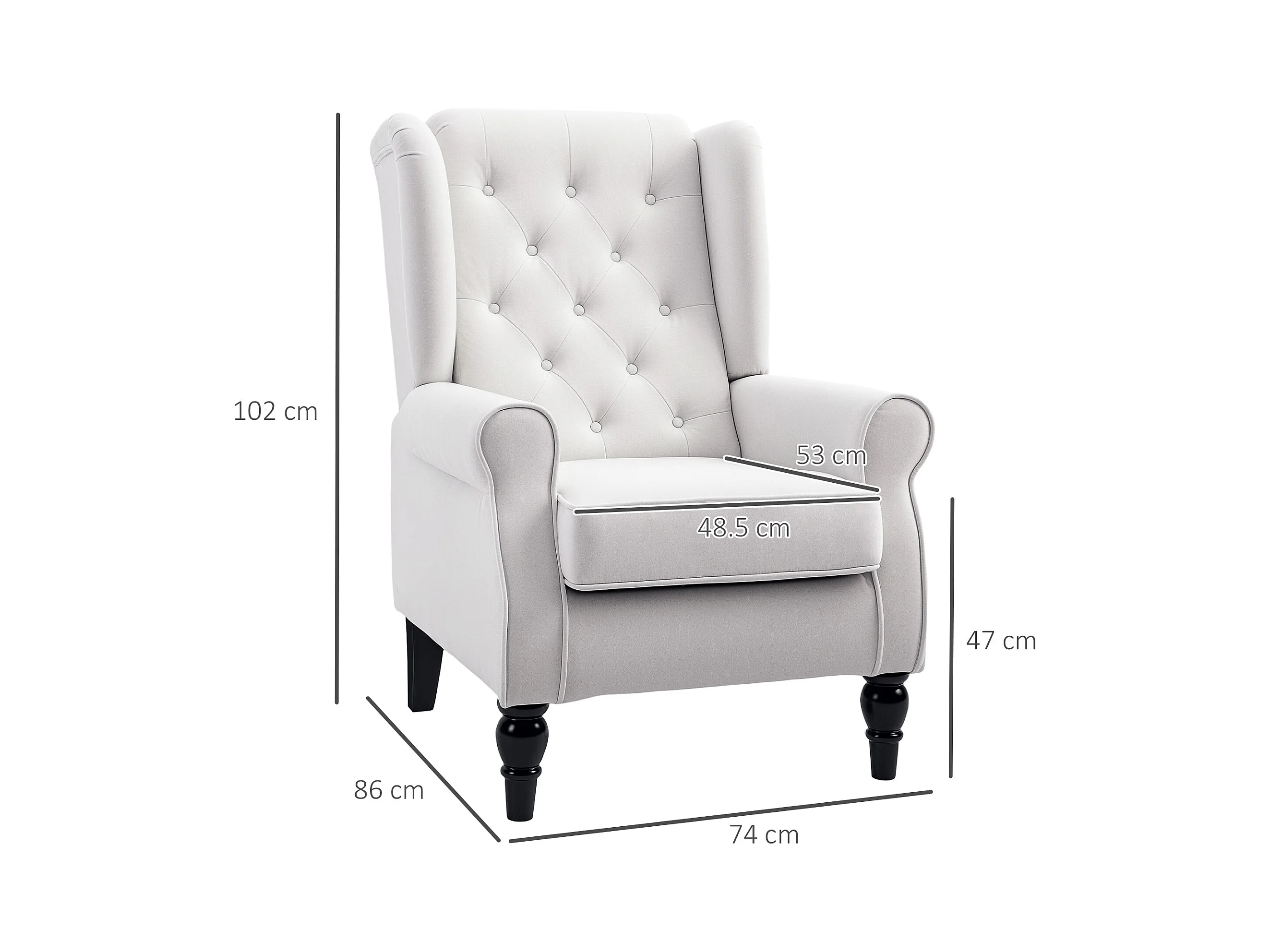 Poltrona da salotto imbottita con braccioli in tessuto bianco crema