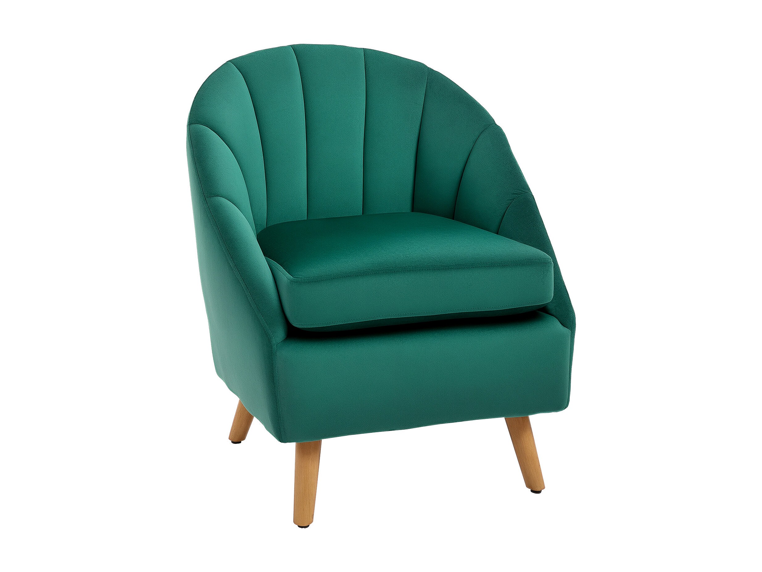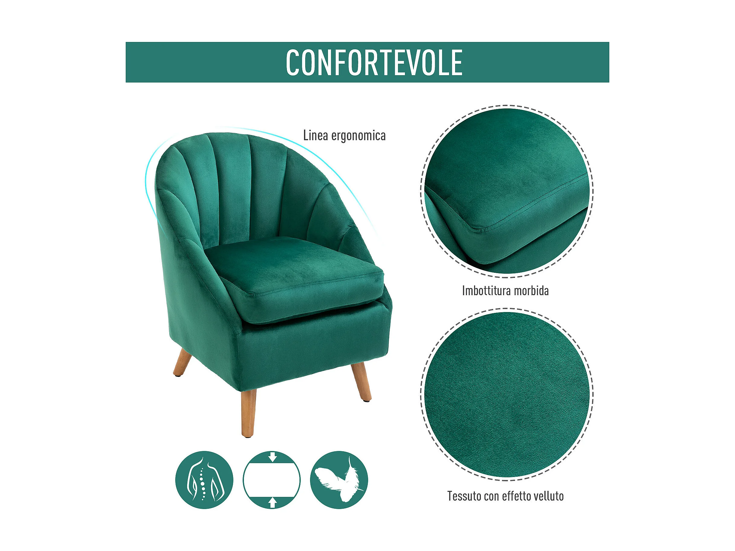 Poltrona da salotto in velluto verde con solida struttura in legno