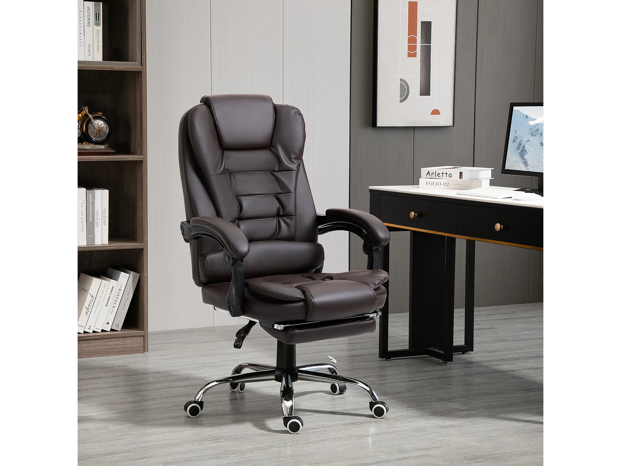 Poltrona da ufficio con schienale reclinabile e poggiapiedi caffè