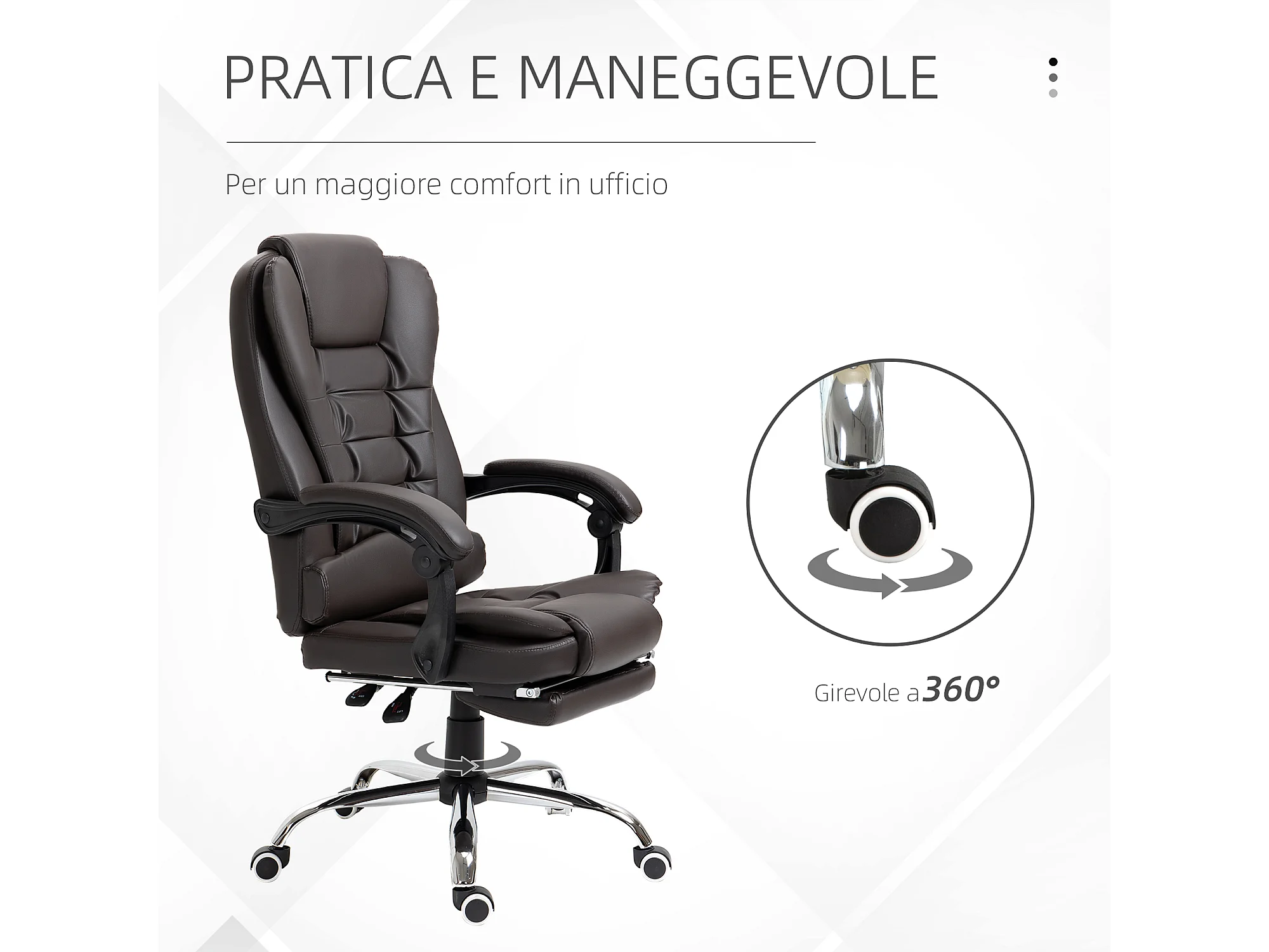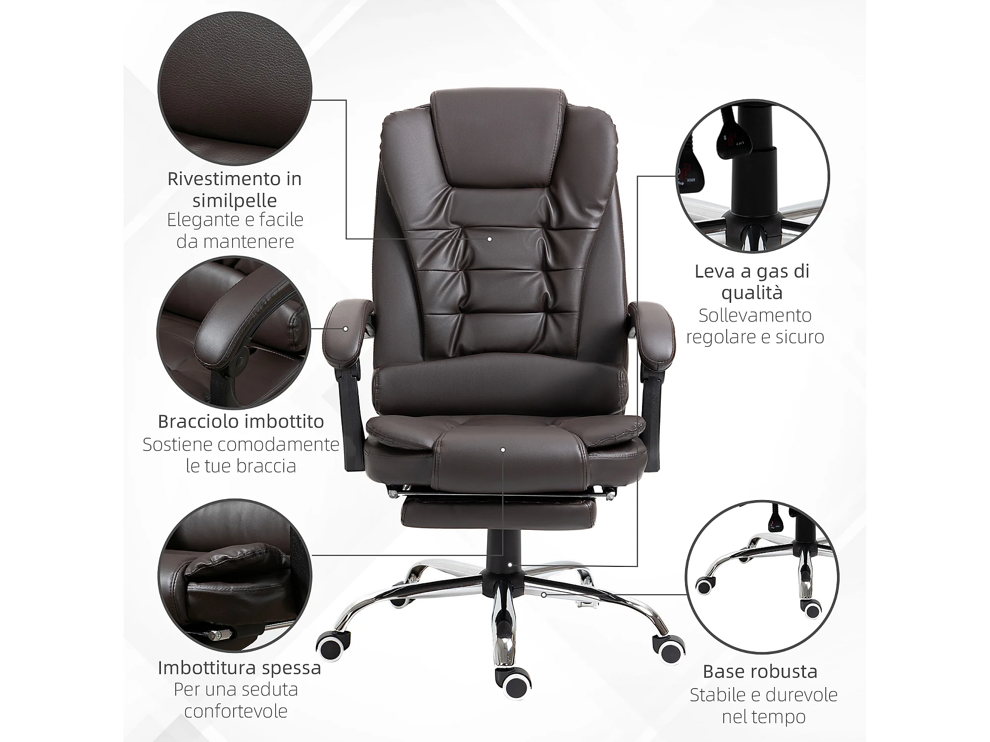 Poltrona da ufficio con schienale reclinabile in finta pelle marrone