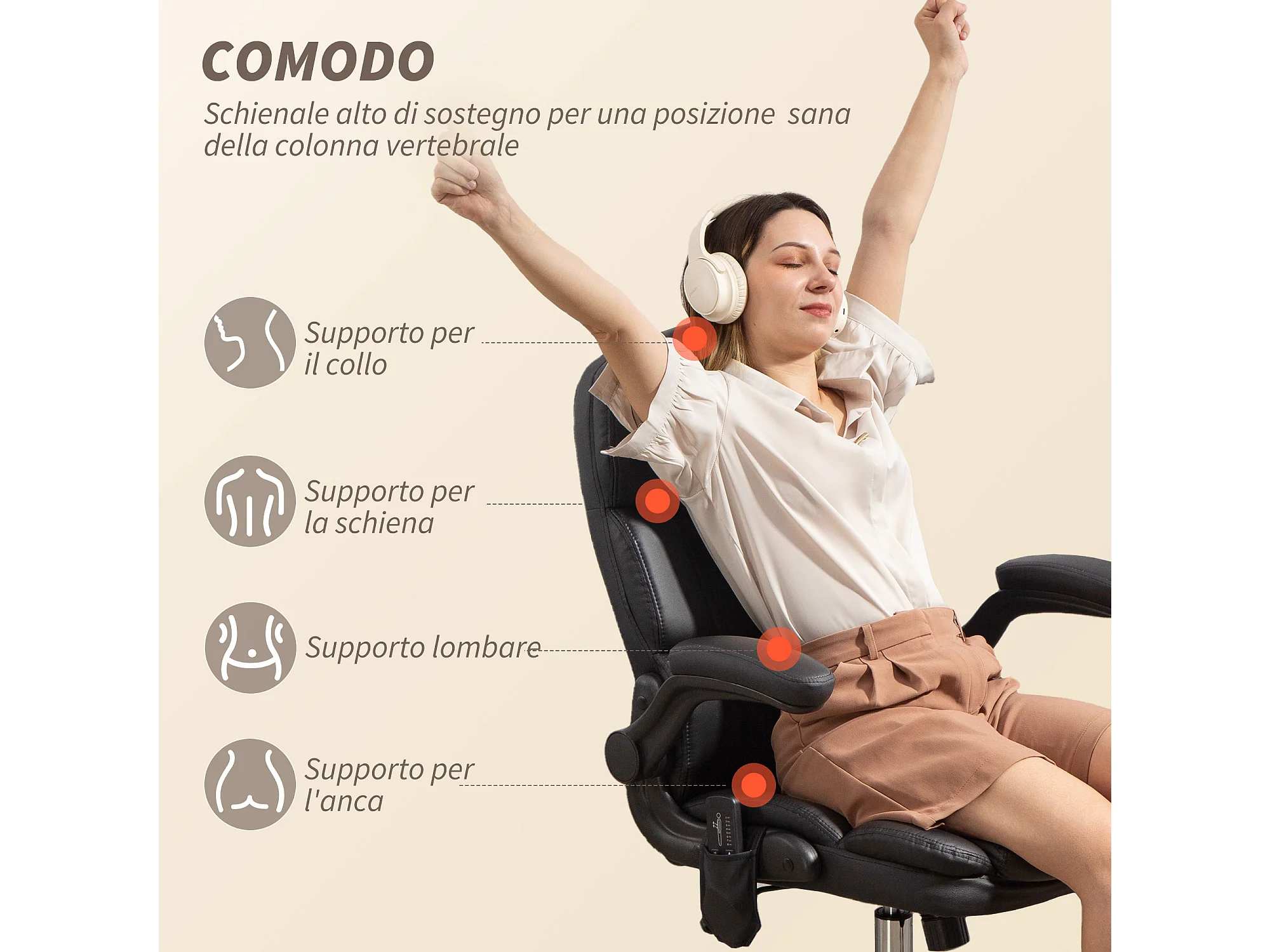 Sedia da ufficio massaggiante riscaldata e reclinabile pelle pu nero