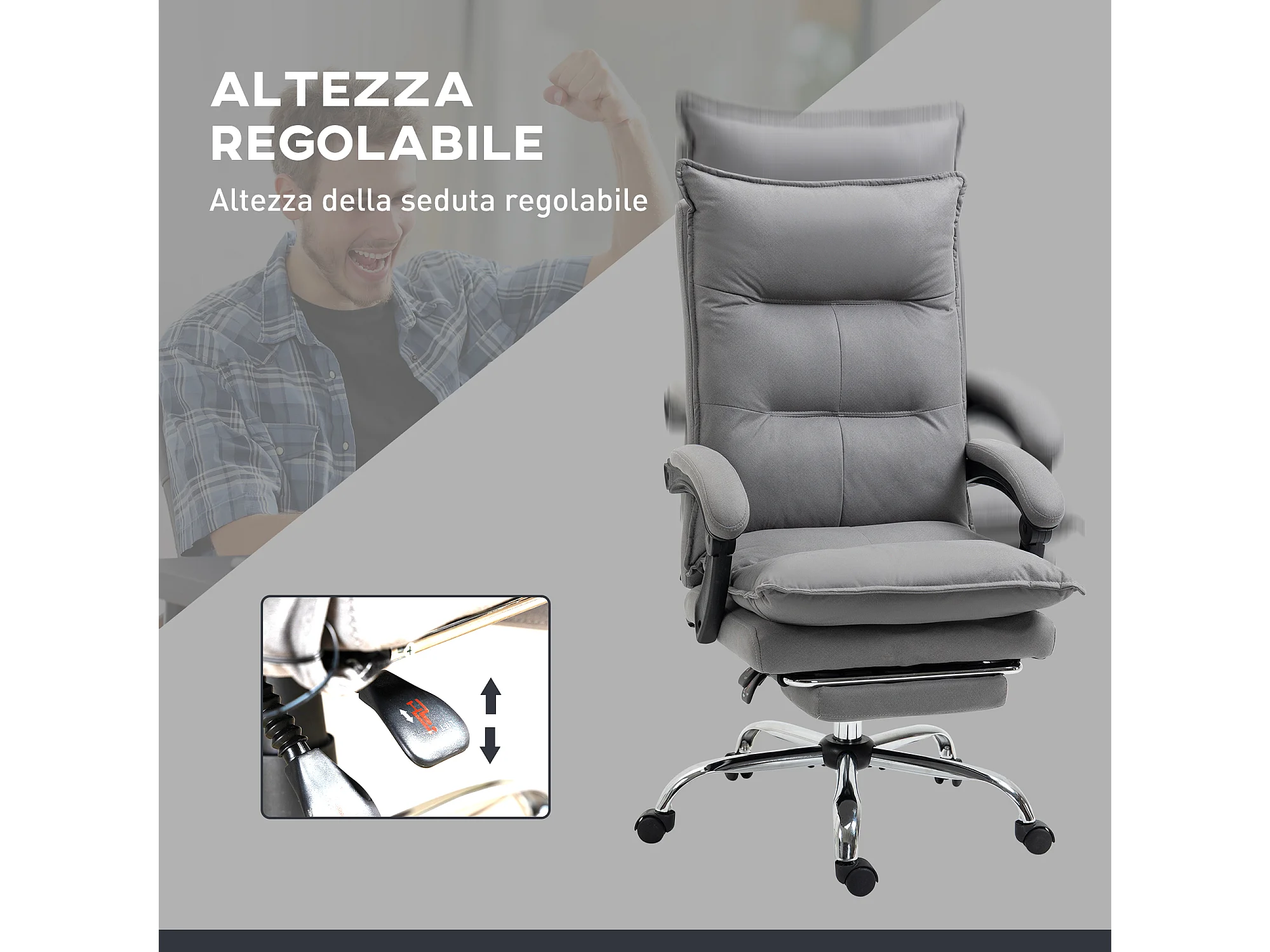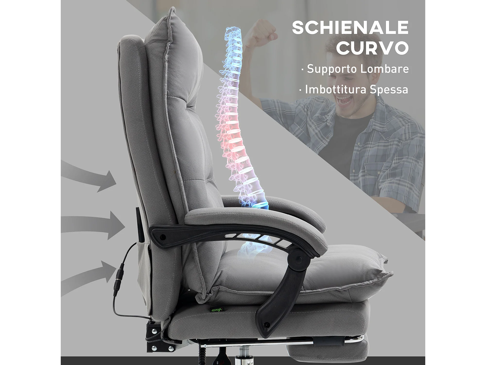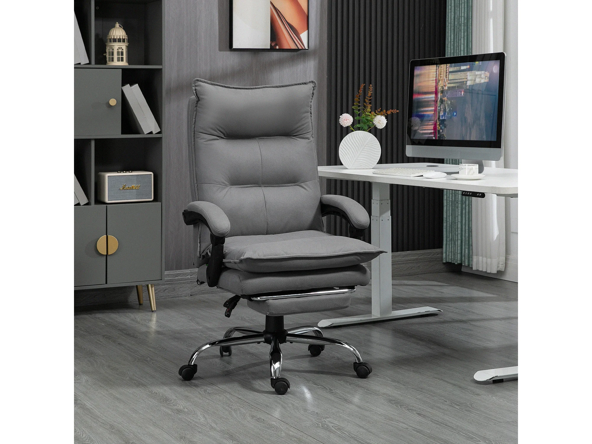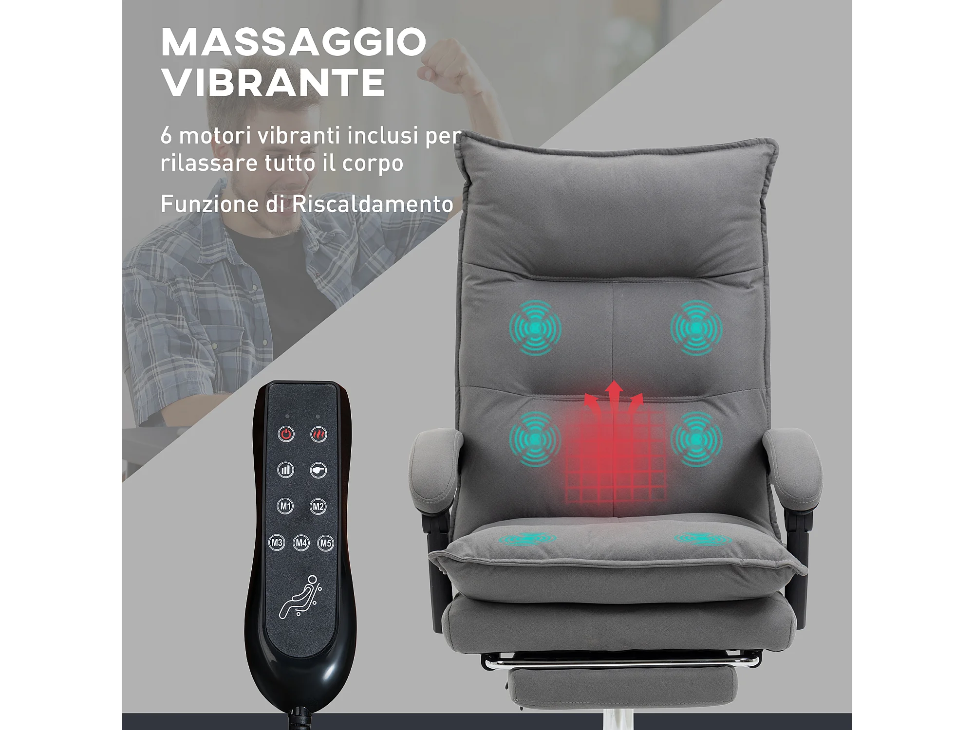 Poltrona da ufficio massaggiante riscaldata con poggiapiedi grigio