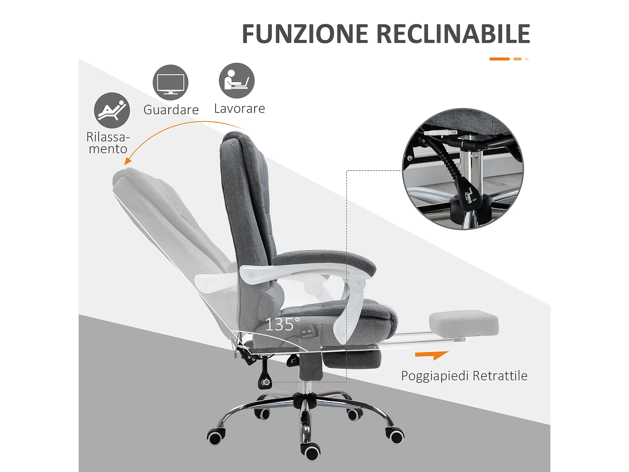 Poltrona da ufficio reclinabile con 6 punti di massaggio grigio
