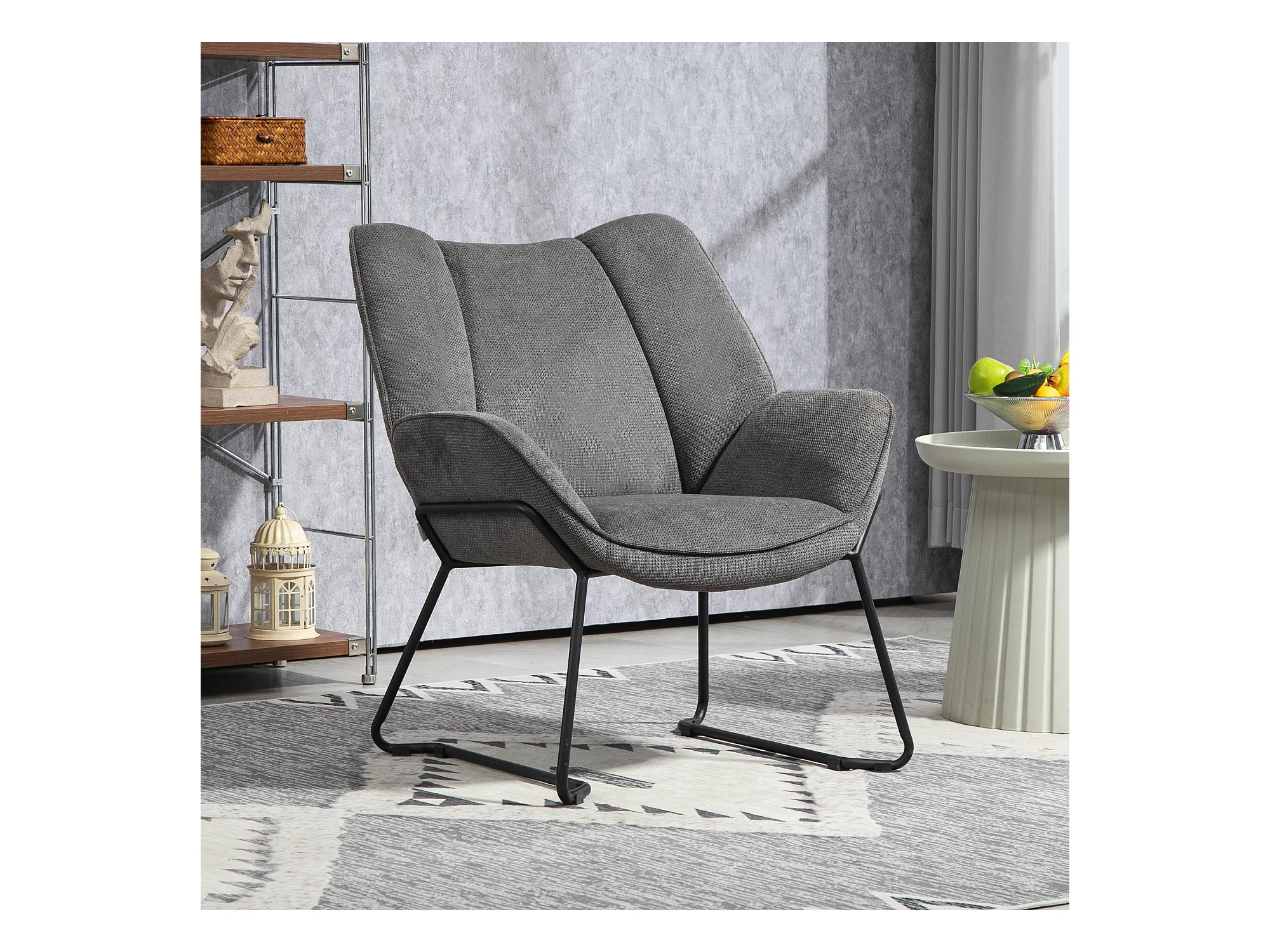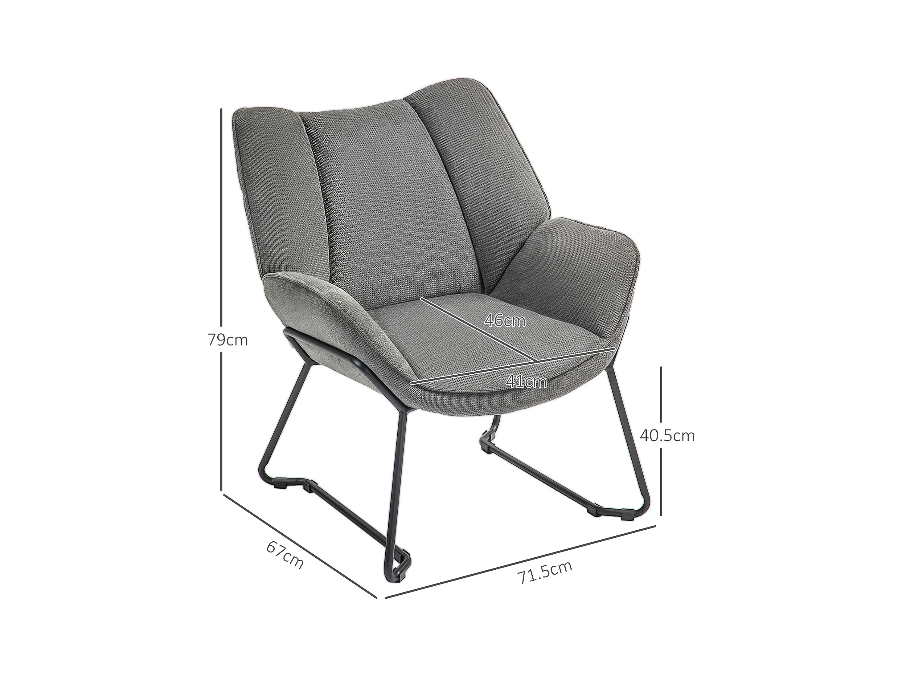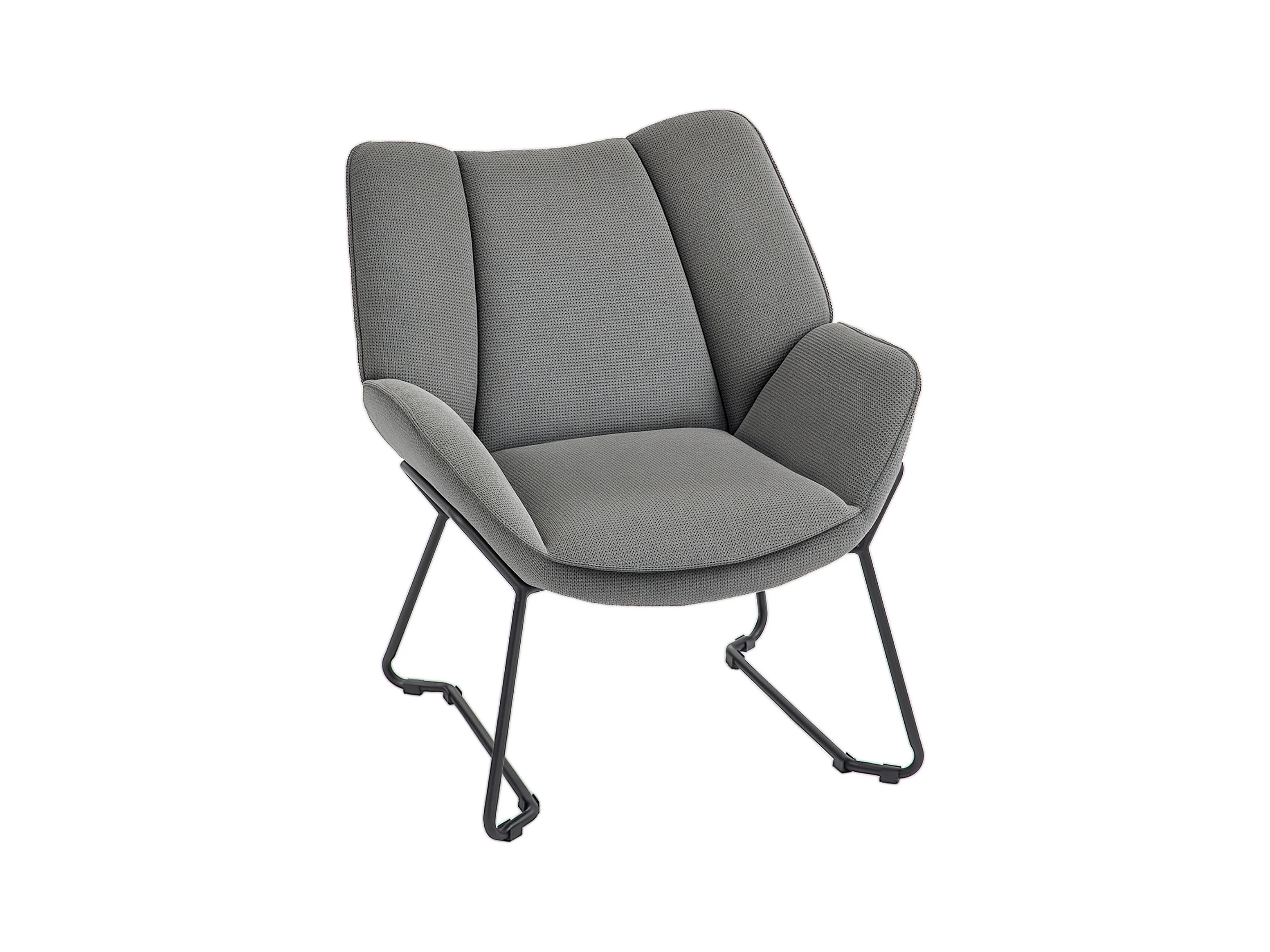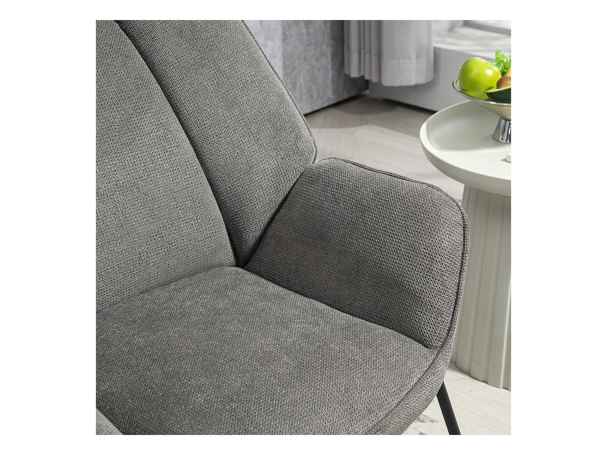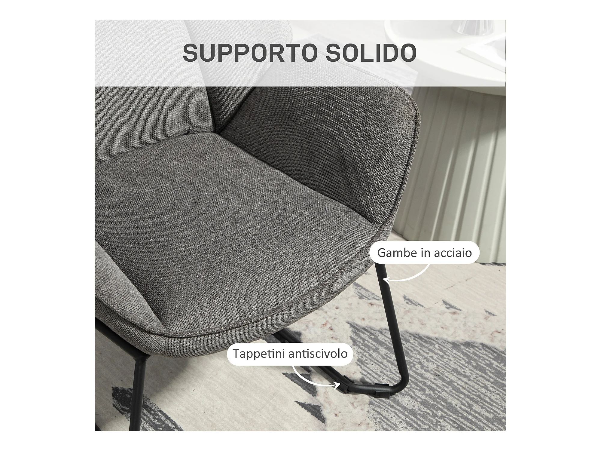 Poltrona d'arredo con braccioli inclinati in tessuto simil lino grigio