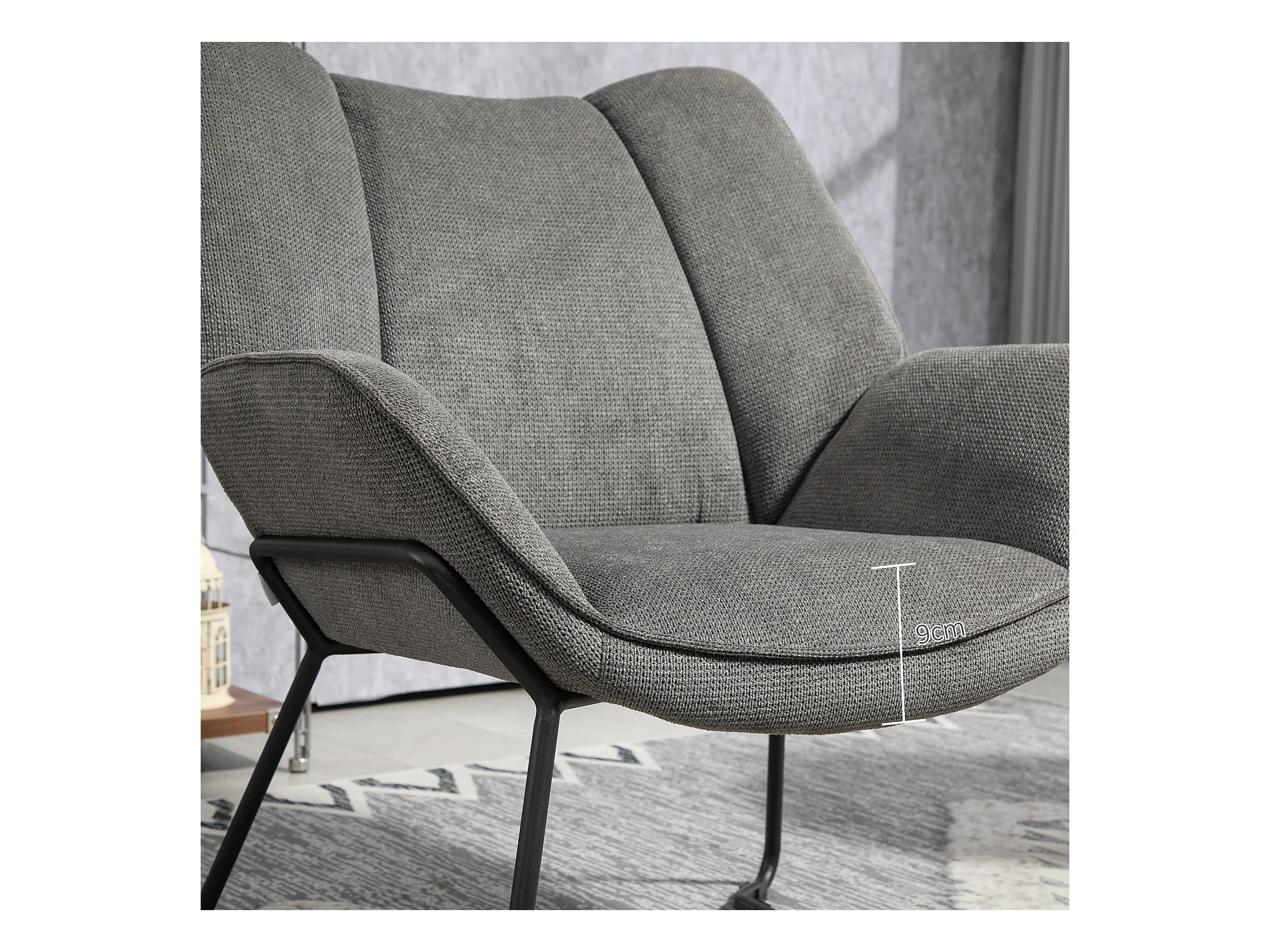 Poltrona d'arredo imbottita con braccioli e poggiapiedi grigio scuro