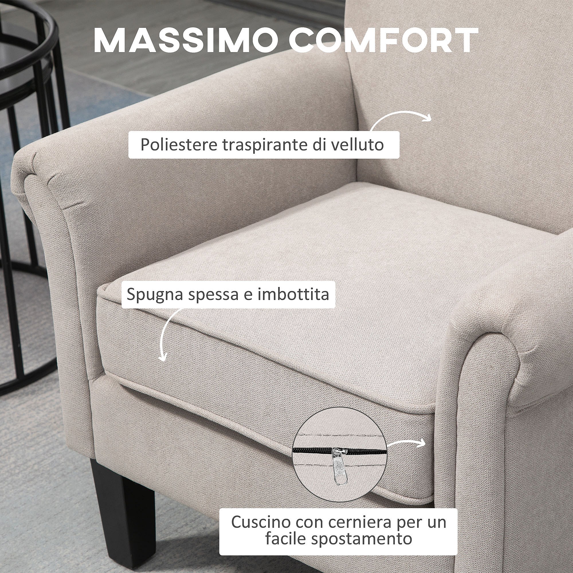 Poltrona d'arredo in stile nordico con braccioli grigio e marrone