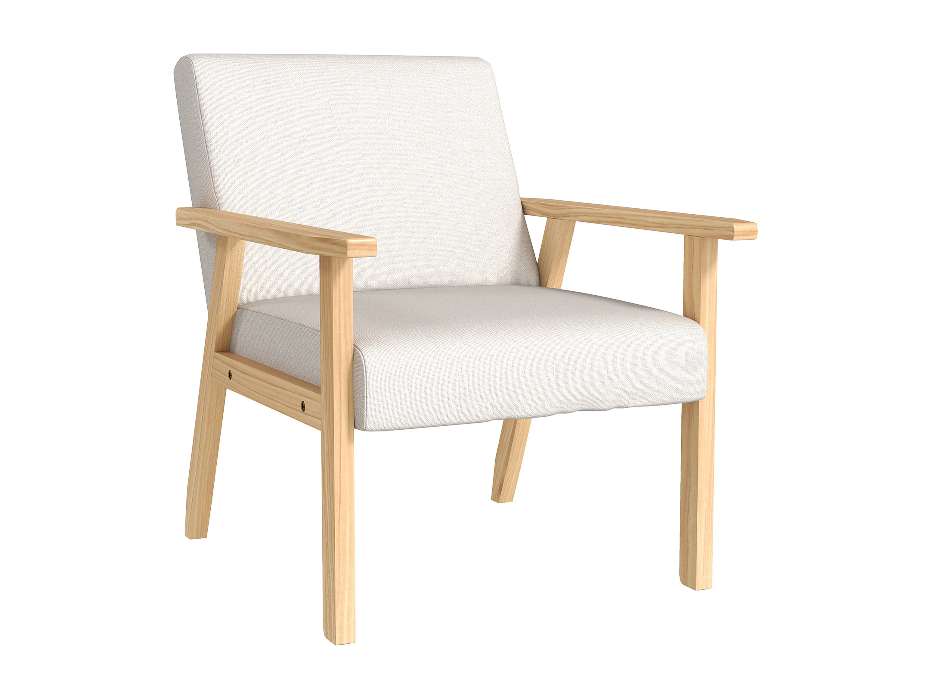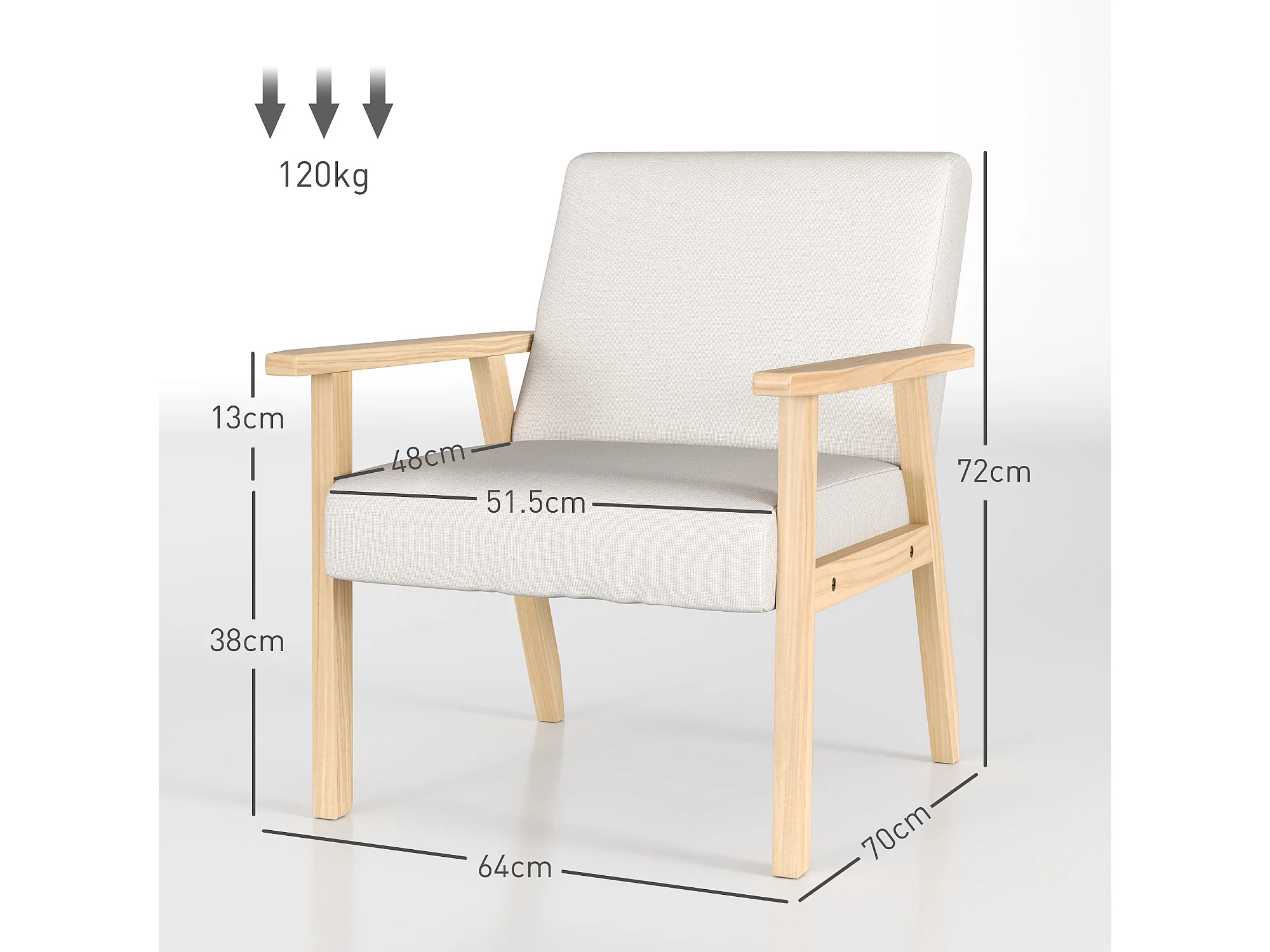 Poltrona d'arredo stile scandinavo in legno di pino con cuscini grigio