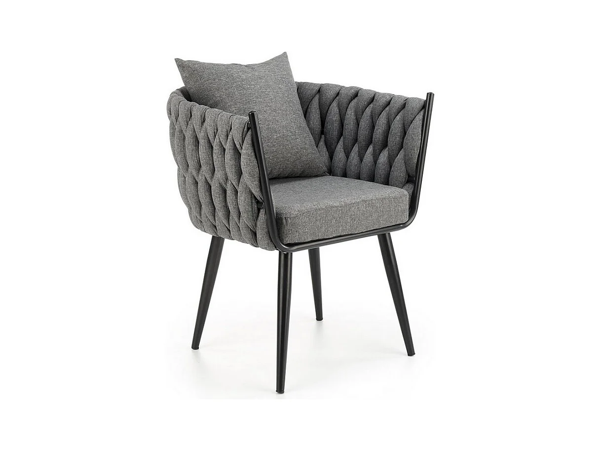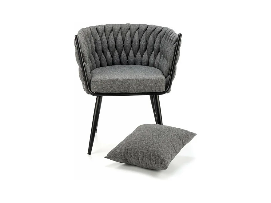 Poltrona di design rivestita in tessuto grigio con gambe in metallo nero LAUSANNE