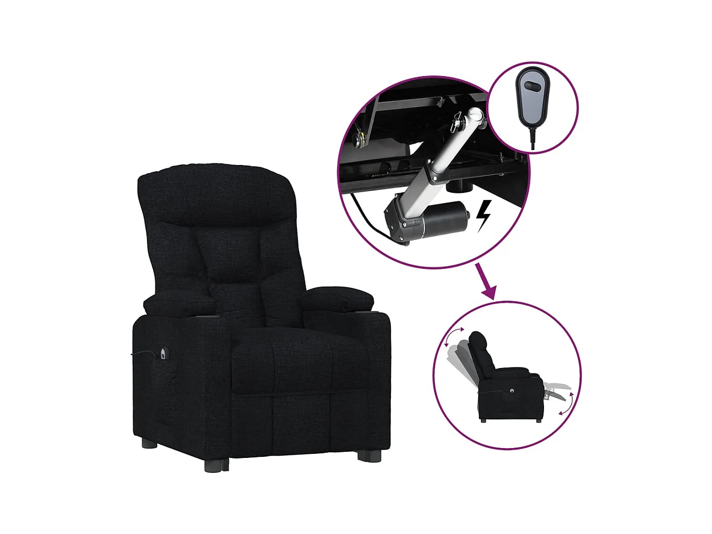 Poltrona Elettrica Reclinabile Nera in Tessuto