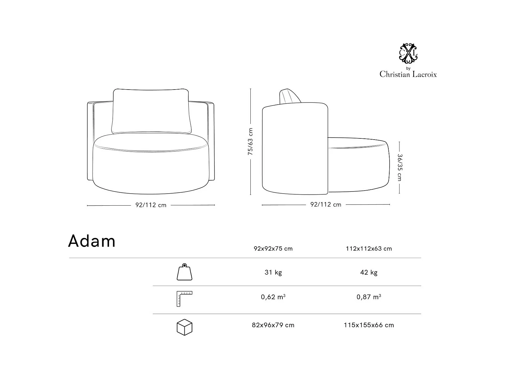 CXL by Christian Lacroix - Poltrona xl girevole "Adam" in bouclé bianco - 112x112x63cm