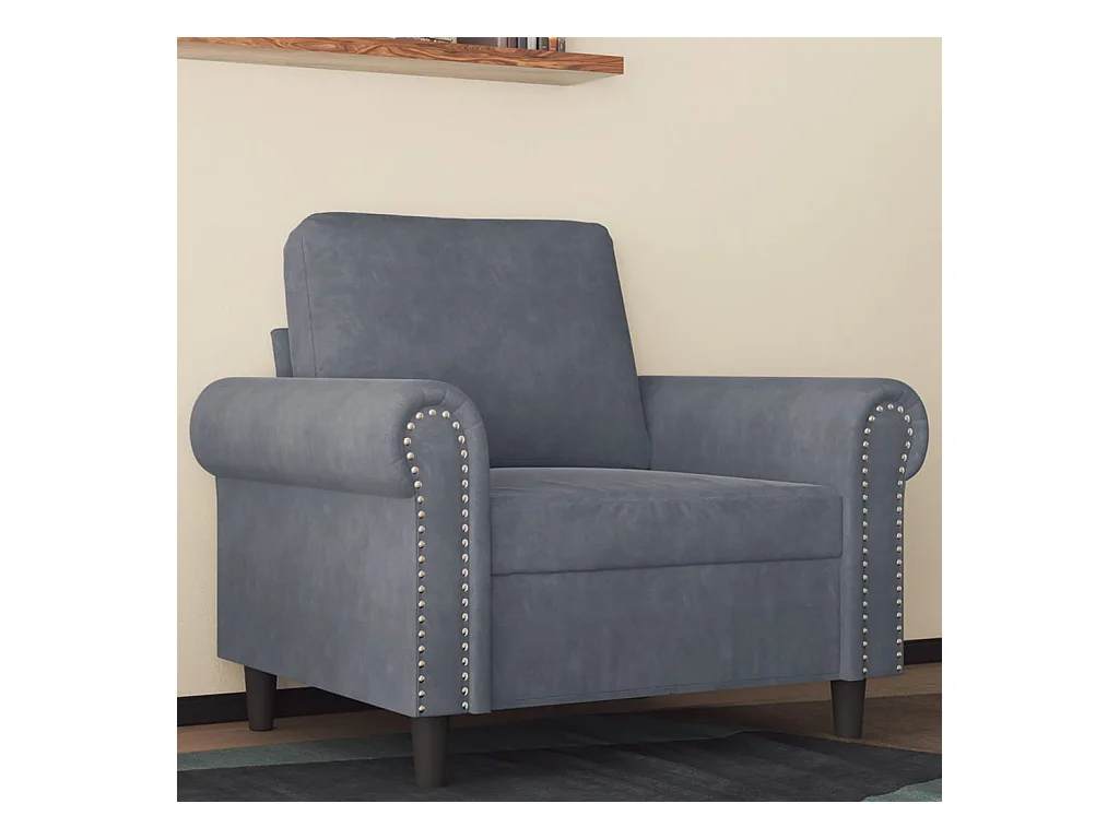Poltrona lounge in velluto 52x42x80 cm con gambe in metallo dorato - Grigio