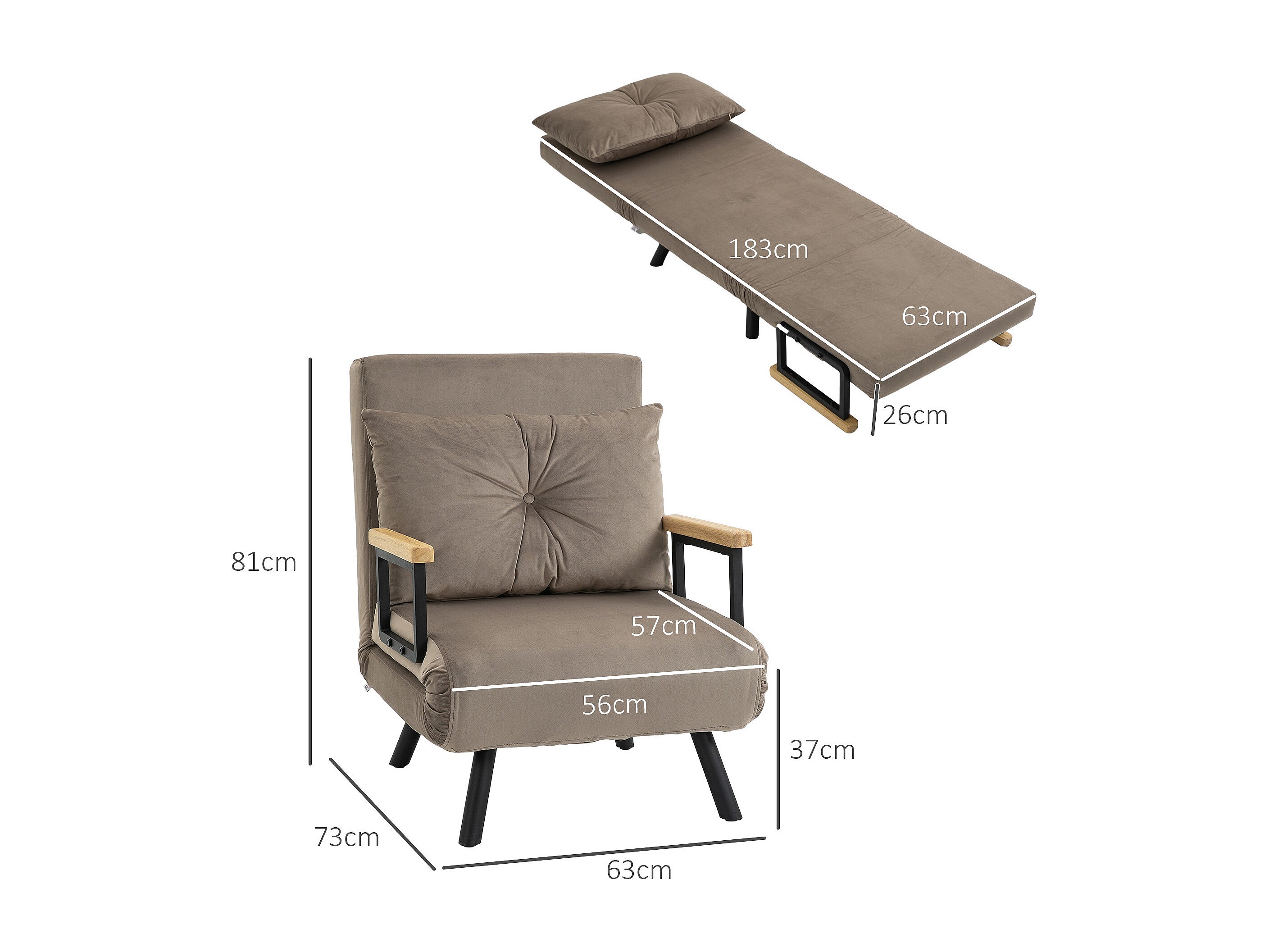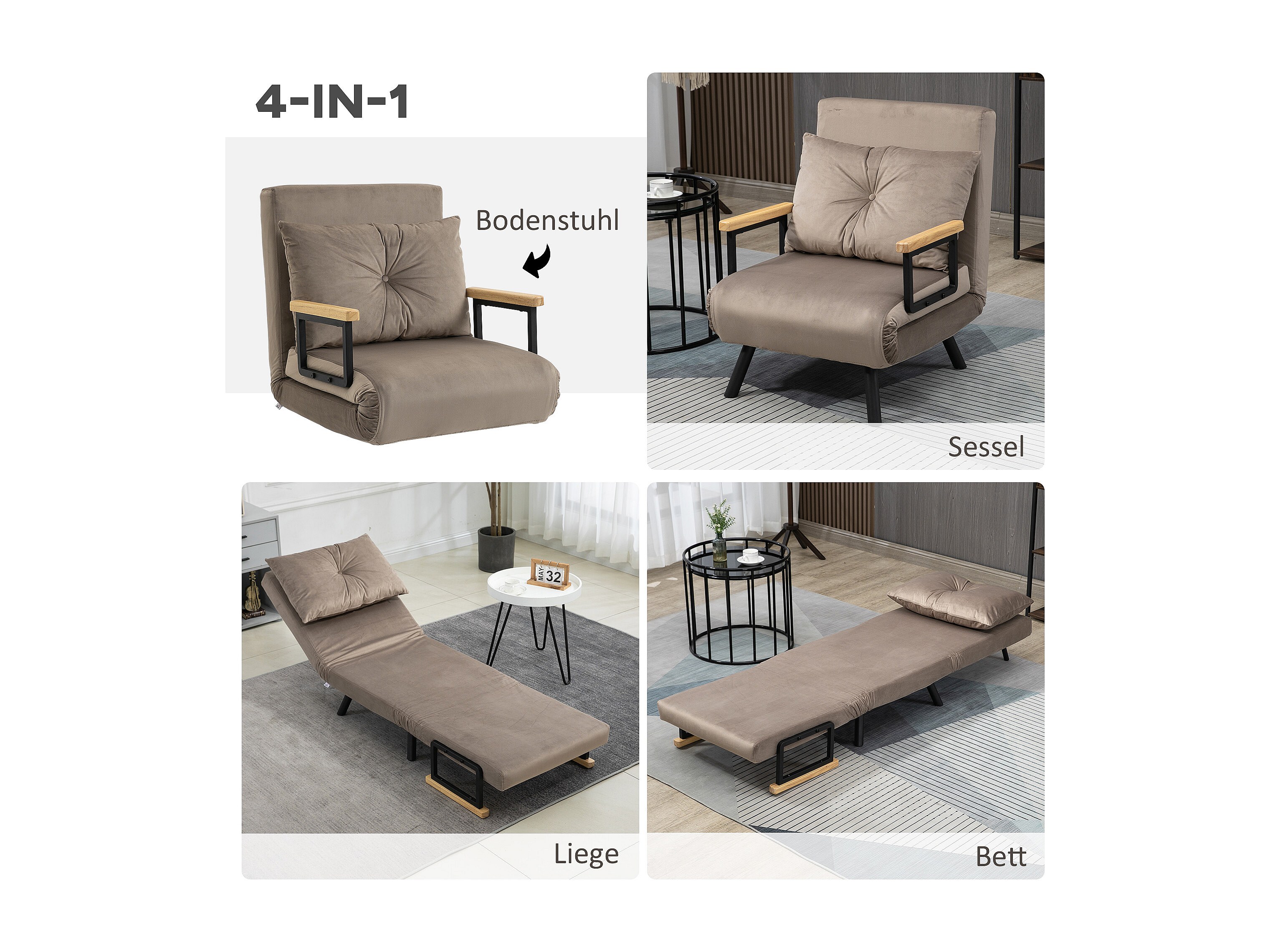 Poltrona trasformabile 2 in 1 con schienale regolabile, tessuto in velluto grigio, struttura in metallo (102x73x60 cm)